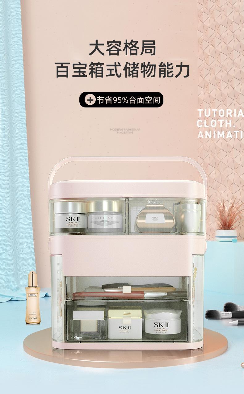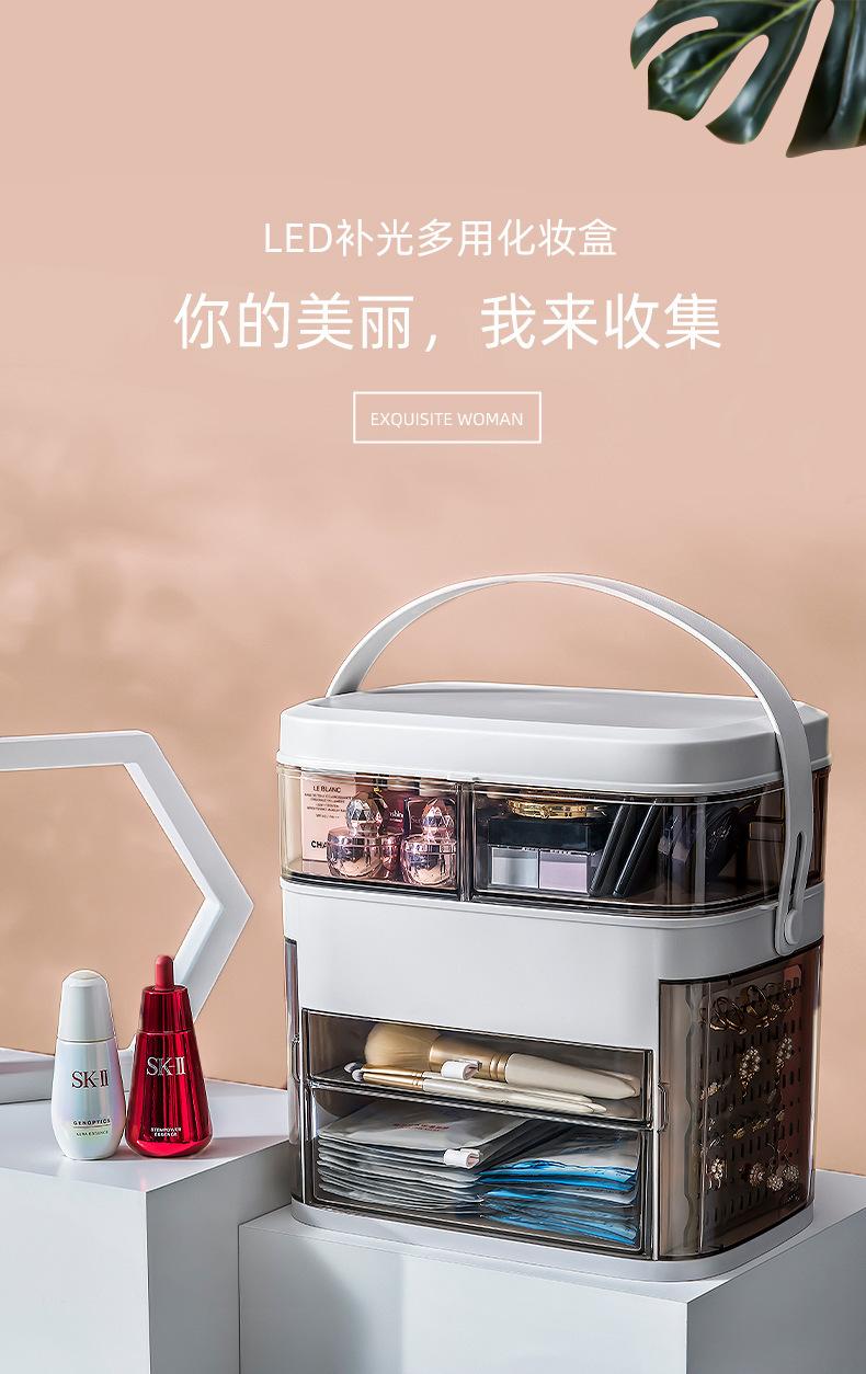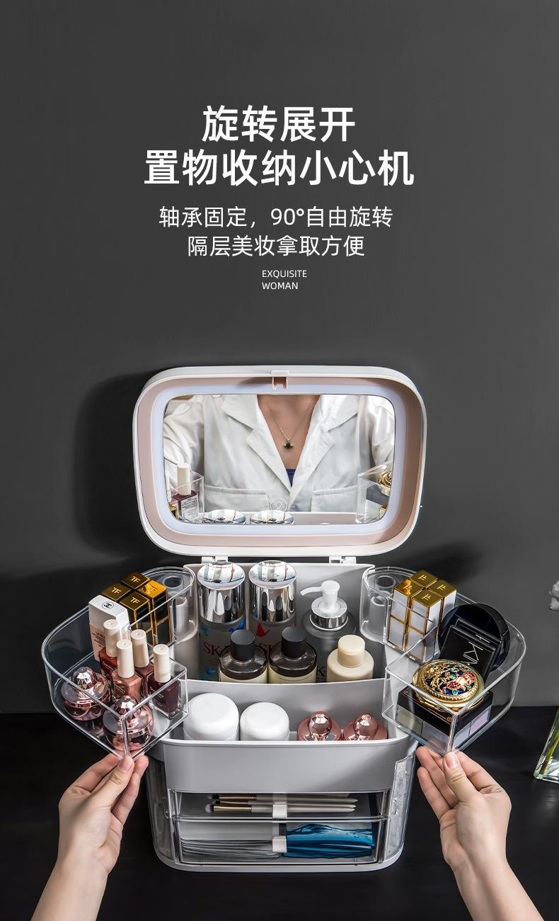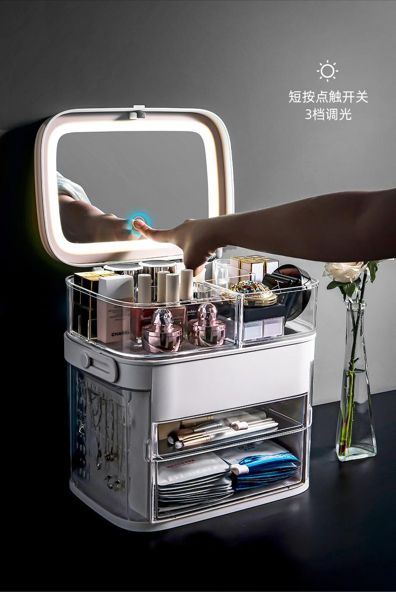 Caja de Almacenamiento de Cosméticos de Celebridad de Internet a Prueba de Polvo Cuidado de la Piel Tocador Escritorio LED con Espejo Joyería Estante de Almacenamiento Integrado