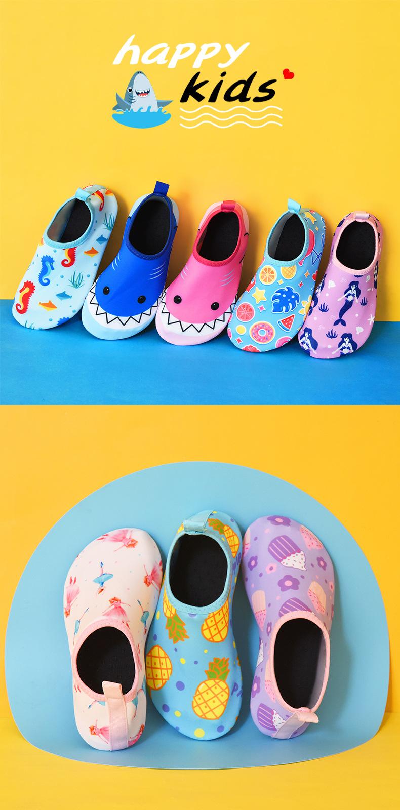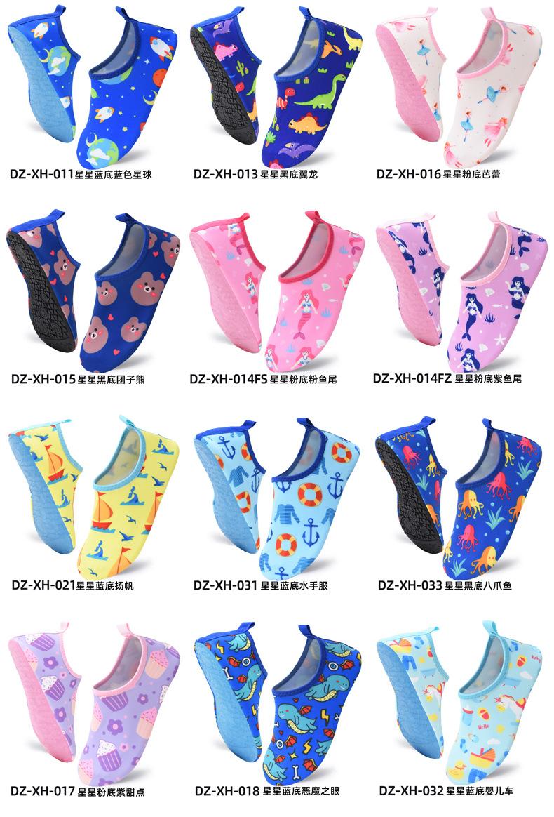 Venta al por mayor de zapatos de playa para niños, nuevos zapatos de natación anticortes con suela suave para hombres y mujeres, calcetines transpirables para el suelo del parque acuático.