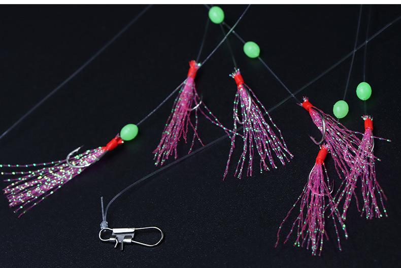Compra Anzuelo de hilo de seda de colores para pesca Luya, anzuelo de hilo de seda de colores para shihang, 1 cuerda, 6 anzuelos de hilo de piel de pescado con púas, equipo de pesca con cuerda al por mayor en Joom.pro