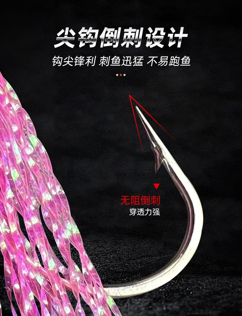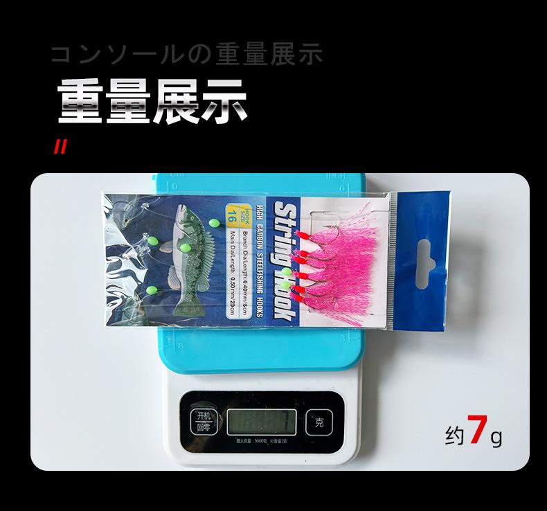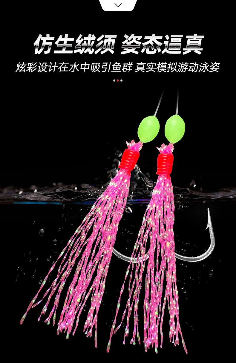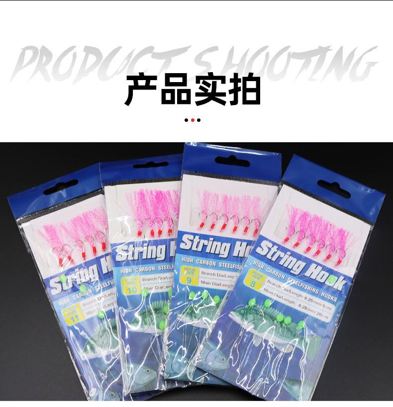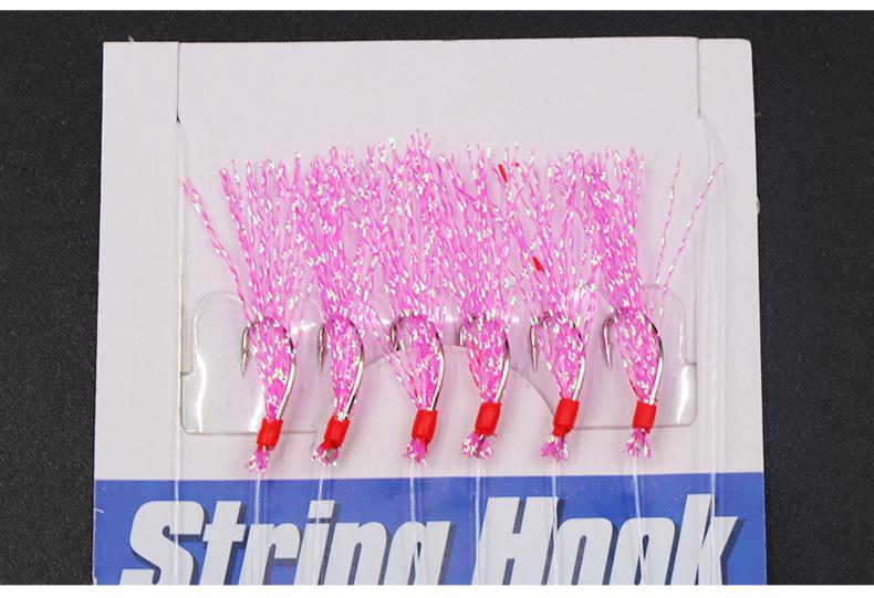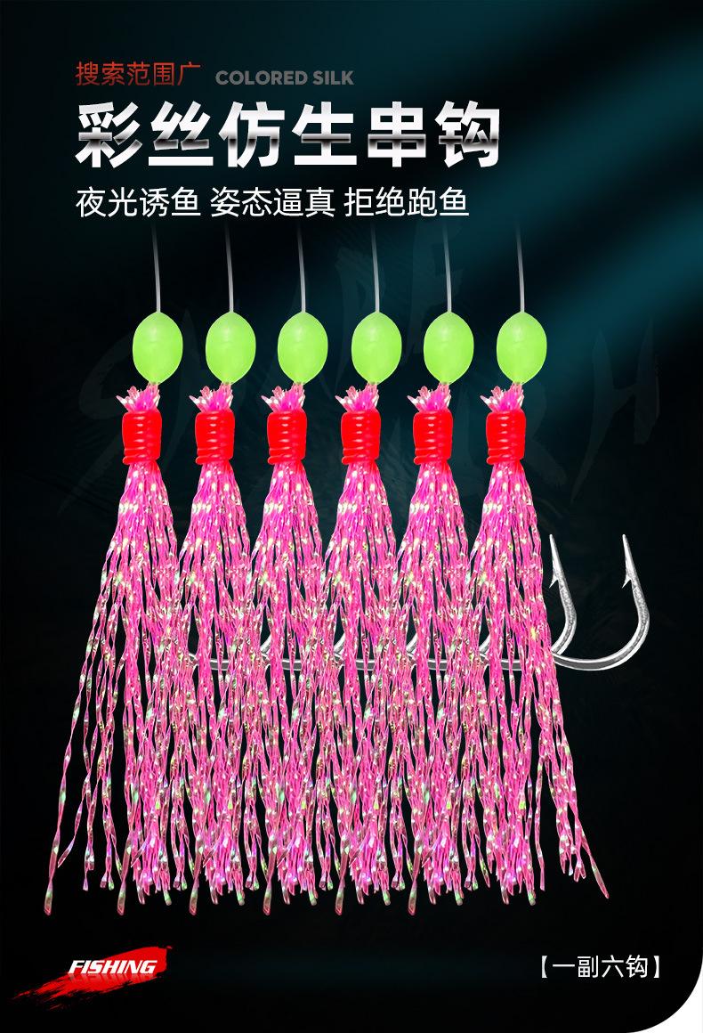 Anzuelo de hilo de seda de colores para pesca Luya, anzuelo de hilo de seda de colores para shihang, 1 cuerda, 6 anzuelos de hilo de piel de pescado con púas, equipo de pesca con cuerda