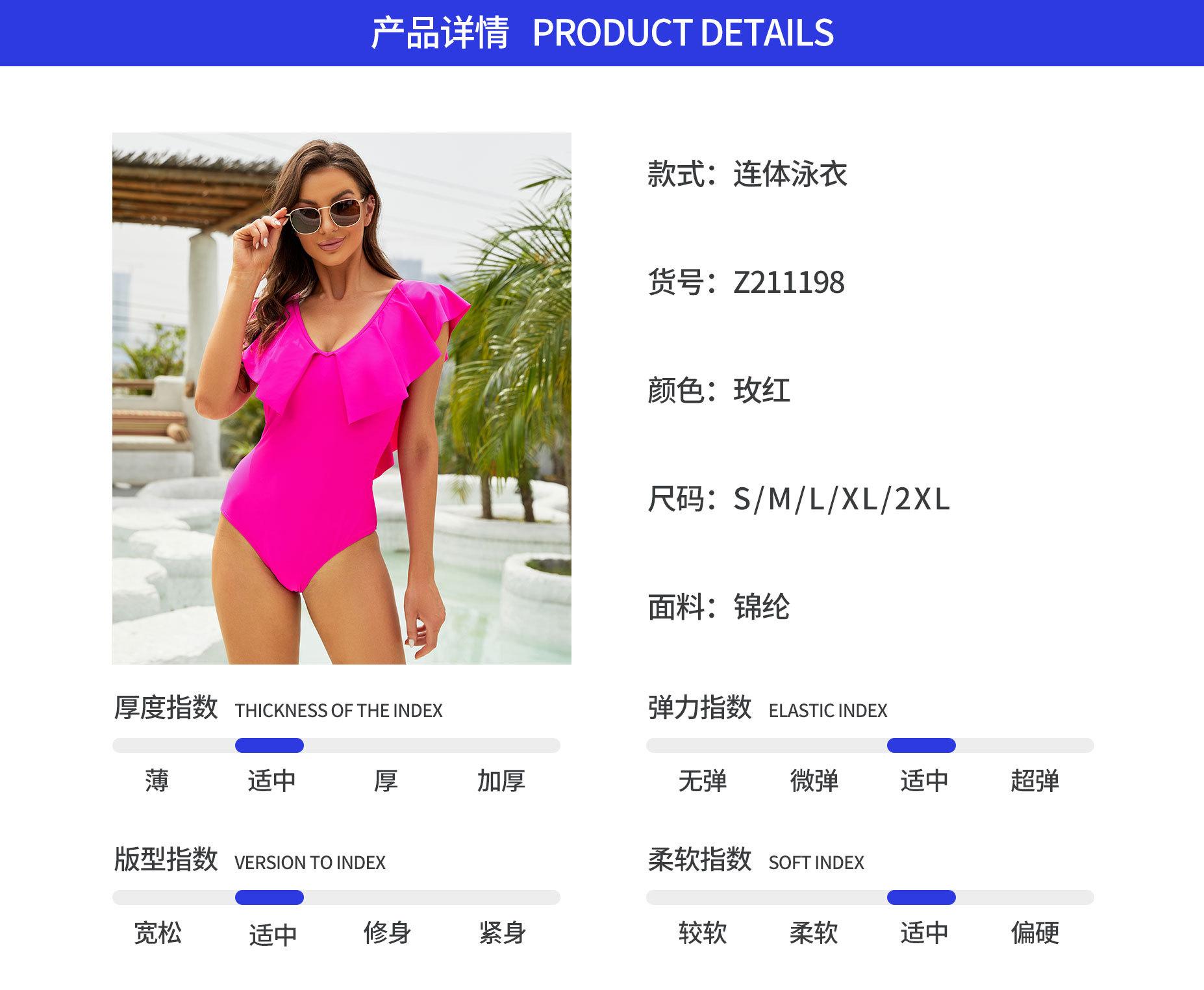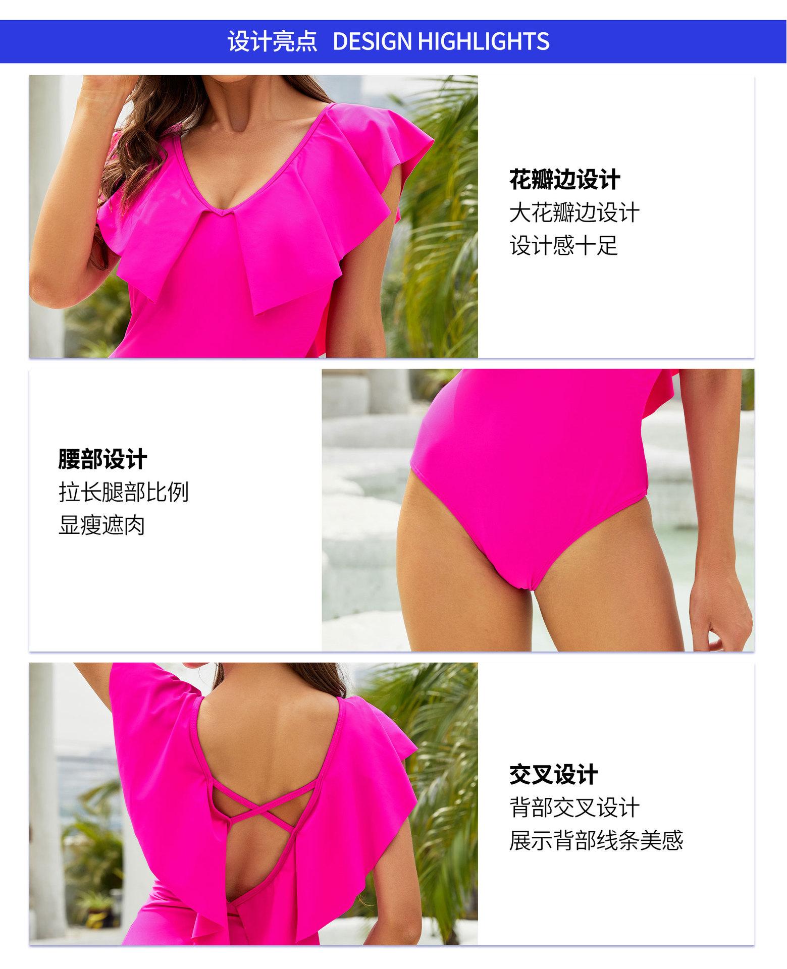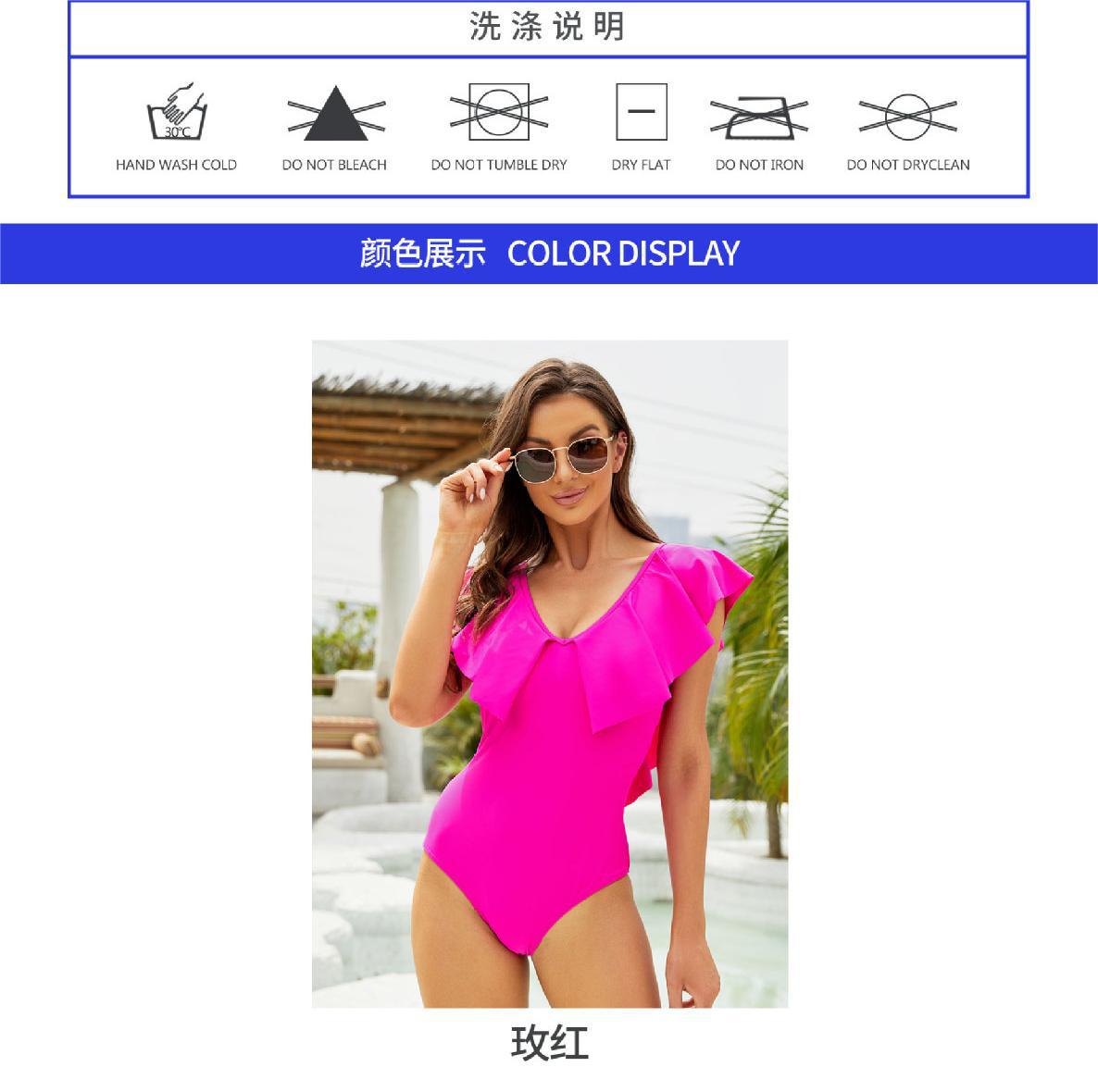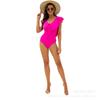 Traje de Baño Entero Nuevo 2025 para Mujer Color Sólido Espalda Descubierta con Volantes Sexy Bikini Ropa de Playa Transfronteriza Mayoreo