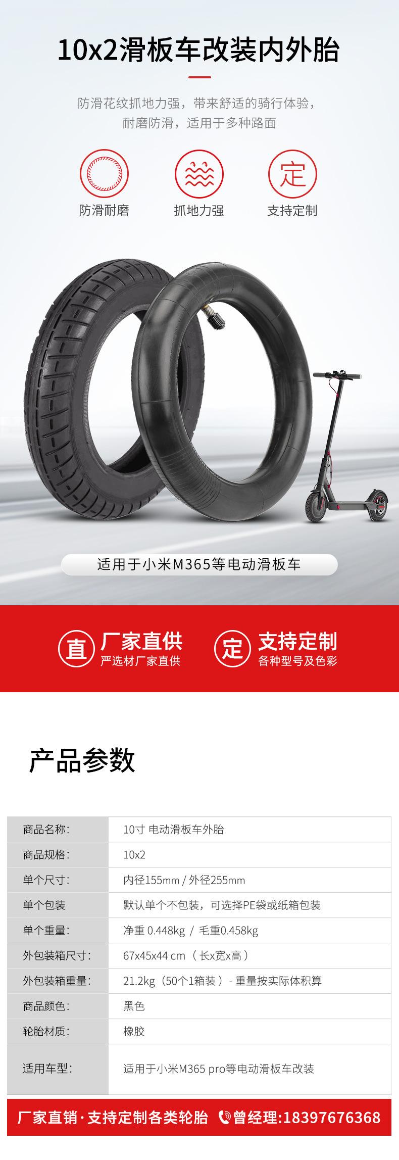 Llanta de Scooter Eléctrico M365 Neutra para Adultos y Niños, Antideslizante, Resistente al Desgaste, Goma Exterior Inflable de 10 pulgadas con Absorción de Impactos