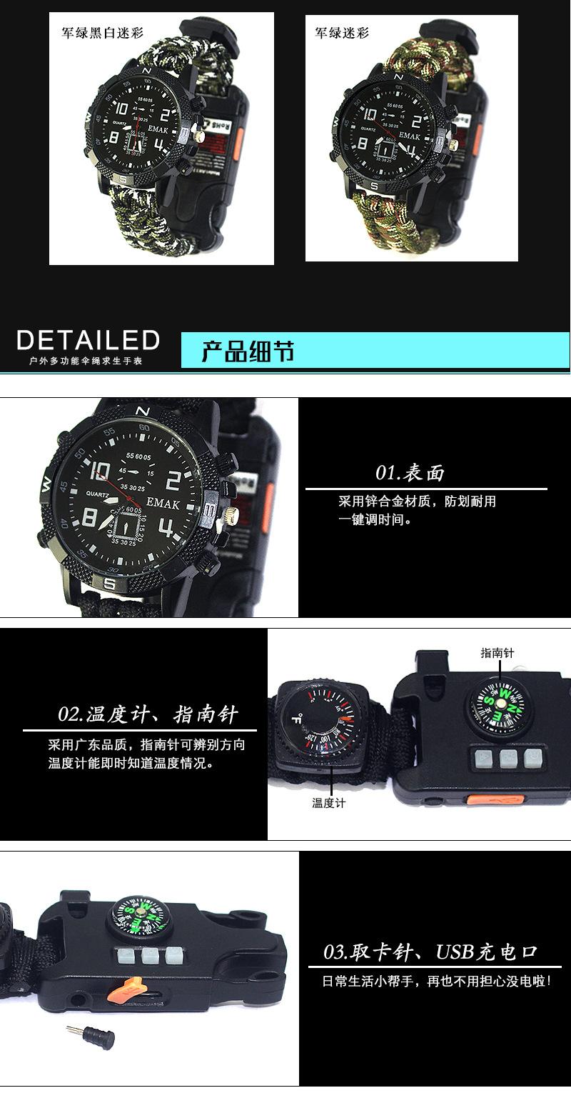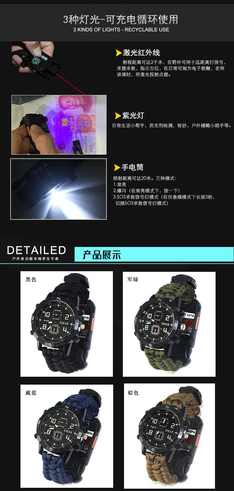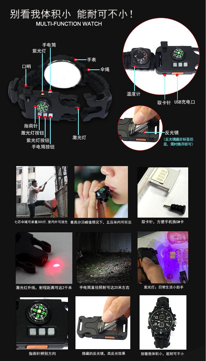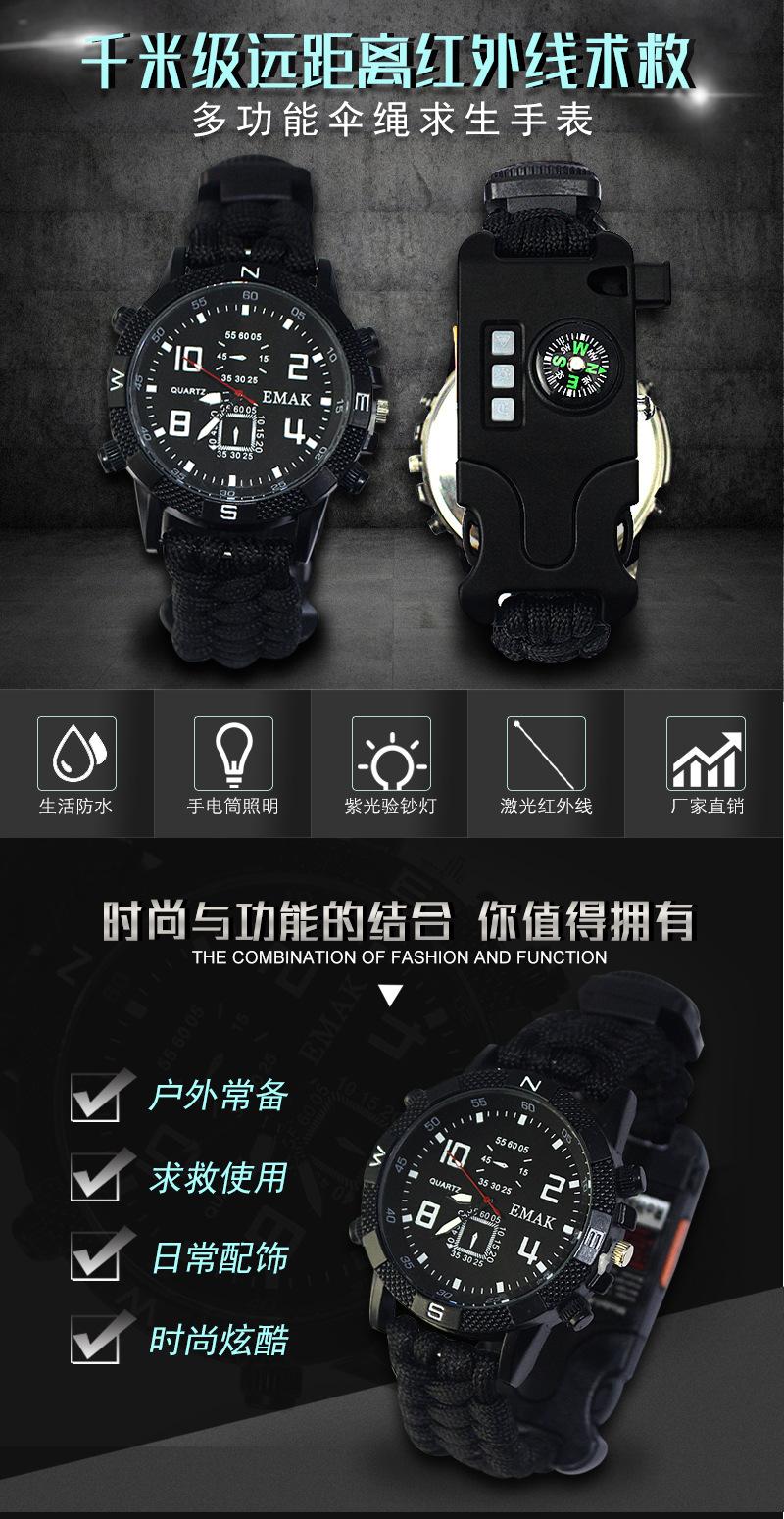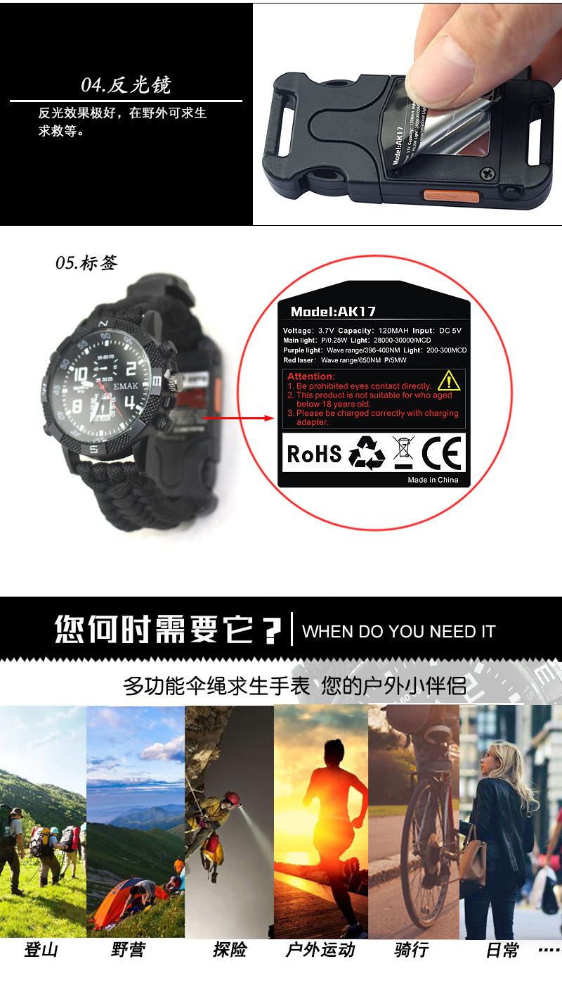 Fabricantes venta al por mayor camping al aire libre supervivencia cuerda de paracaídas de siete núcleos reloj trenzado AK17 brújula multifunción reloj de supervivencia