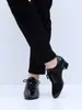 Zapatos de baile latino de suela recta para hombre y niño, de charol negro, para entrenamiento, práctica de baile de salón
