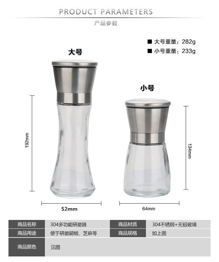 Hecho de vidrio blanco alto seleccionado sin plomo, acero inoxidable 304 de grado alimenticio y núcleo de molienda de cerámica 95 de alta resistencia, es un pequeño ayudante muy práctico en la cocina. Es fácil de usar, de apariencia hermosa y un artículo para el hogar con una apariencia hermosa y excelente artesanía, mostrando la conveniencia de la vida.