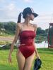 [Oferta especial] Nuevo traje de baño femenino de una pieza con tirantes fruncidos de color sólido, estilo bikini ajustado y sexy para vacaciones en aguas termales