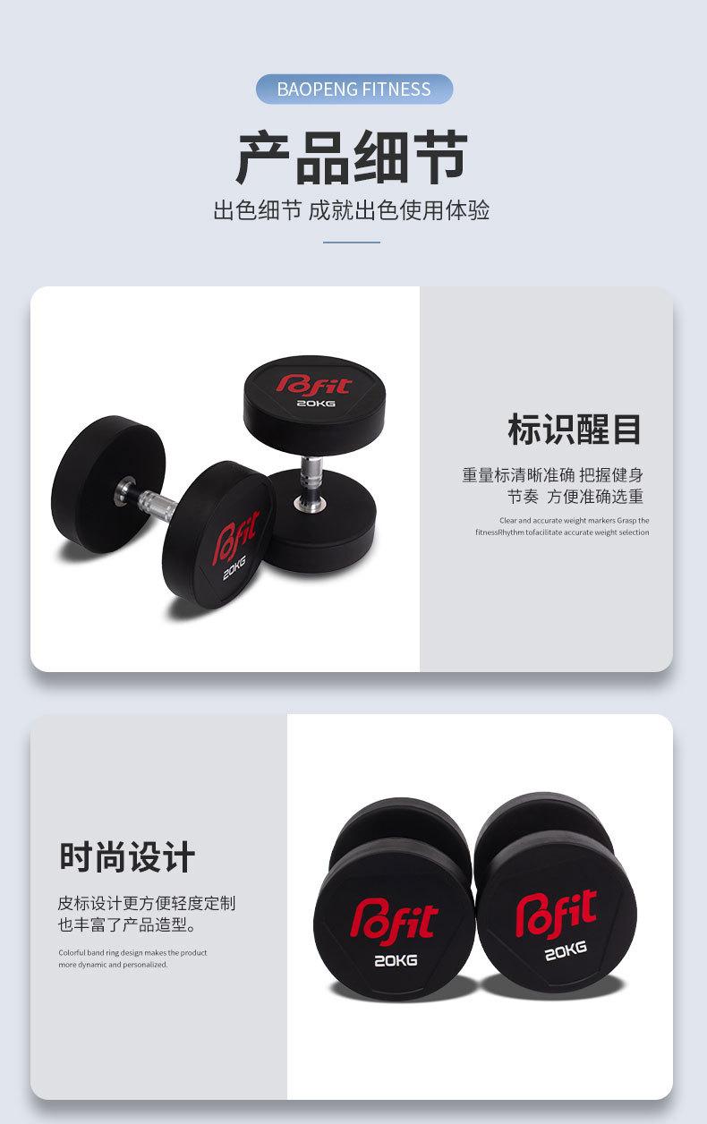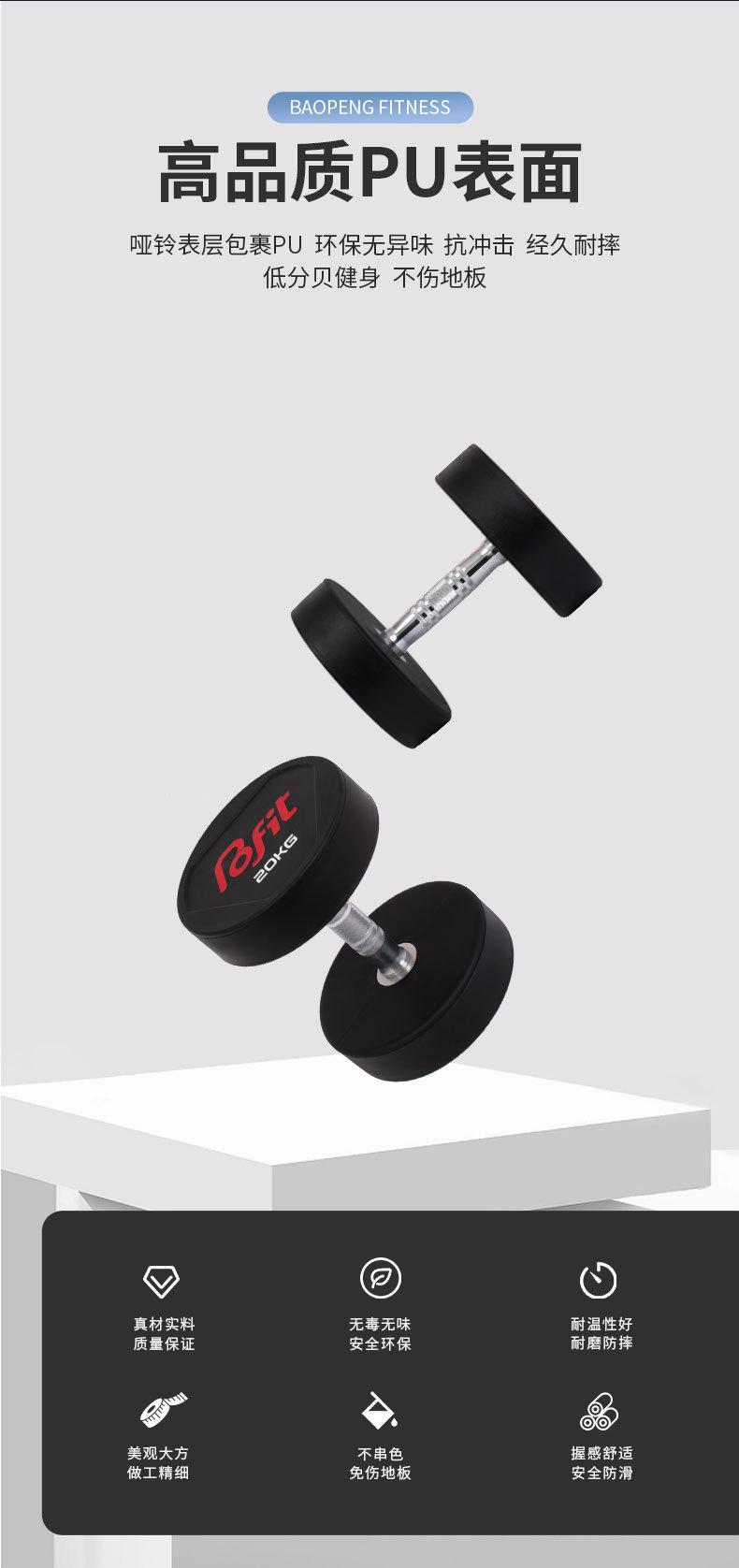 Mancuernas de PU para uso doméstico, equipo deportivo de fitness, mancuernas de cabeza redonda fijas comerciales especiales para hombres, mancuernas recubiertas de plástico.