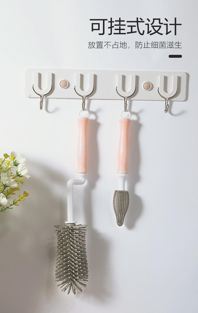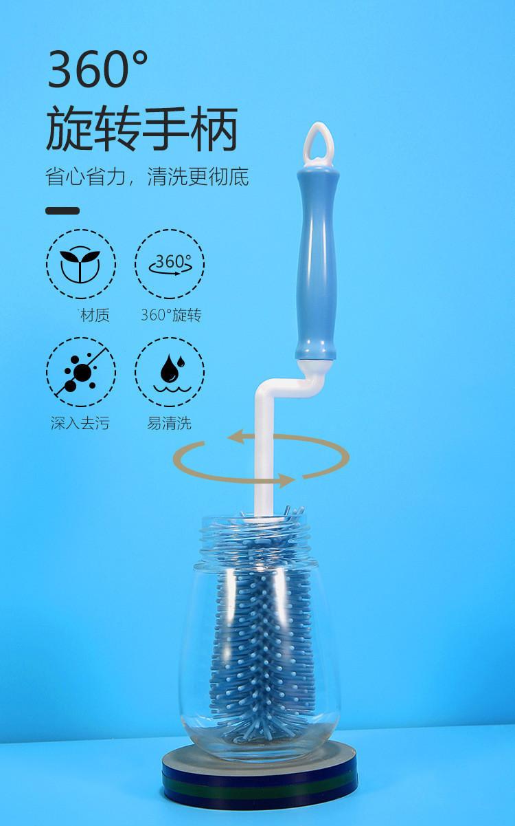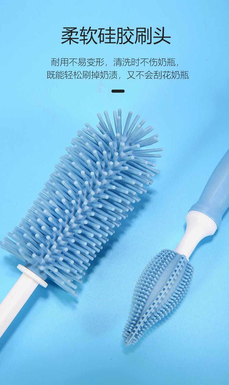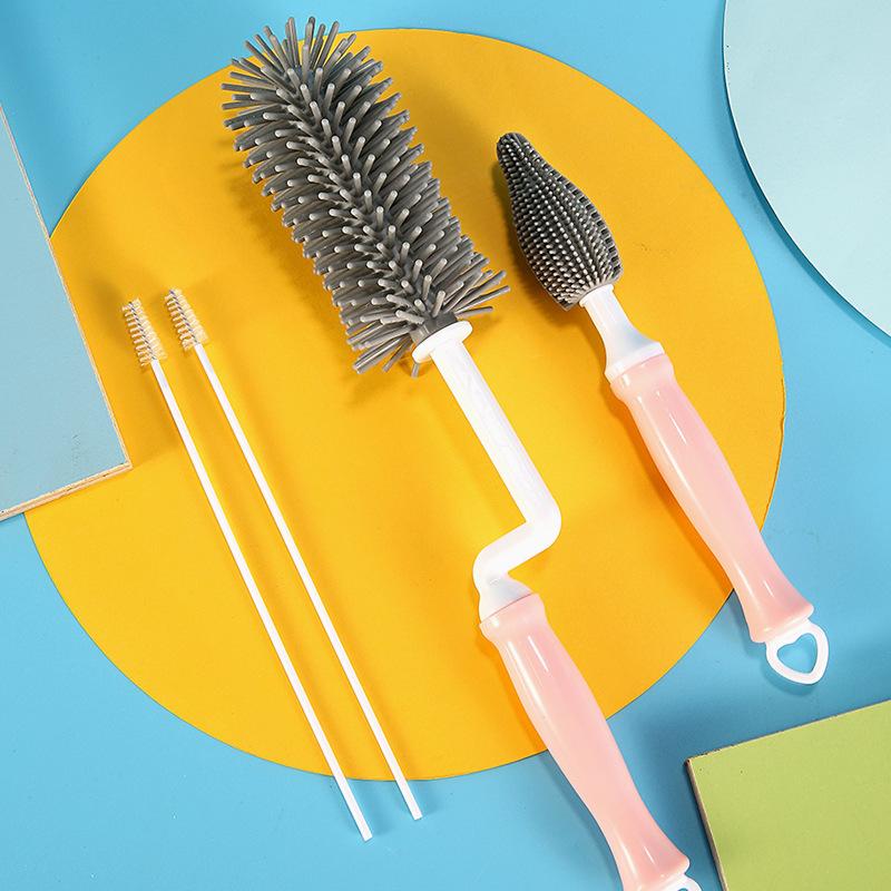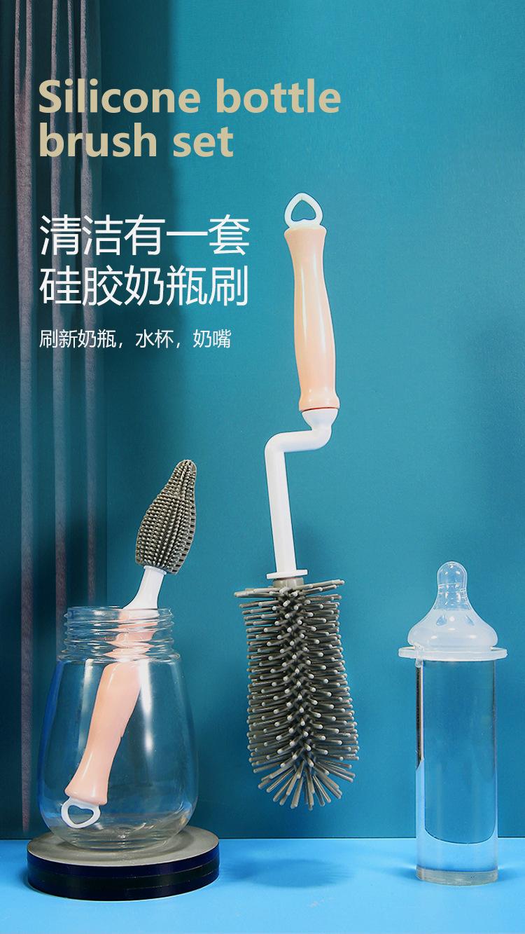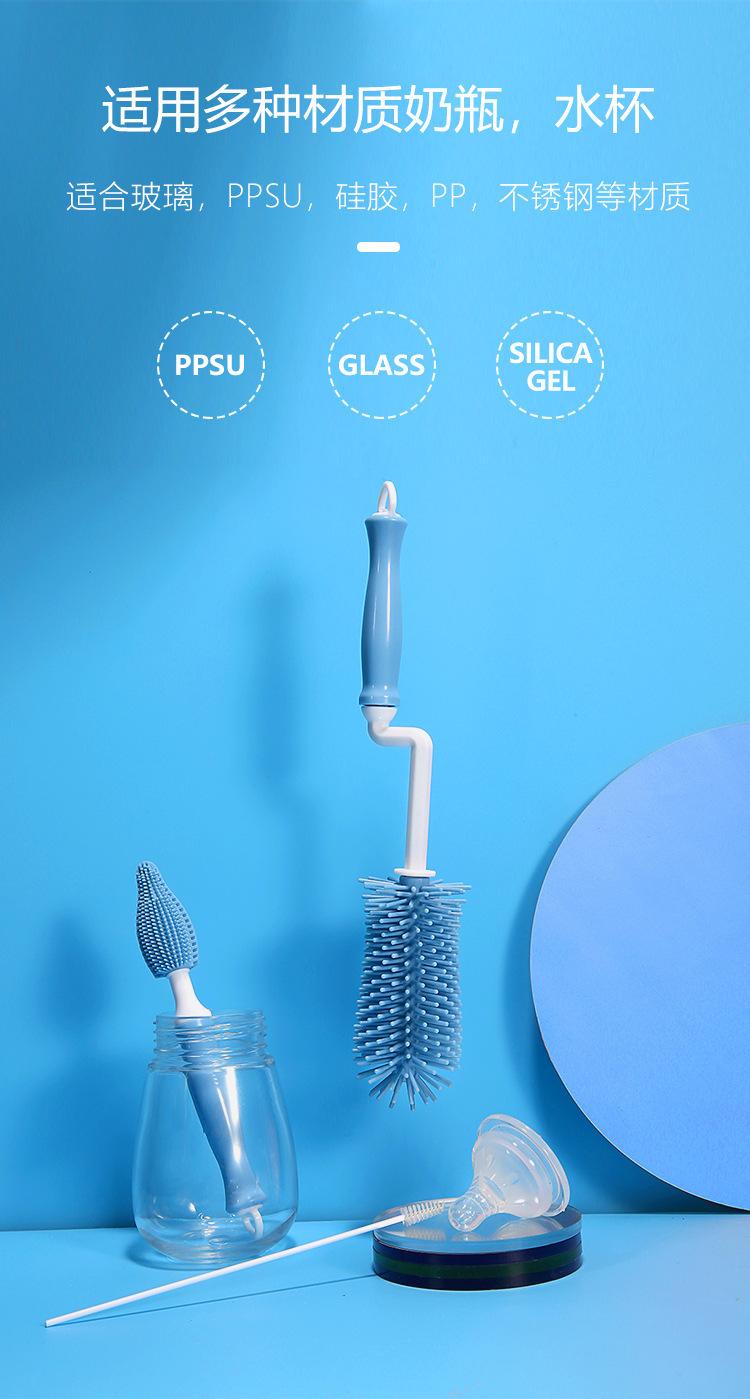 Juego de cepillos de silicona para limpiar tetinas de biberón, herramienta de limpieza para vasos de agua para bebés, cepillo de limpieza giratorio de 360 grados con mango largo