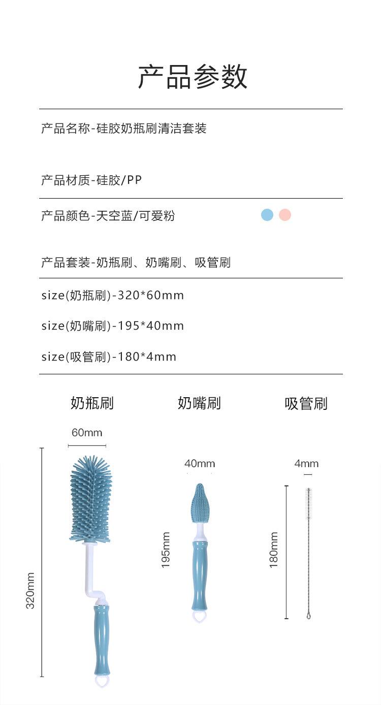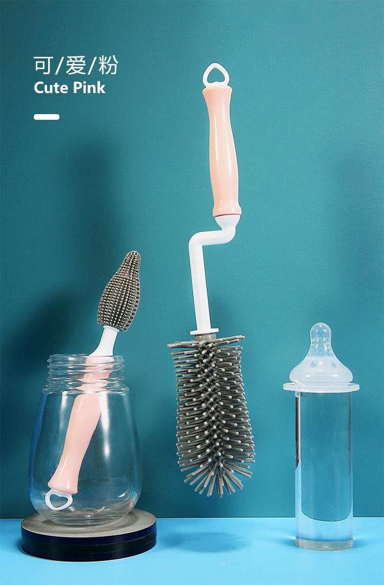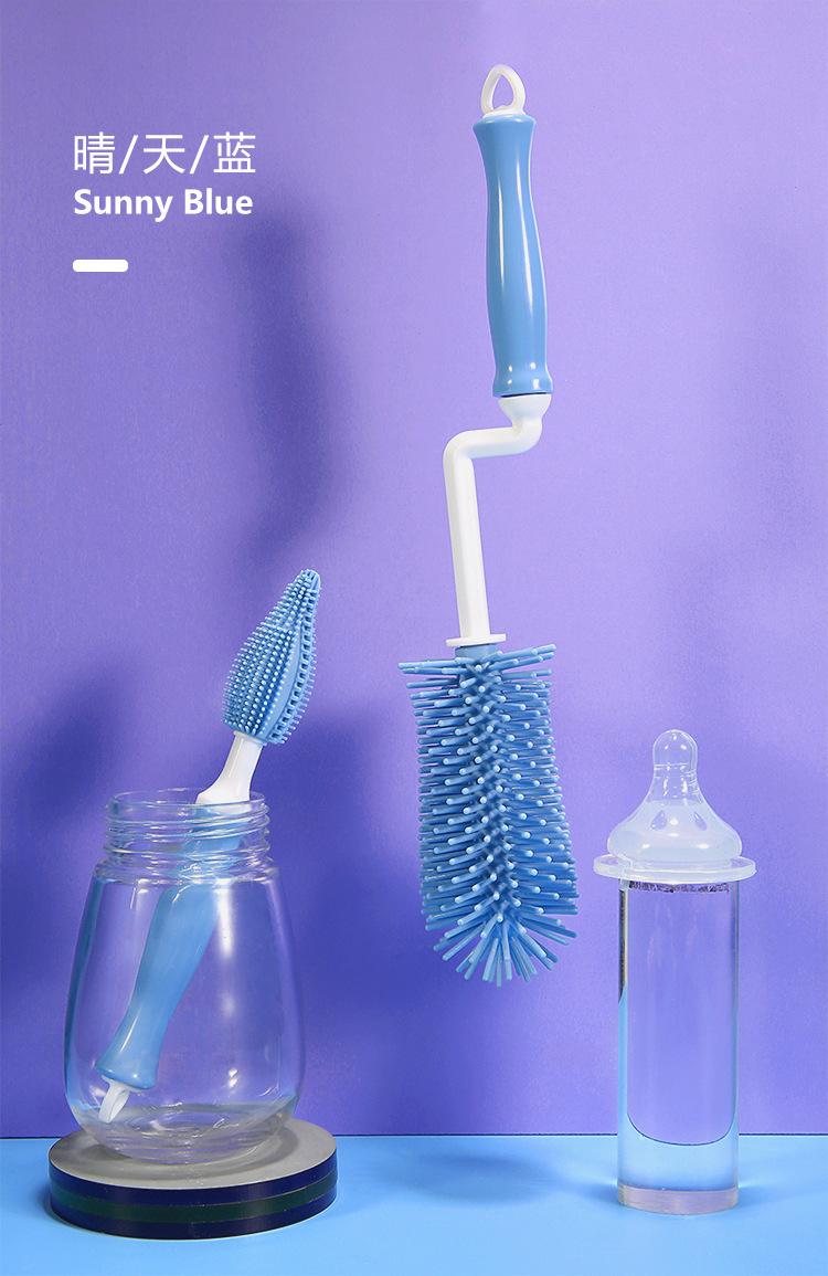 Set de cepillos de silicona para tetinas de biberón, herramienta de limpieza para tazas de bebé, cepillo de limpieza de mango largo giratorio de 360 grados