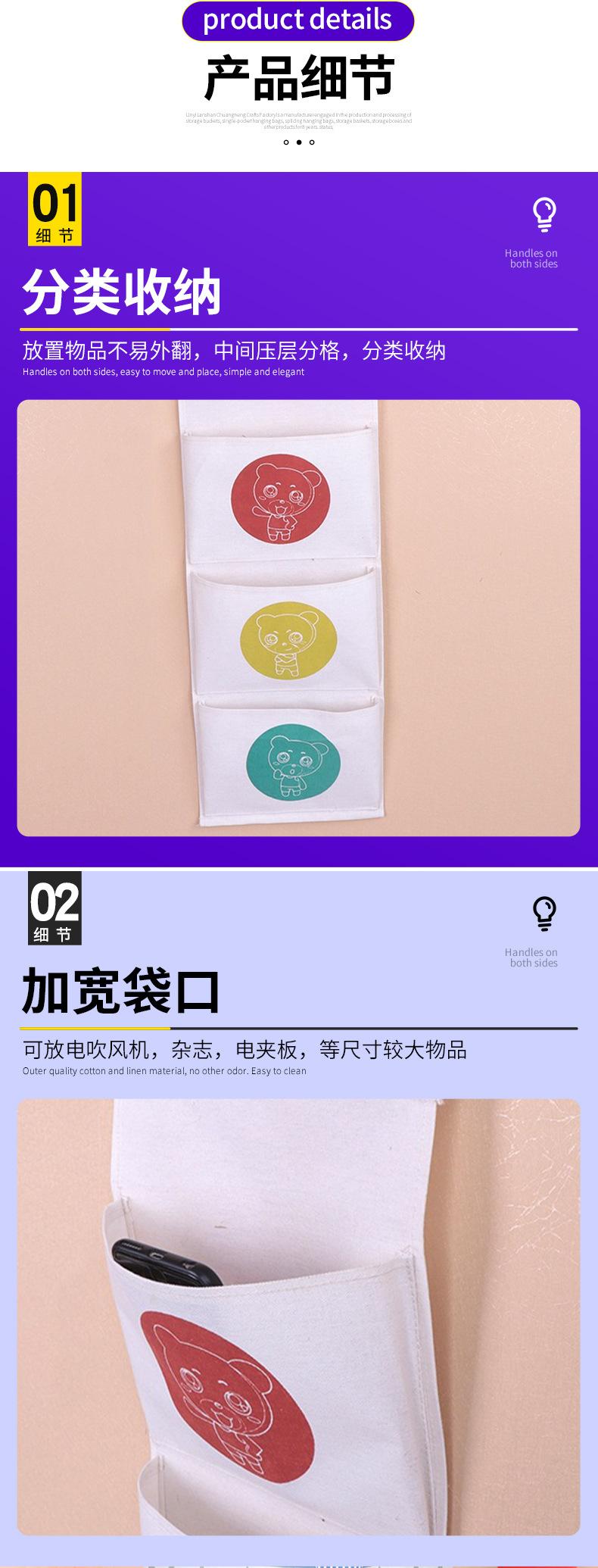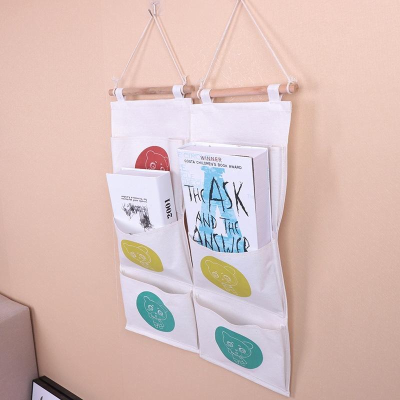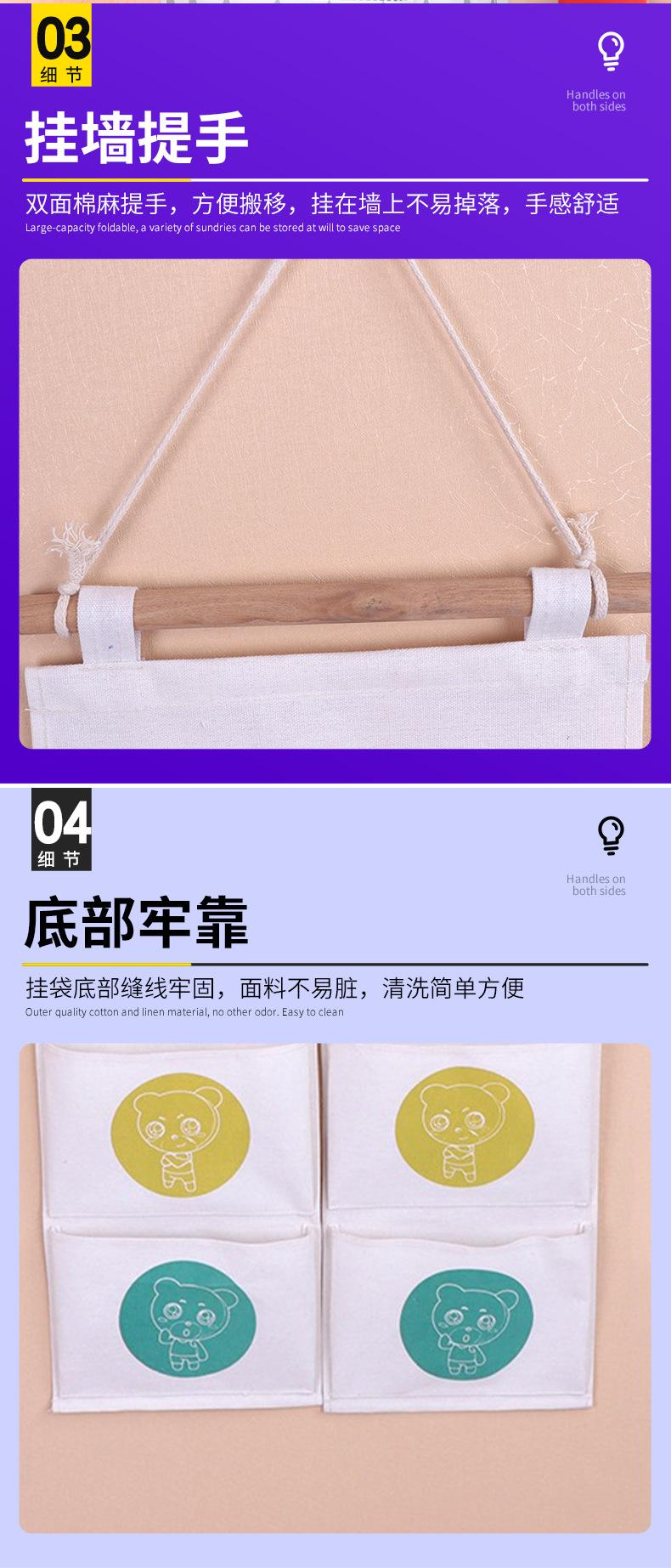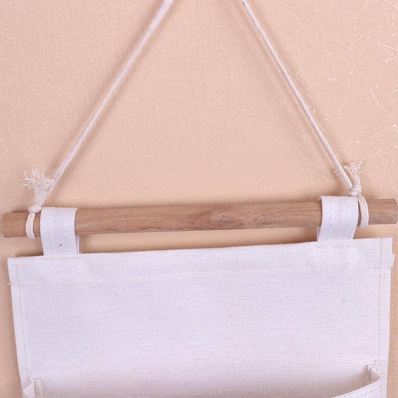 Bolsa colgante de almacenamiento doble de fábrica, bolsa colgante de pared para artículos diversos, bolsa colgante de algodón y lino para artículos del hogar.