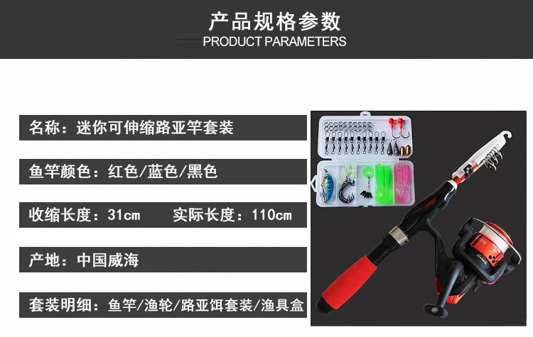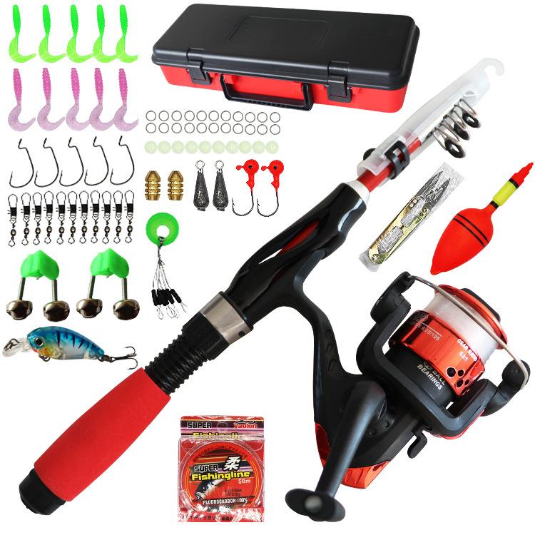 Caña para Niños Juego de 72 Piezas Mango Recto Telescópica Caña de Carretera Caña de Pescar Bolsillo Mini Caña de Camarón Caña de Pescar de Sección Corta Aparejos de Pesca