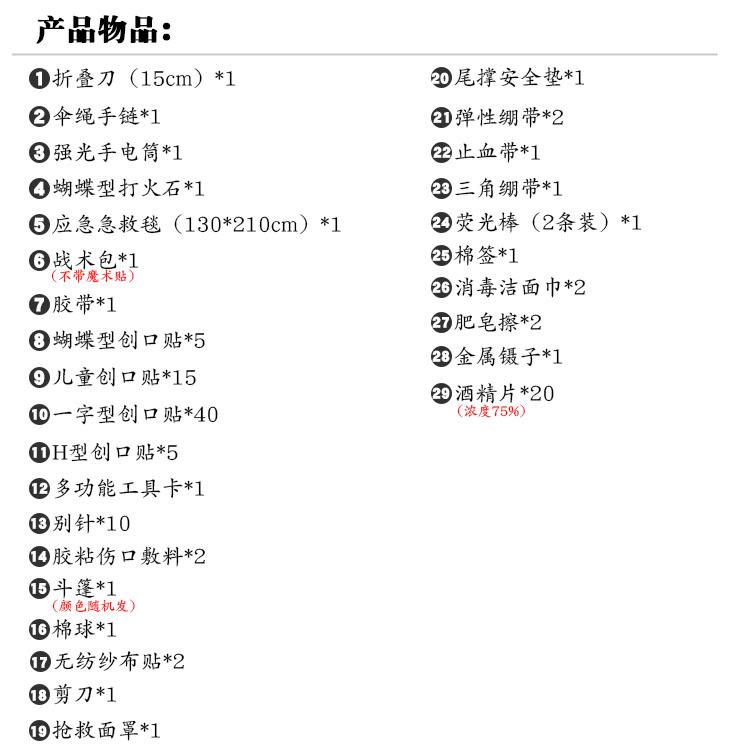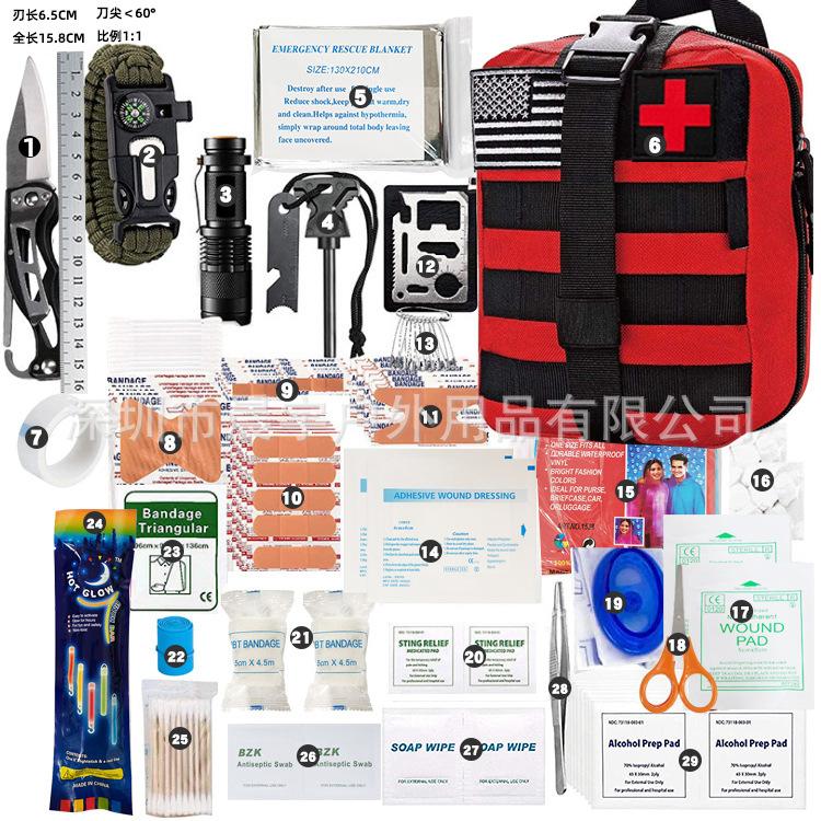 Equipo de emergencia multifuncional, traje de aventura al aire libre, caja de herramientas de supervivencia al aire libre, bolsa combinada de supervivencia para coche de viaje