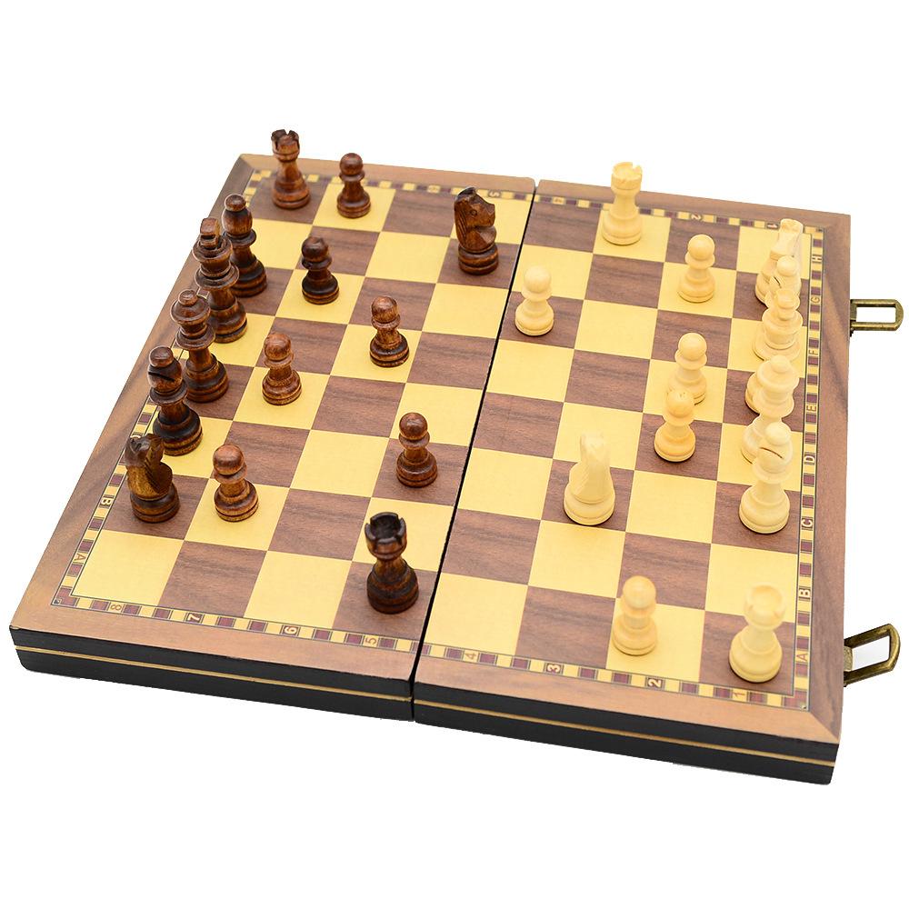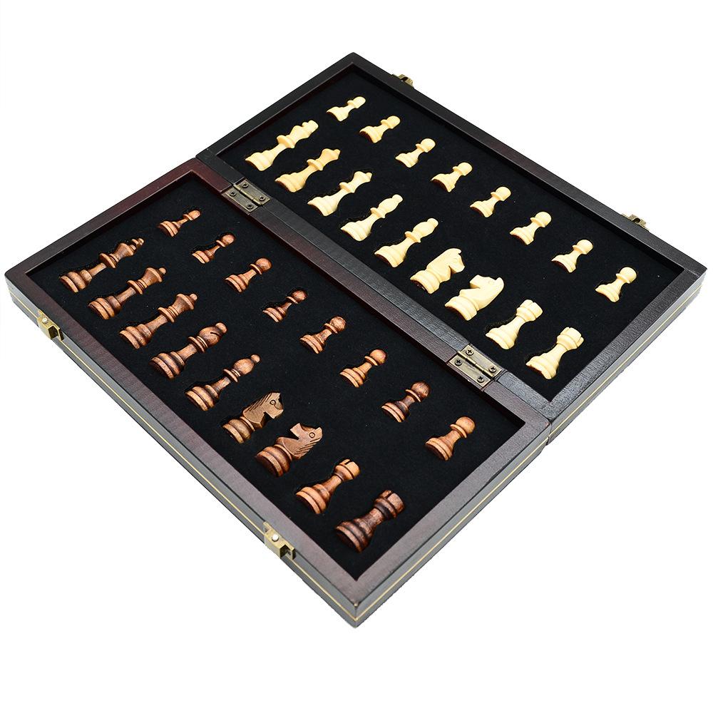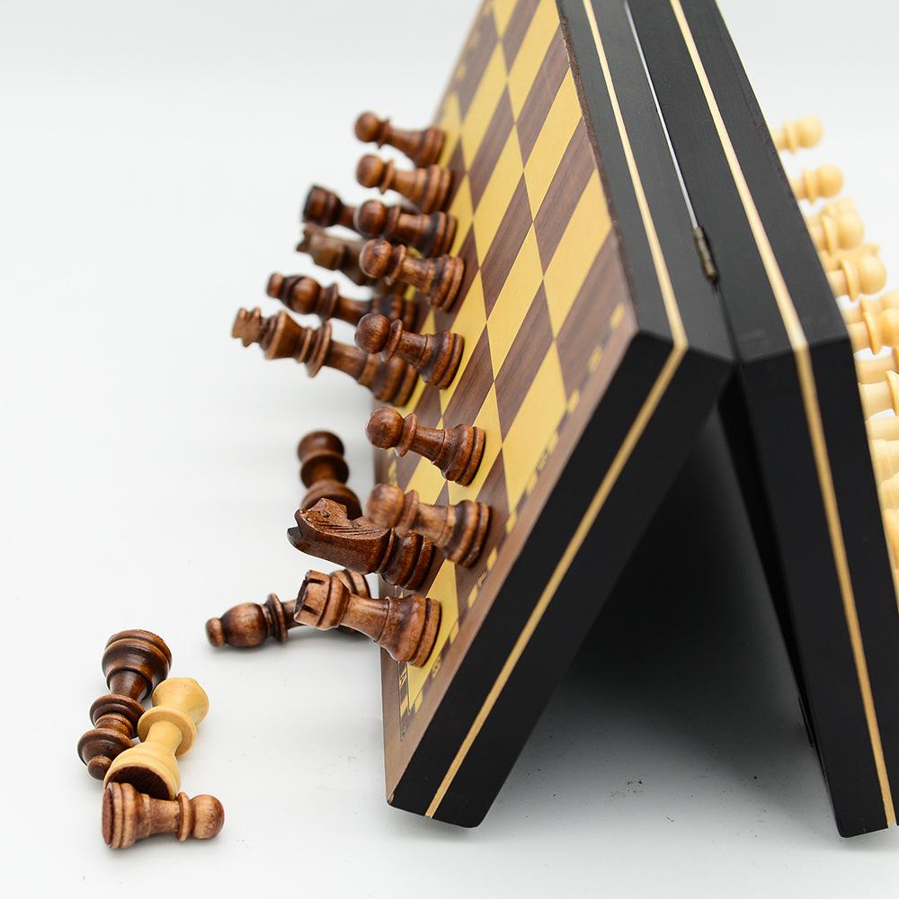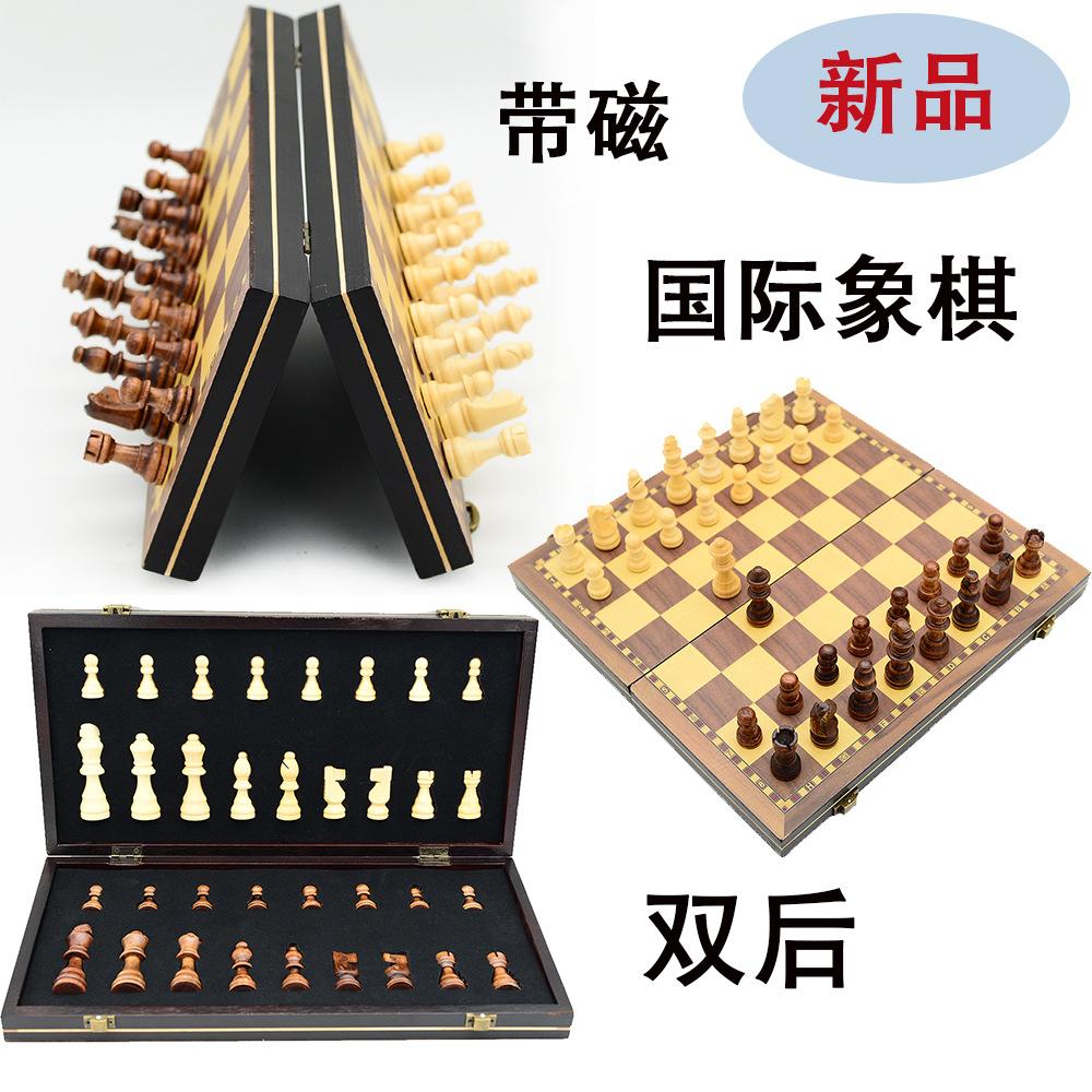 El juego de ajedrez de madera es plegable y contiene ajedrez magnético conveniente tipo rompecabezas y juego de cartas. Los fabricantes transfronterizos venden ajedrez directamente