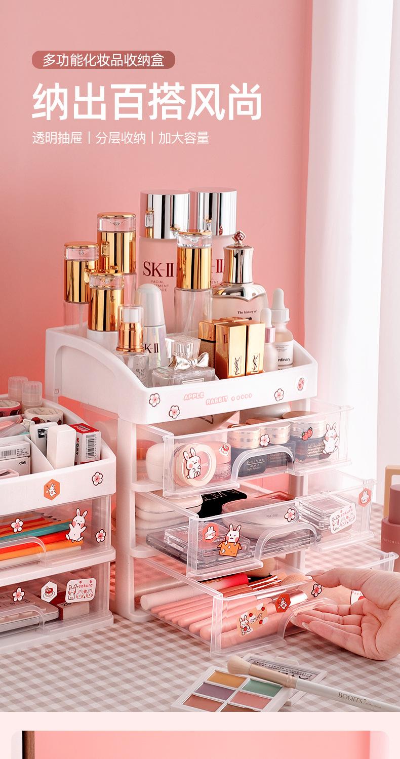 Caja de almacenamiento de escritorio para cosméticos, cajón multicapa, para el hogar, a prueba de polvo, con acabado transparente simple.