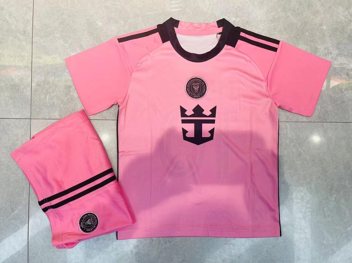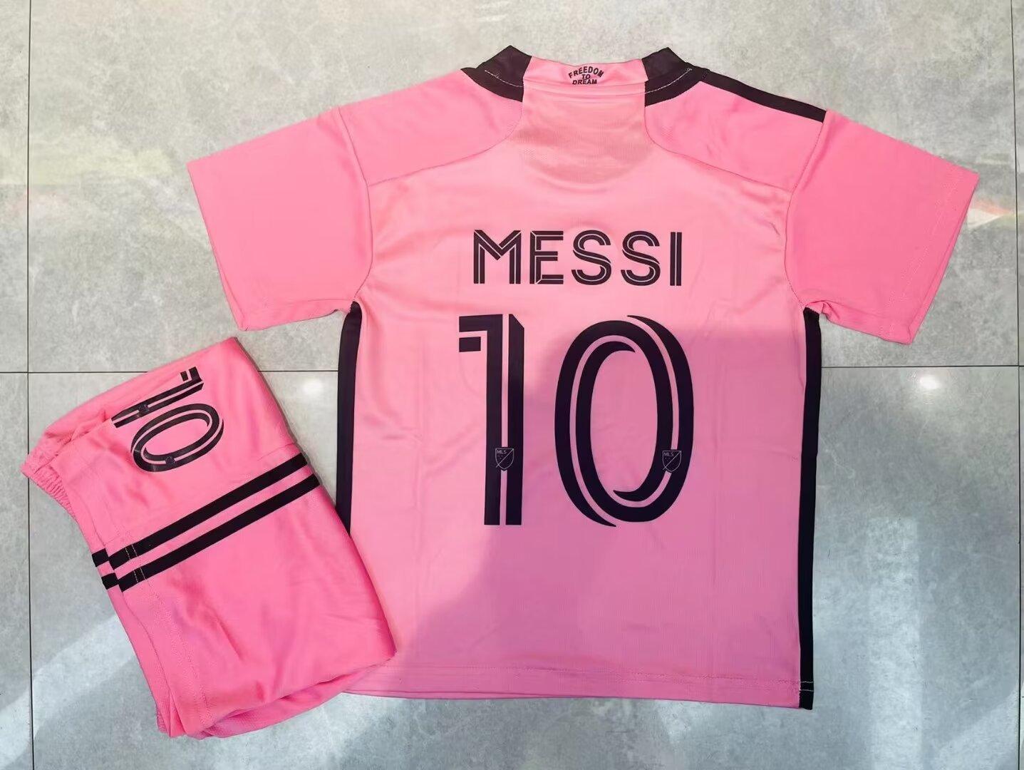 Conjunto de fútbol Miami Home No. 10 Messi para niños y adultos, camiseta de dos barras con estampado digital, talla 24-25, talla 14-30