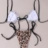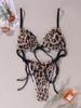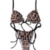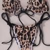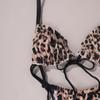 Bikini Transfronterizo Europeo y Americano Nuevo Sin Espalda Ajustado Sexy Dividido Traje de Baño para Mujer Bikini con Cordones de Estampado de Leopardo en Stock