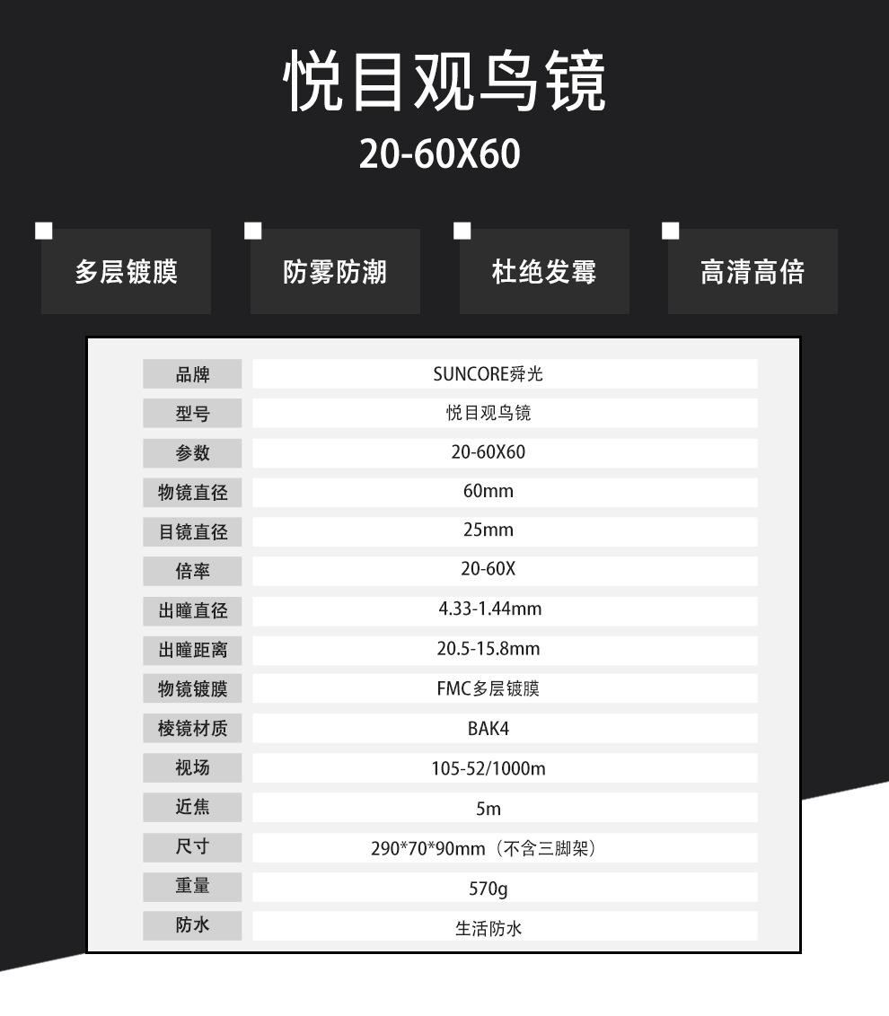 Suncore Shunguang 25-75X60/20-60X60 Espejo para Observación de Aves (Modelo Plata) en stock