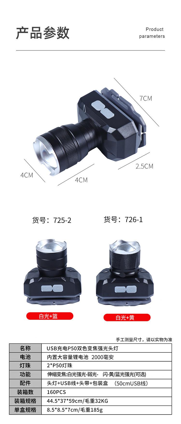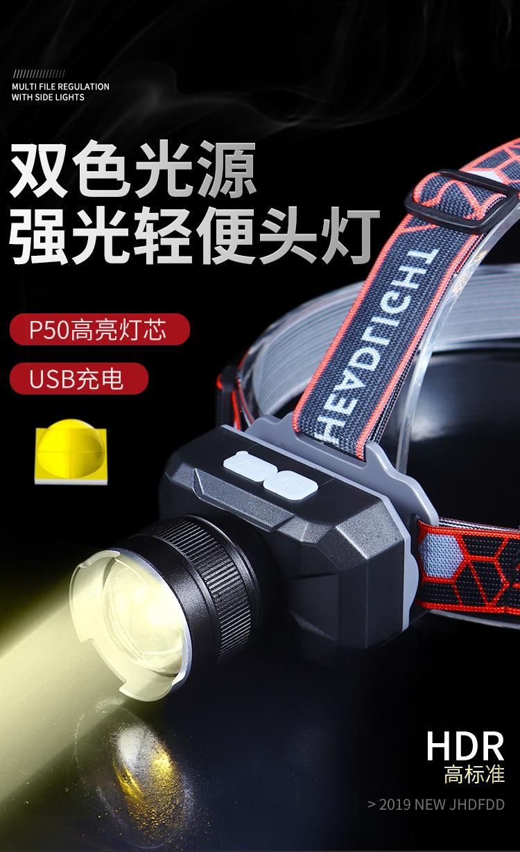 Linterna frontal brillante transfronteriza, linterna frontal brillante, linterna LED recargable para pesca nocturna, iluminación exterior, linterna frontal pequeña