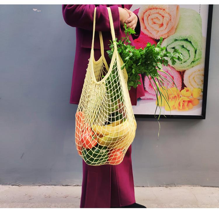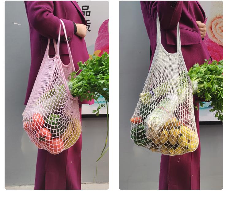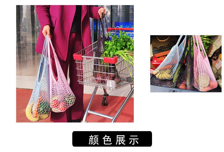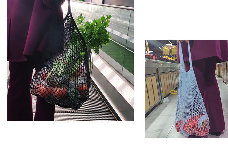Bolsa de Malla de Frutas de Moda en 13 Colores, Tote Portátil de Gran Capacidad, Bolsa de Compras de Malla de Algodón, Almacenamiento de Gran Capacidad