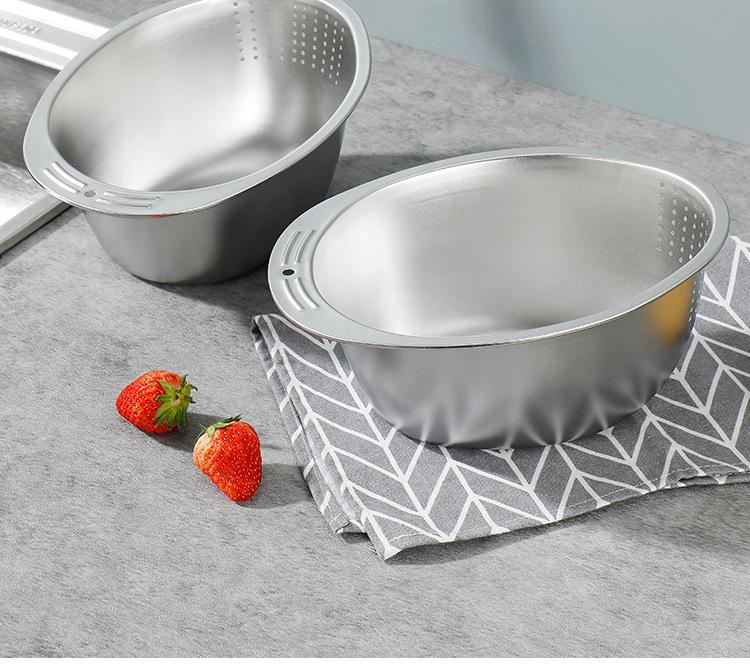 Tamiz de acero inoxidable 304 para lavar arroz, con fondo inclinado, para lavar verduras, cesta de drenaje para lavar arroz, para limpieza de cocinas domésticas, para granos, frutas y verduras, cuenco antifugas