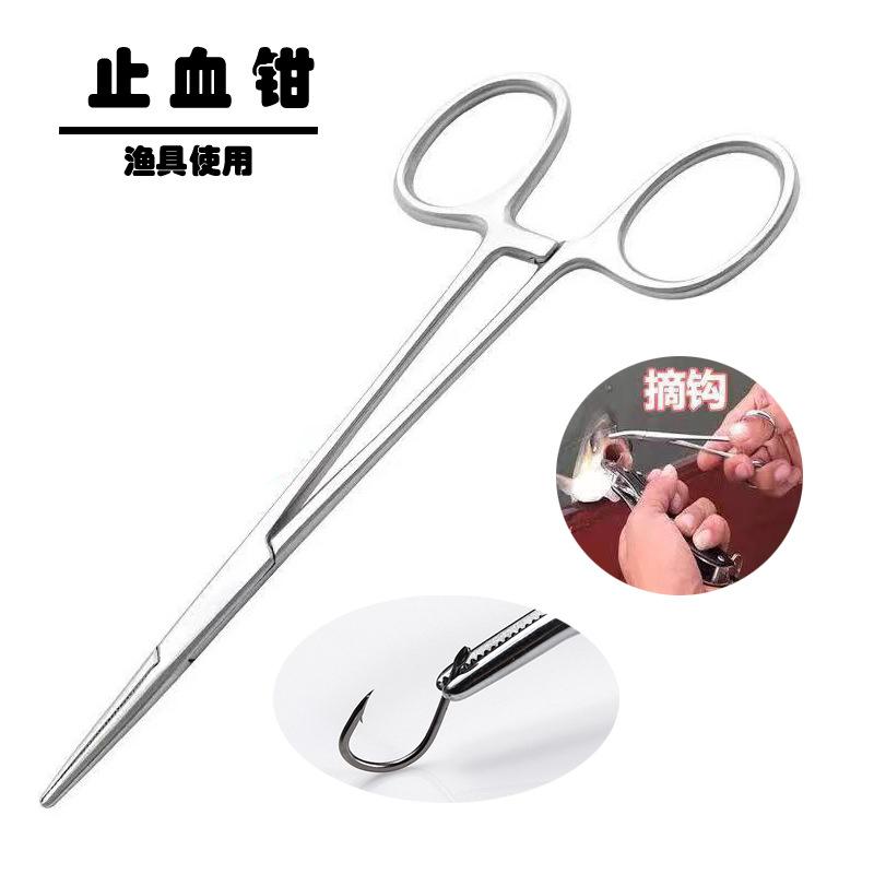 Este tipo de pinza hemostática se utiliza principalmente para quitar anzuelos de aparejos de pesca y no se recomienda para otros usos.