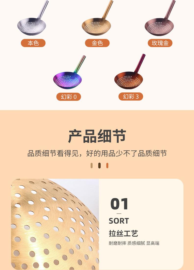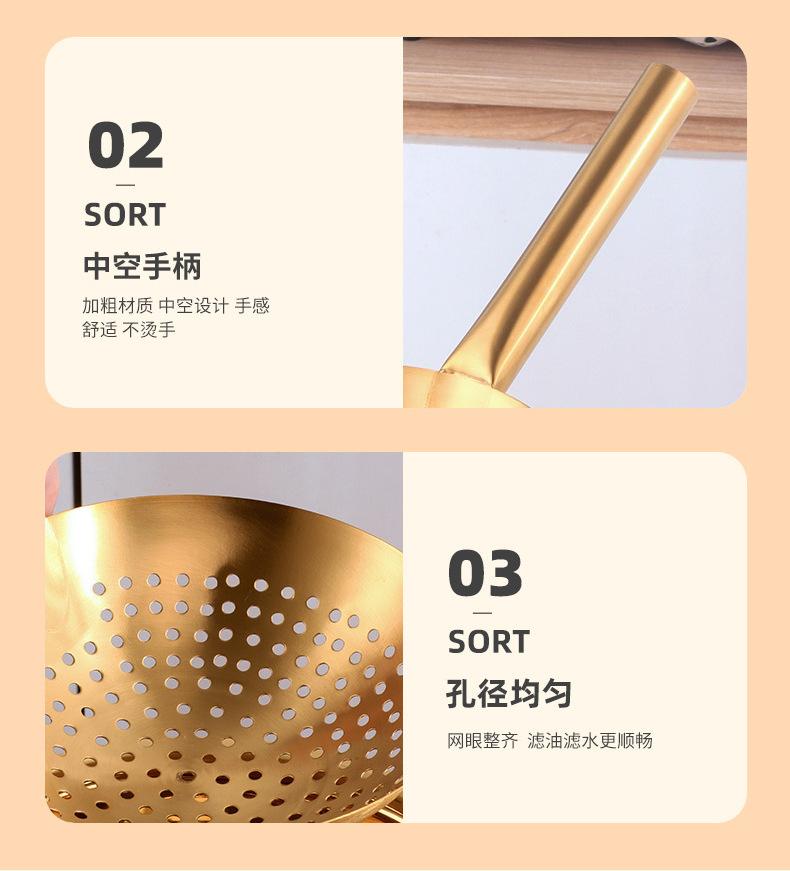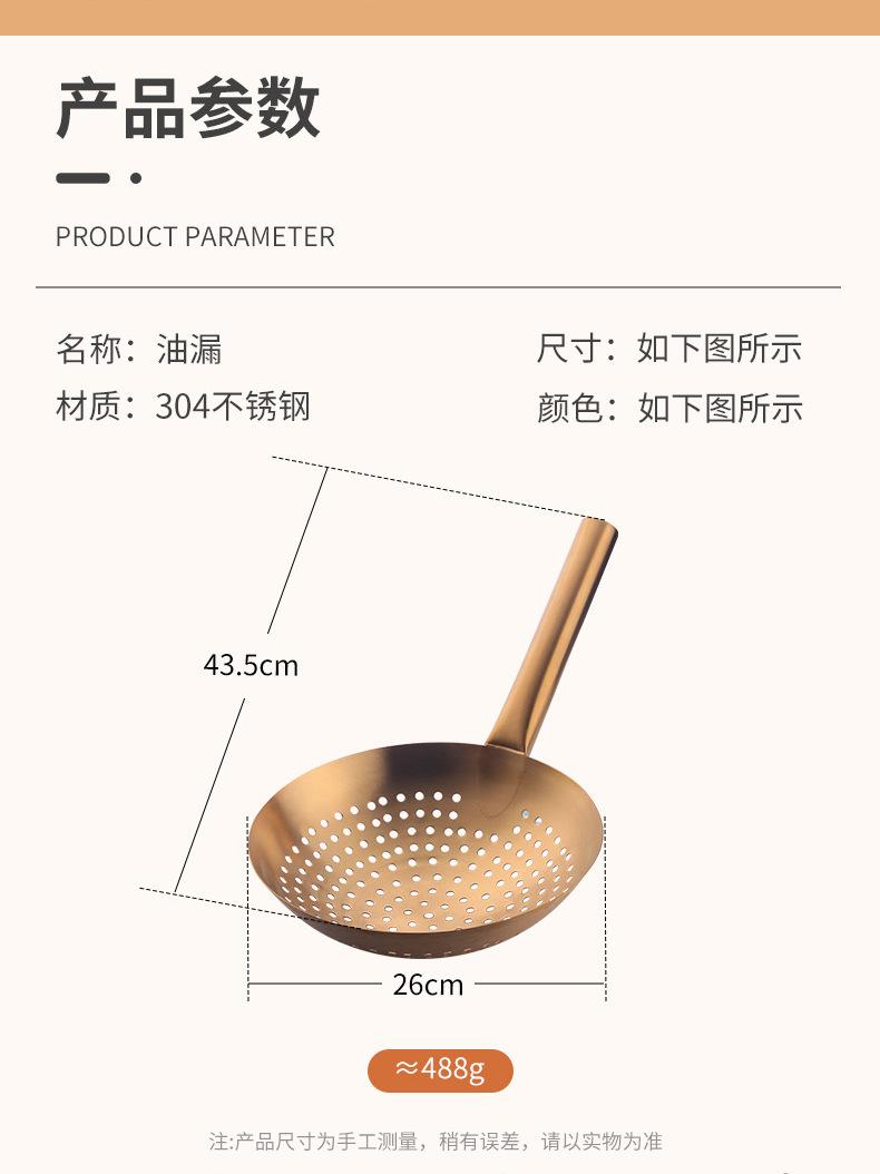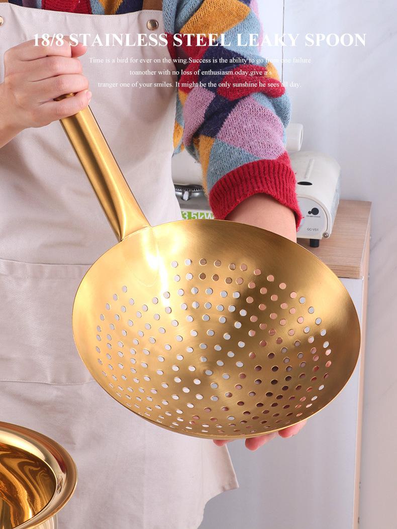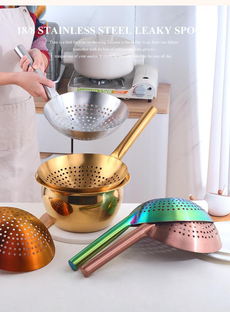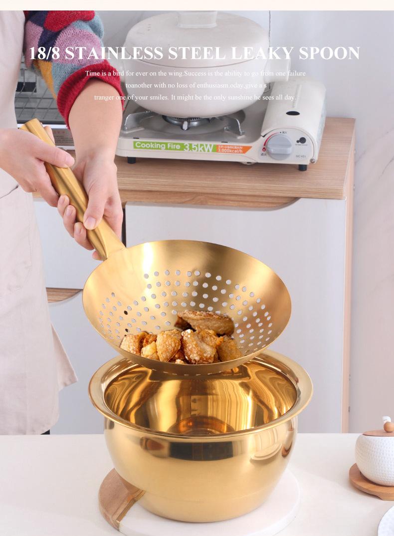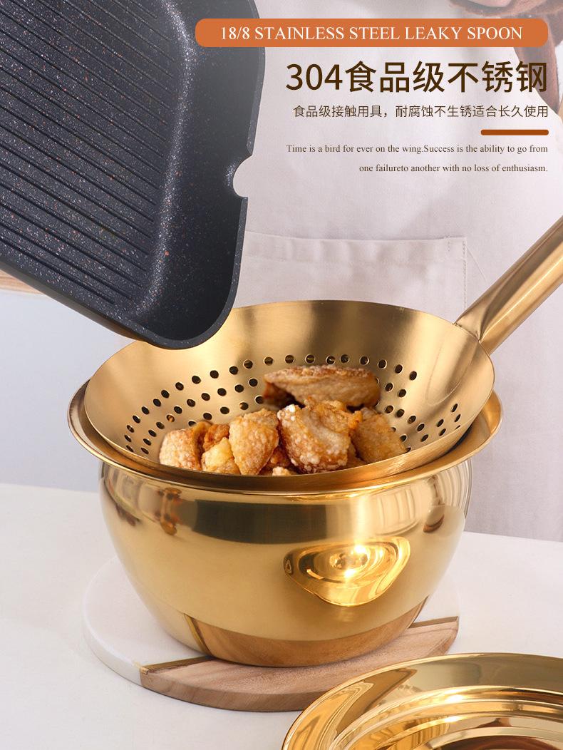 Cuchara con filtro de aceite de acero inoxidable 304 para hoteles, restaurantes, cocinas, fideos fritos, colador de aceite, mango grueso, antifugas de aceite