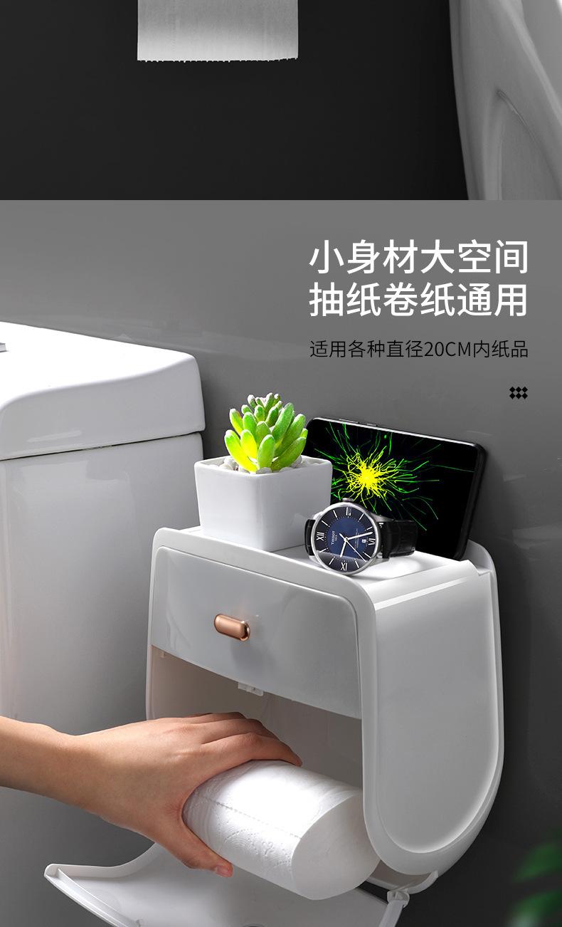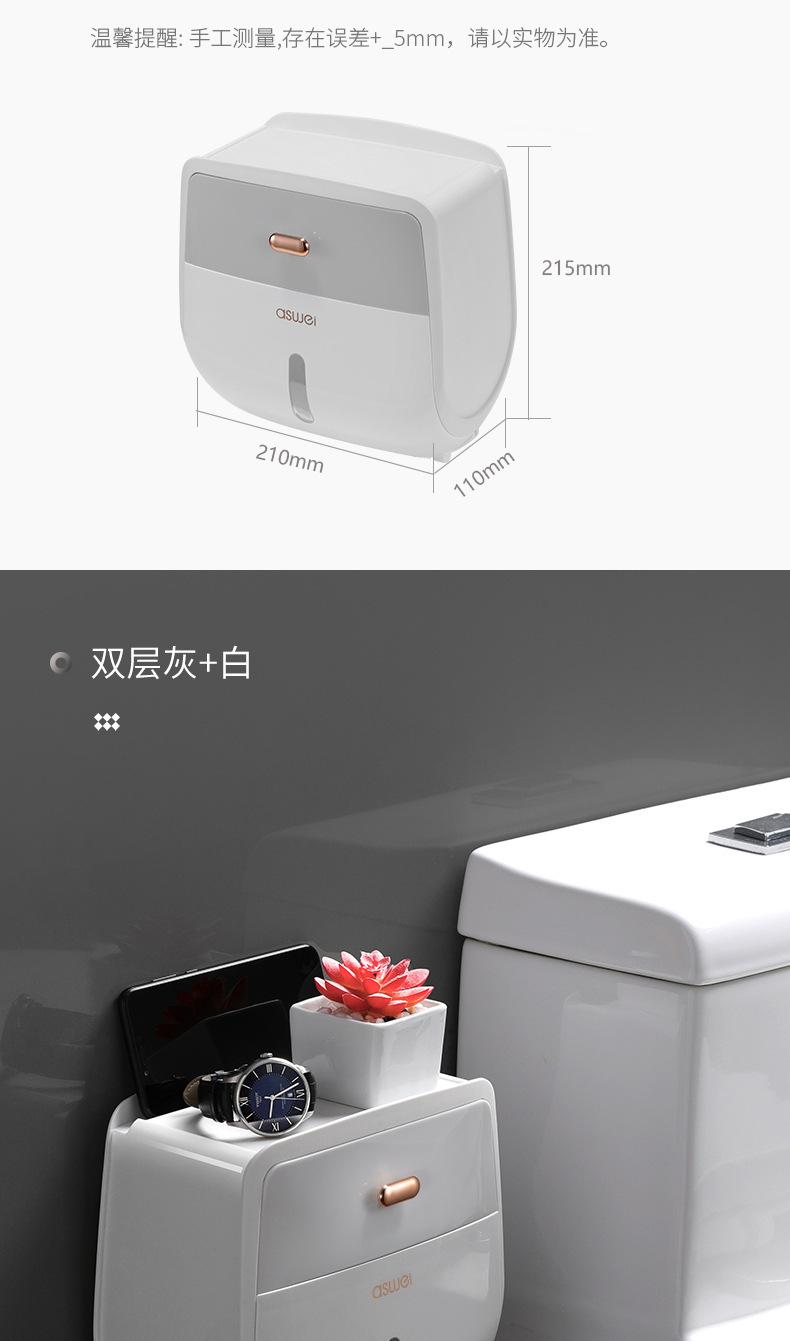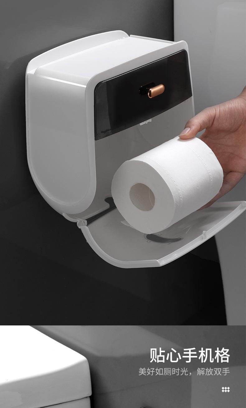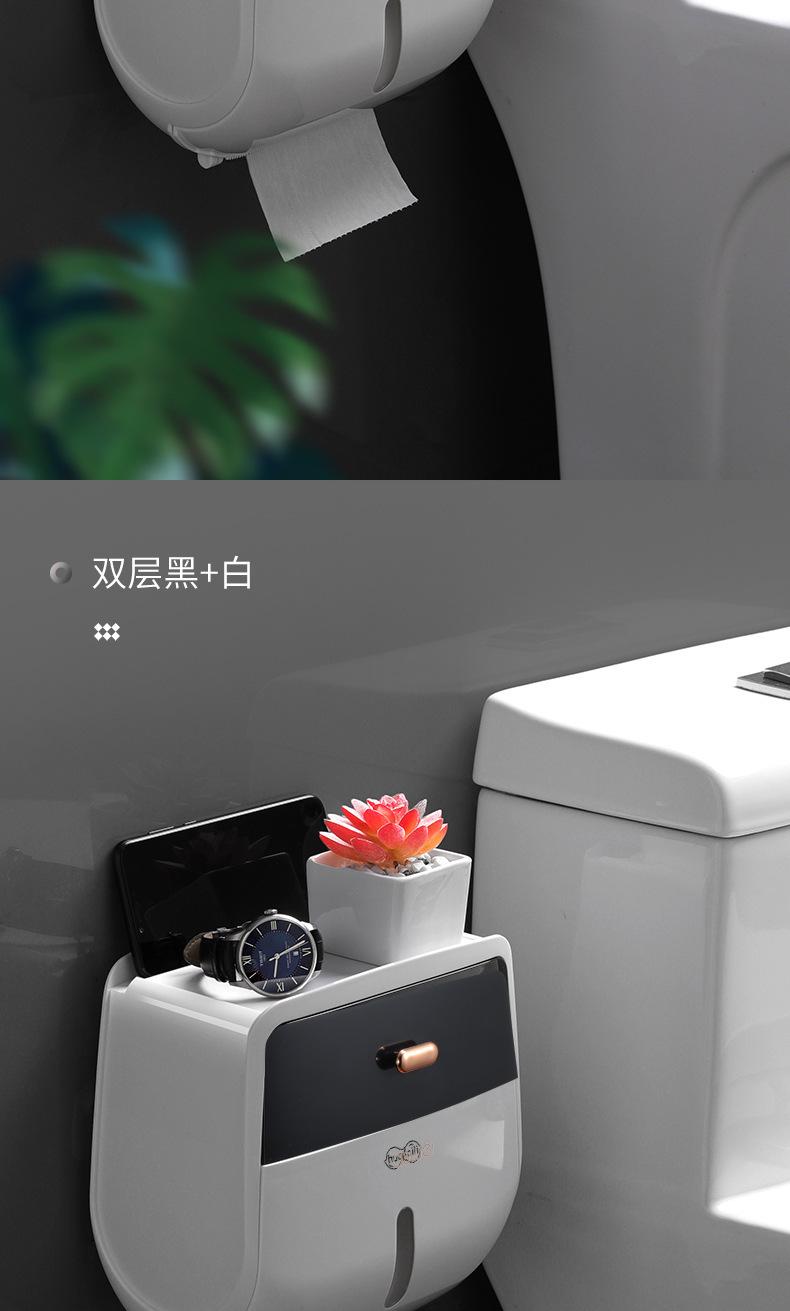 Caja de Pañuelos de Baño Estante de Almacenamiento de Doble Capa para Baño Doméstico Creativo Impermeable Montado en la Pared Rollo de Papel Sin Perforaciones