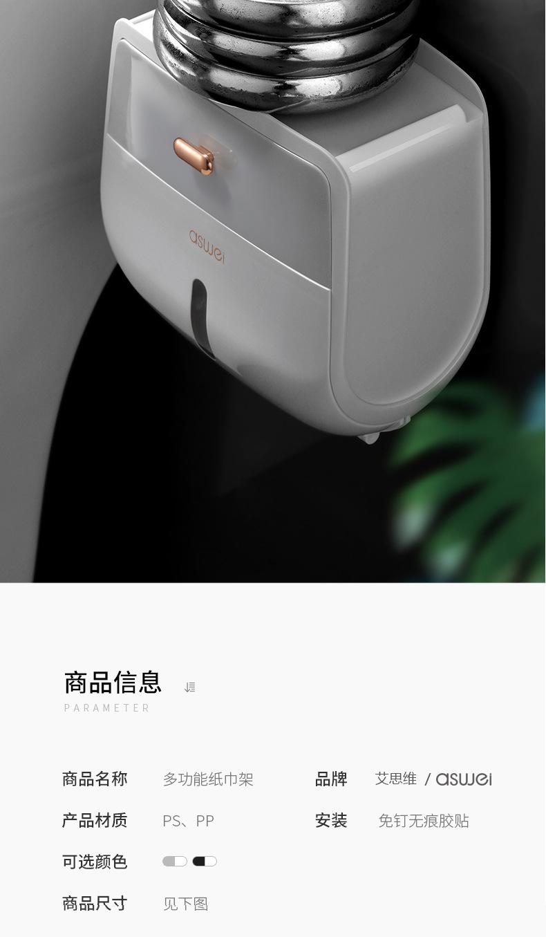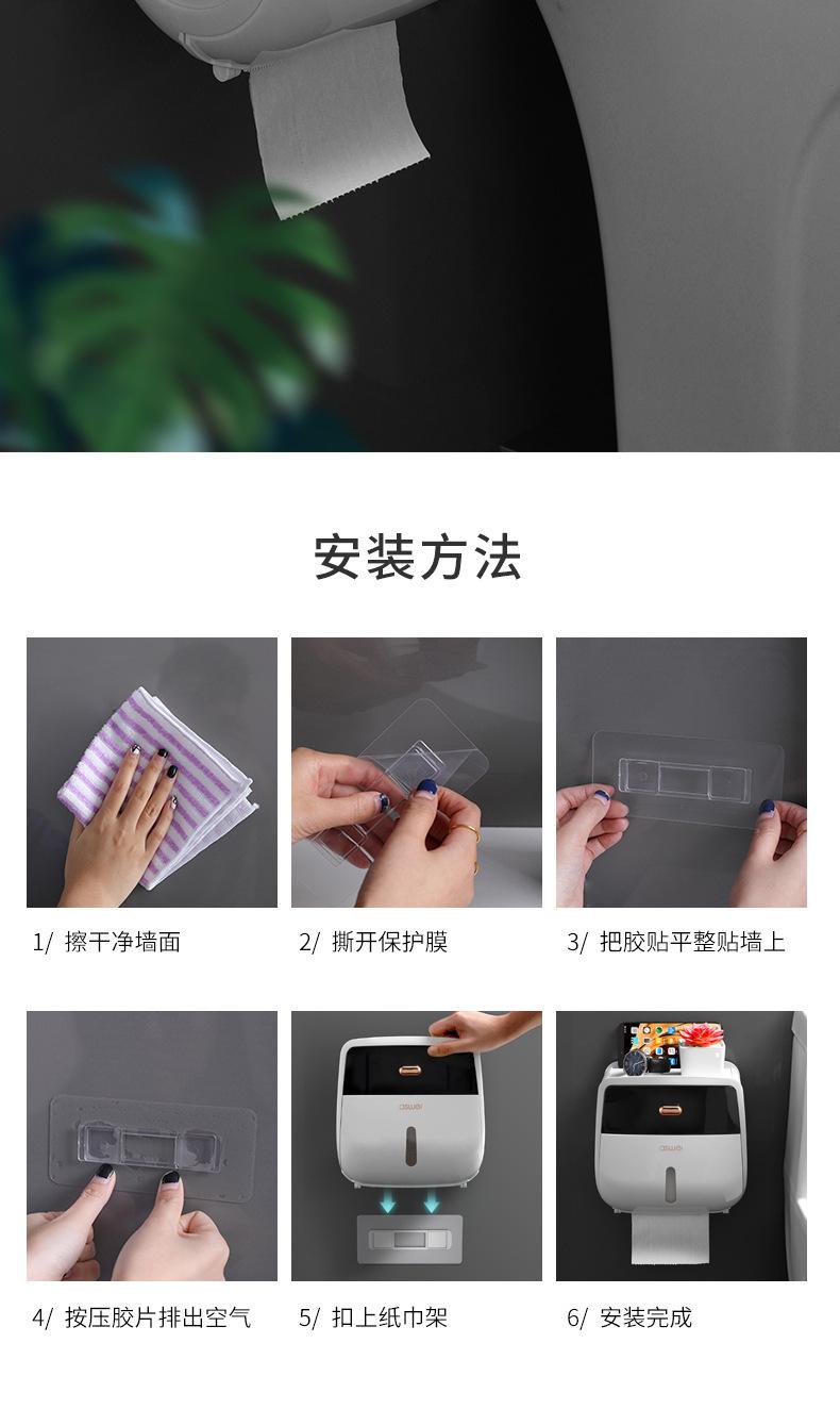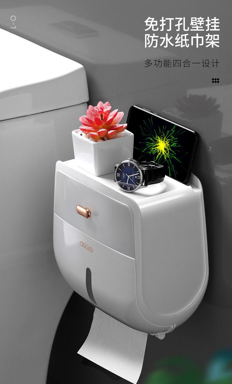 Caja de Pañuelos de Baño Estante de Almacenamiento de Doble Capa para Baño Doméstico Creativo Impermeable Montado en la Pared Rollo de Papel Sin Perforaciones