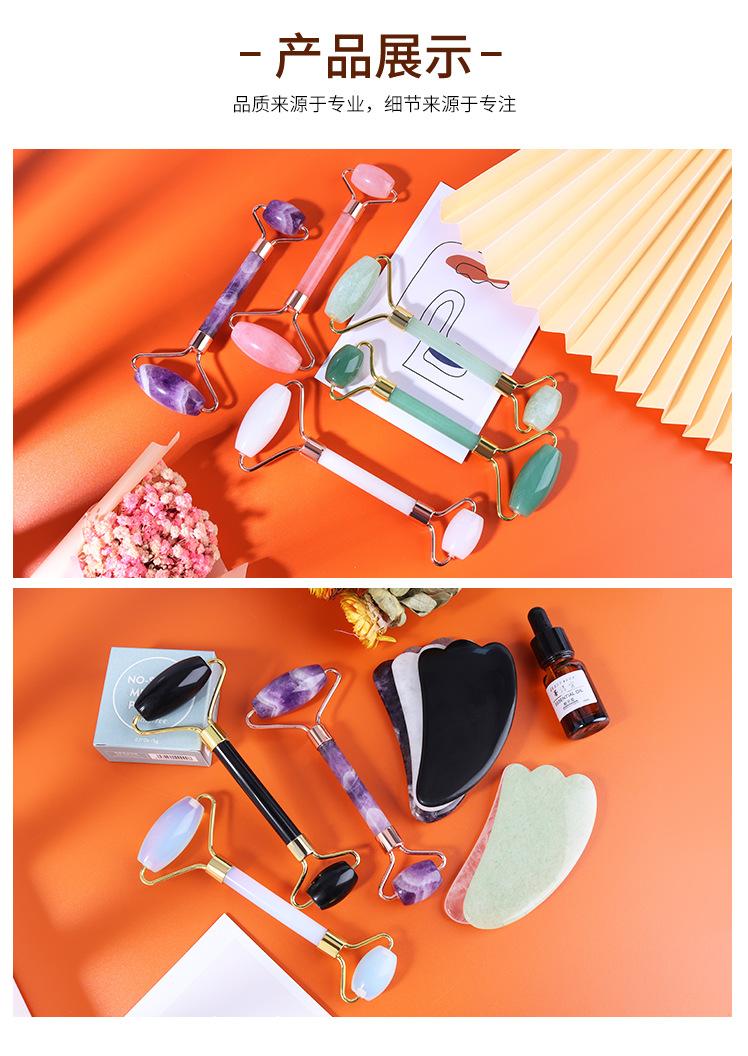 Rodillo de Jade Masaje Cuerno Set Gua Sha Barra de Belleza Cuarzo Rosa Masajeador de Meridianos Venta al por Mayor Cuidado de la Salud