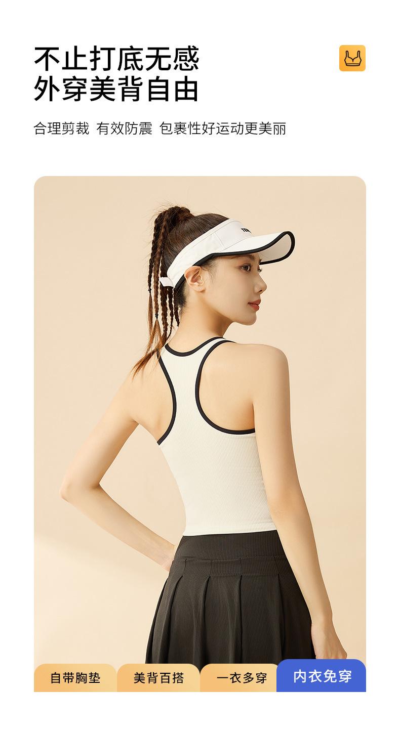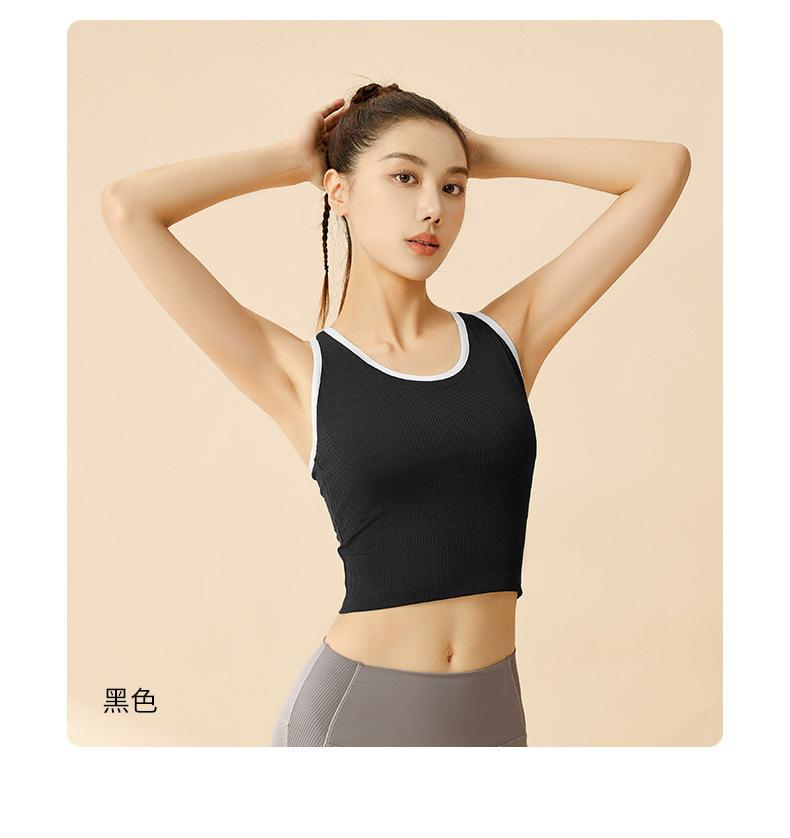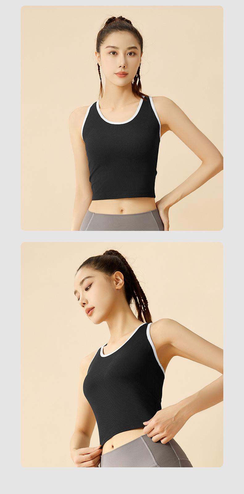 Chaleco deportivo a rayas con espalda en V, almohadilla para el pecho sin desgaste, color de contraste, informal, transpirable, para correr, entrenar y yoga, para verano.