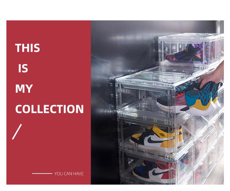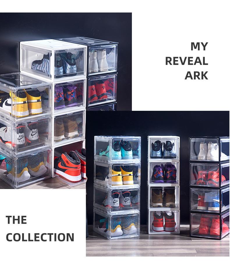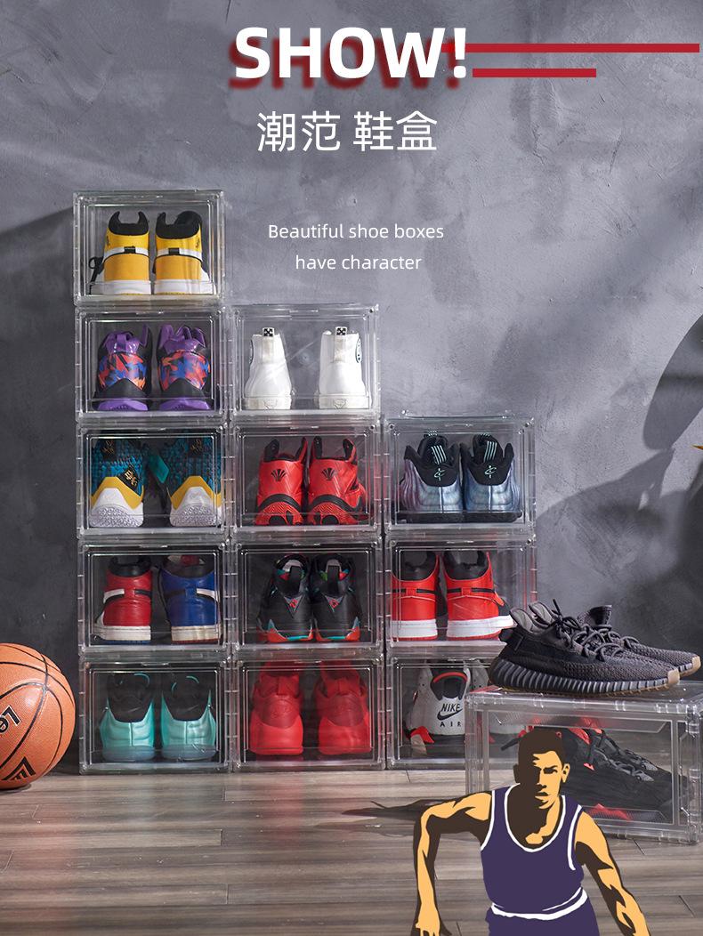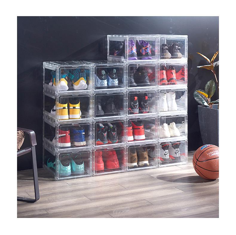 Caja de zapatos de plástico transparente, apilable, para pared, resistente al polvo y a la humedad.