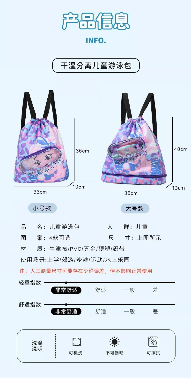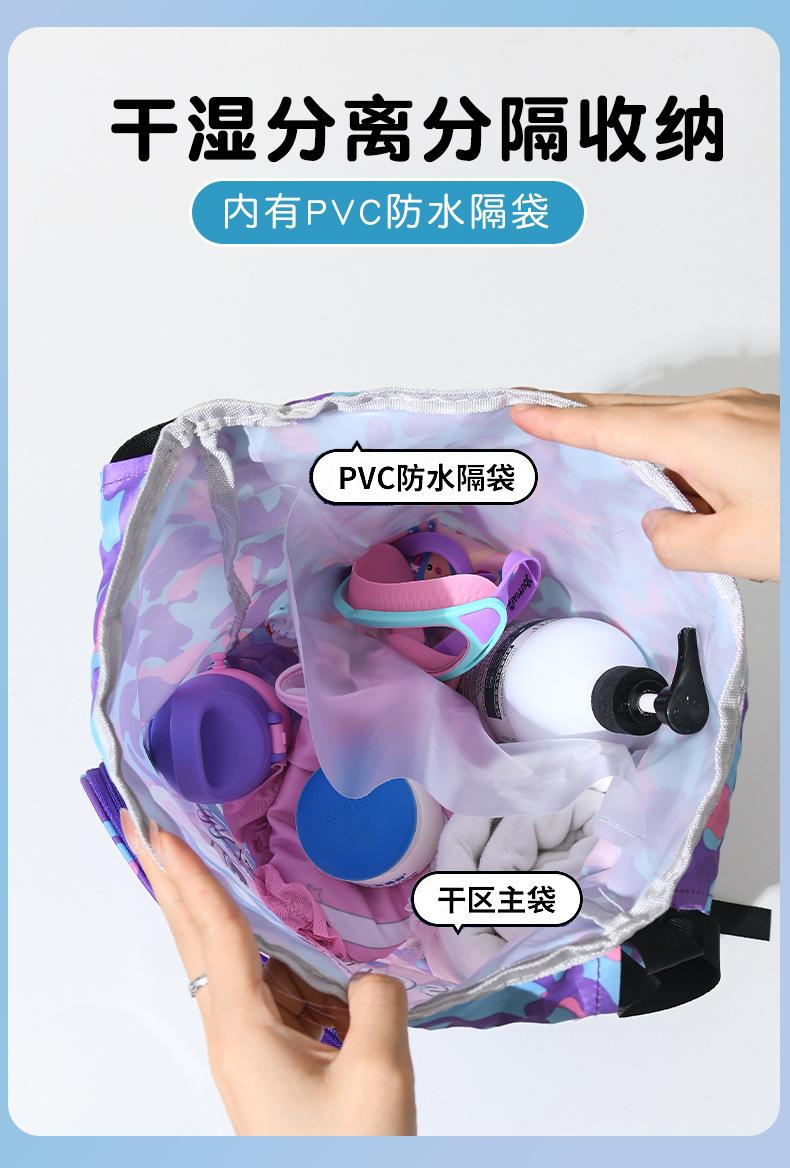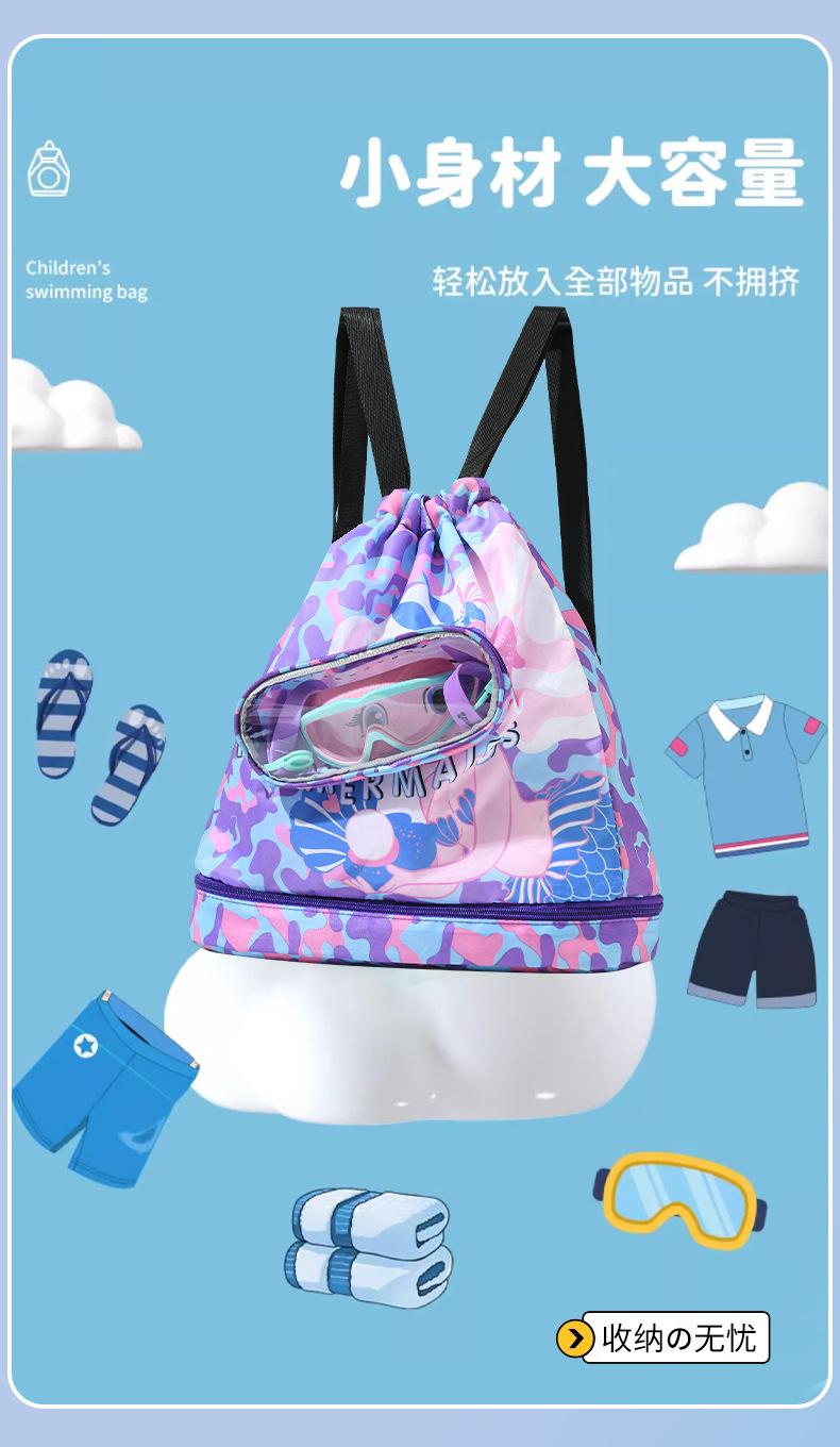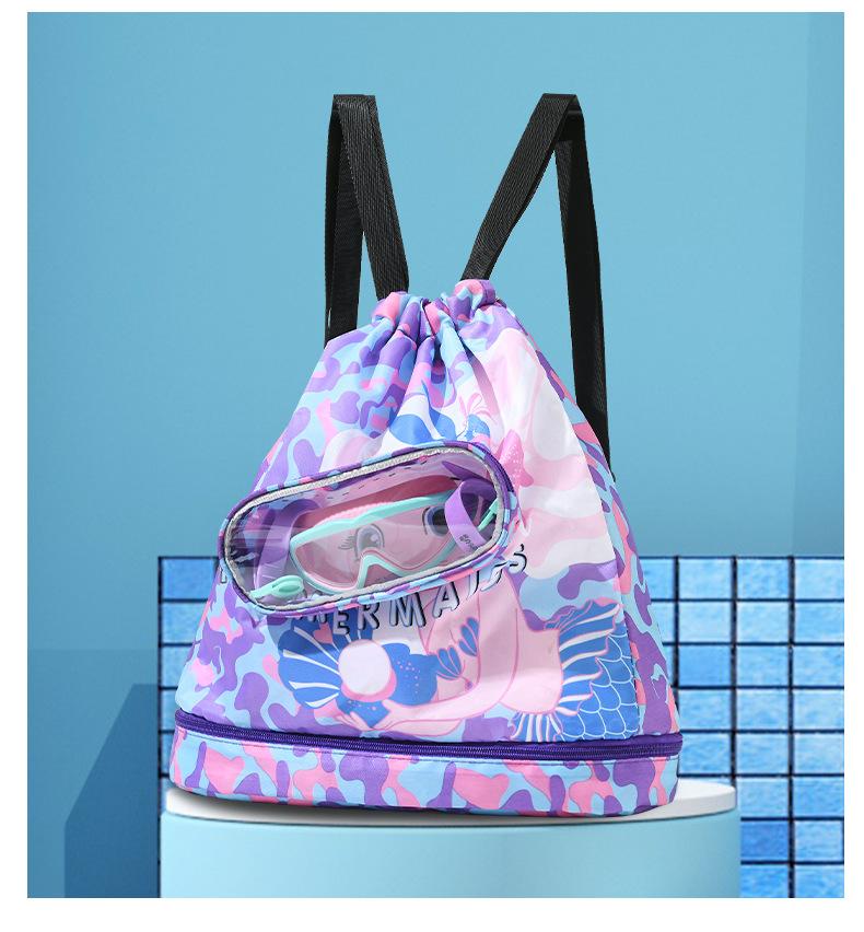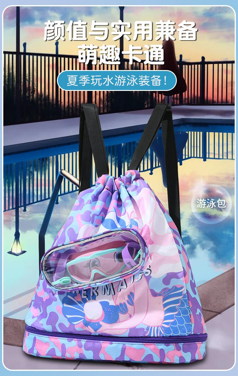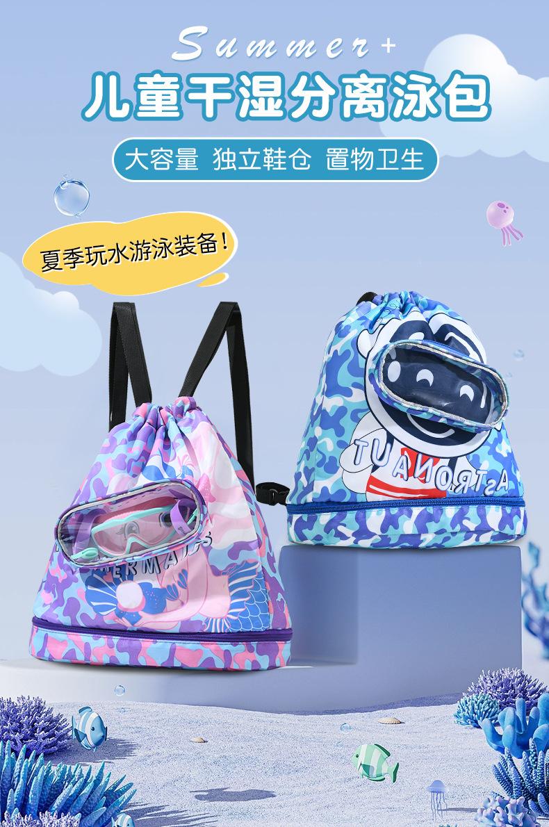 Nueva bolsa de natación para niños al por mayor, bolsa de almacenamiento impermeable, bolsa de playa, mochila de boca fruncida, bolsa de lavado separada para seco y húmedo