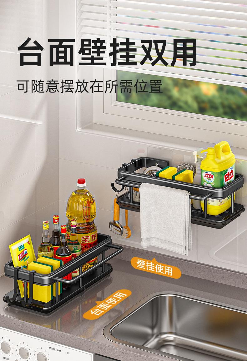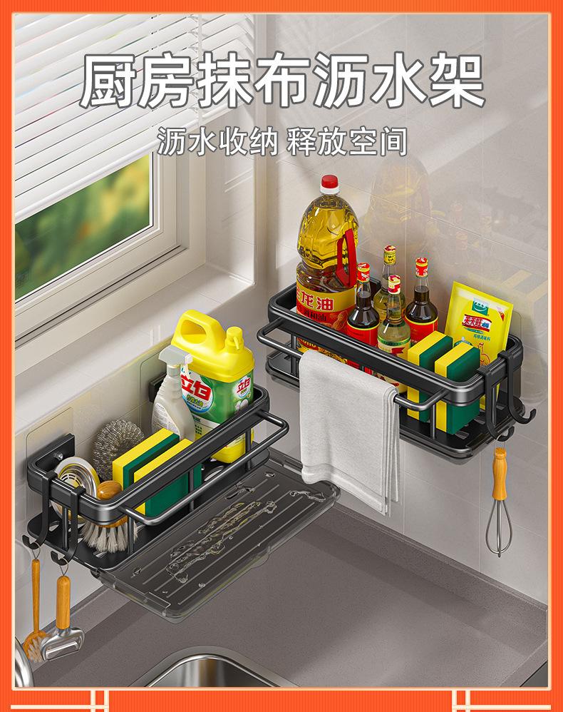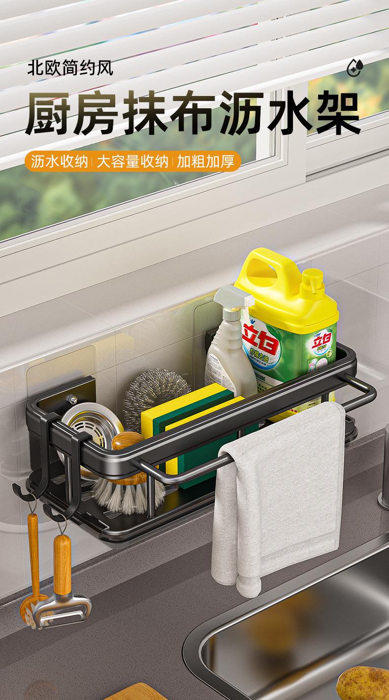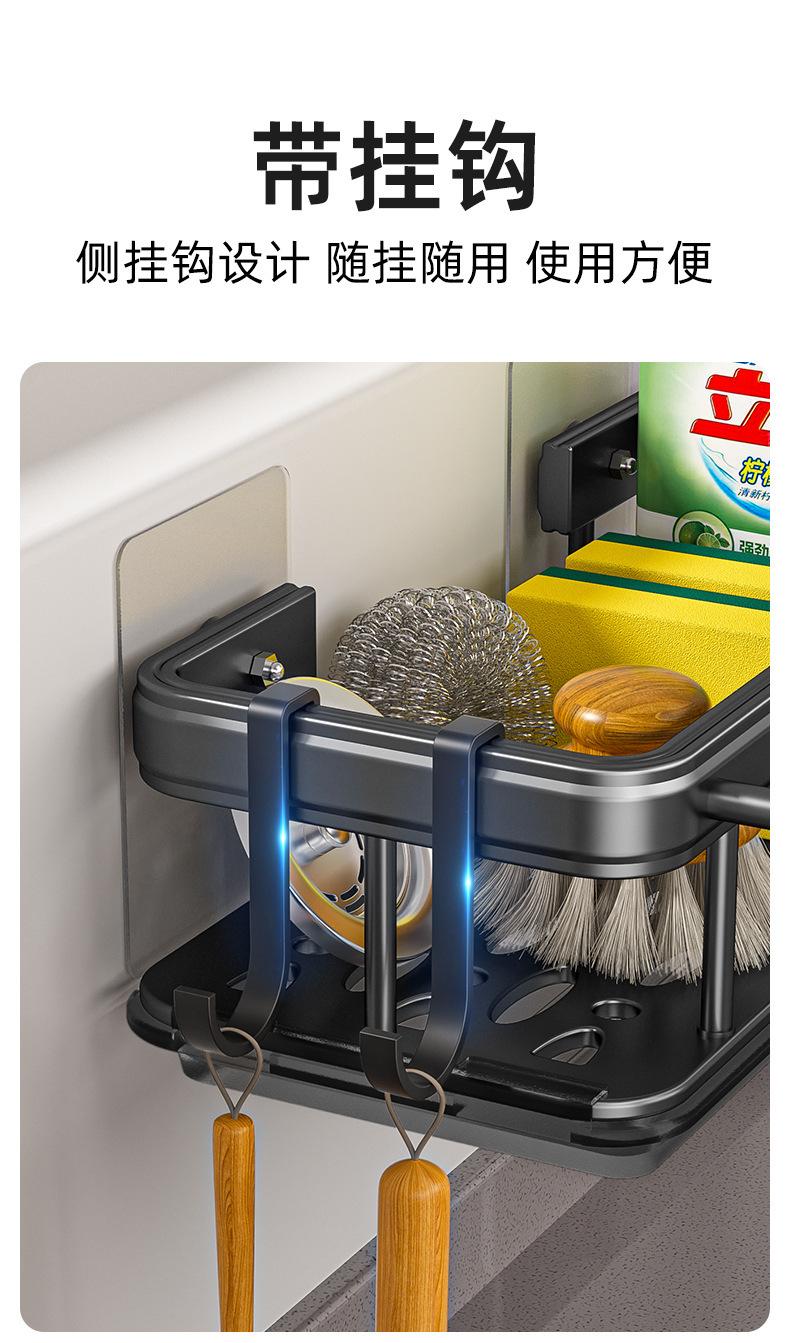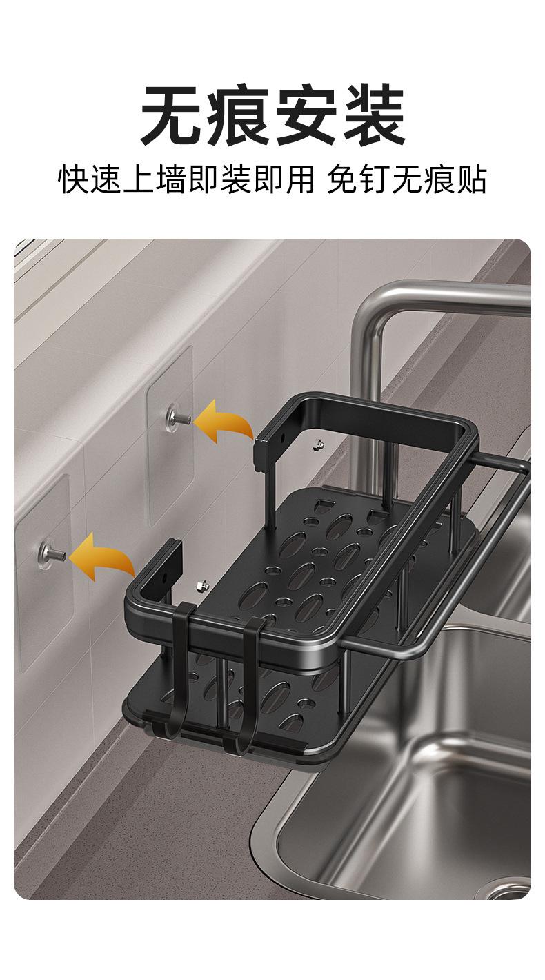 Estante para platos de cocina, sin perforaciones, para montaje en pared, multifuncional, para fregadero de drenaje doméstico, con gancho