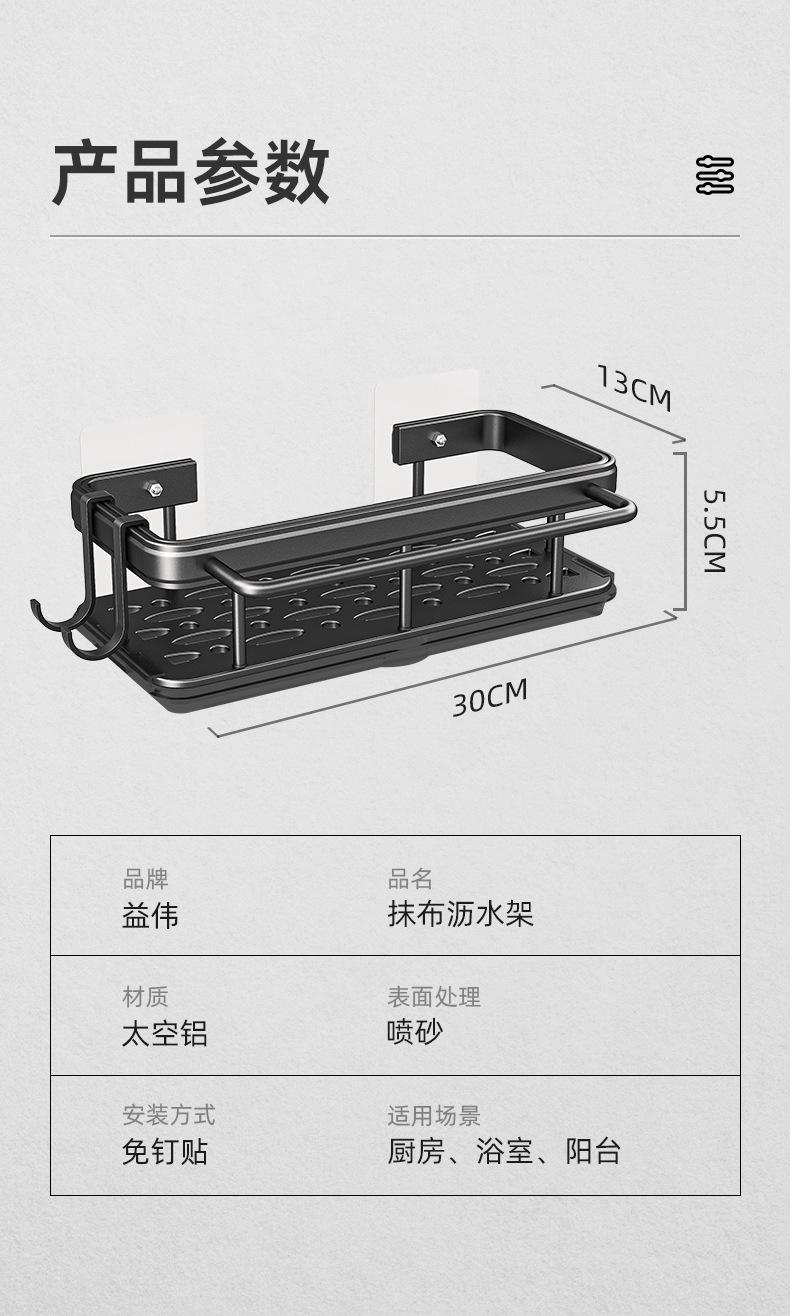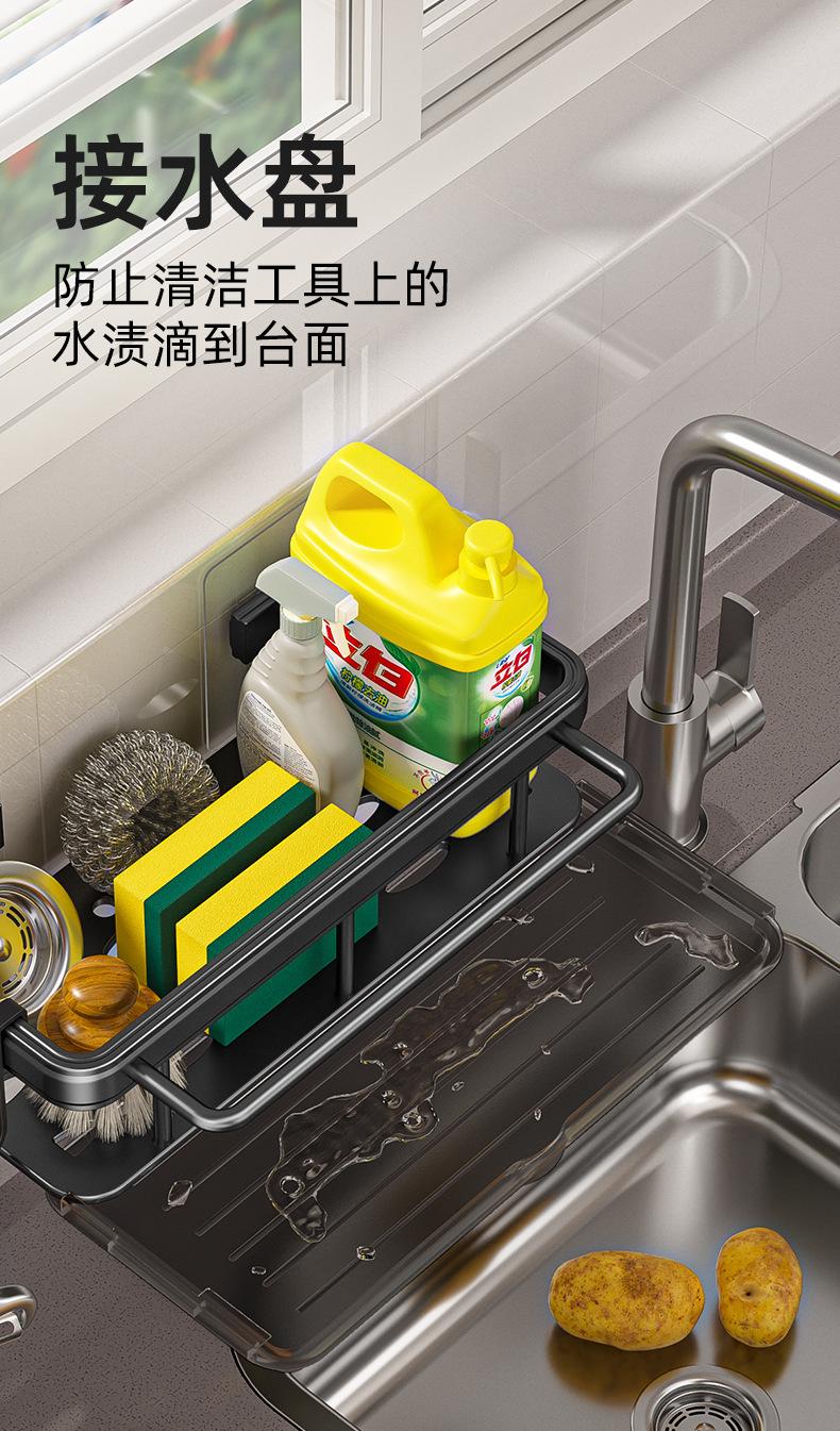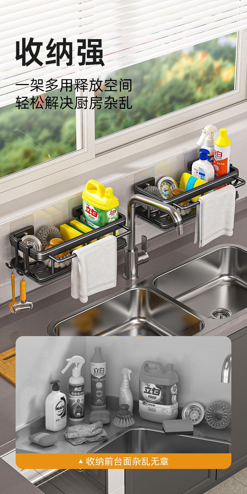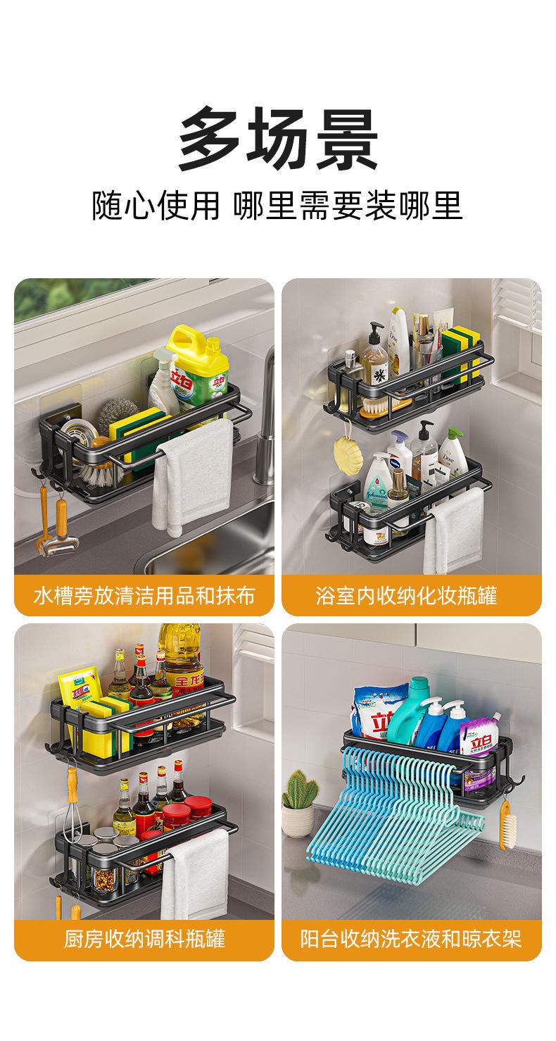 Estante para platos de cocina, sin perforaciones, para montaje en pared, multifuncional, para fregadero de drenaje doméstico, con gancho