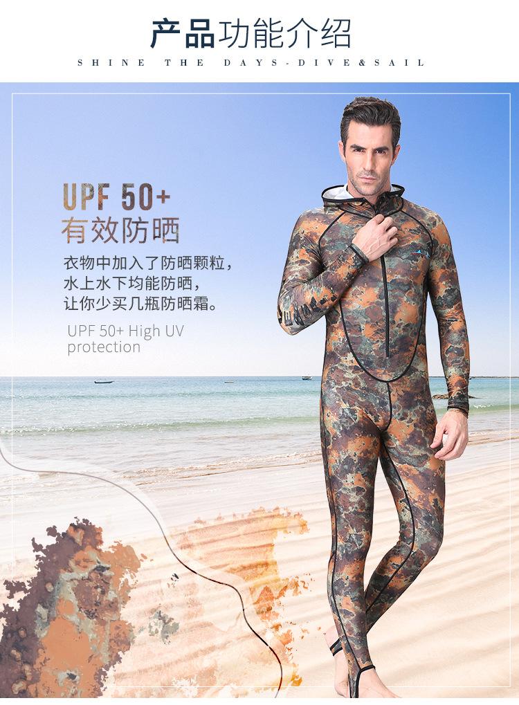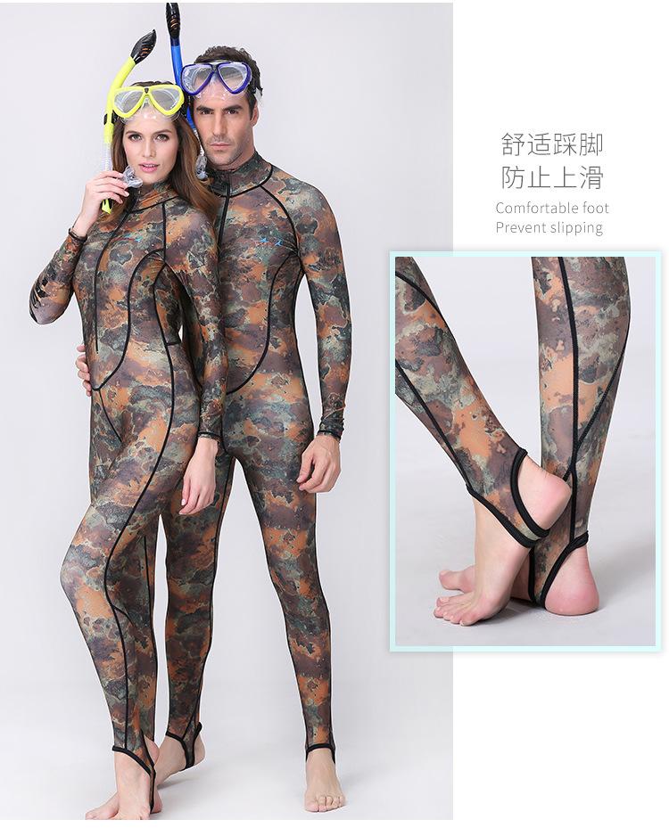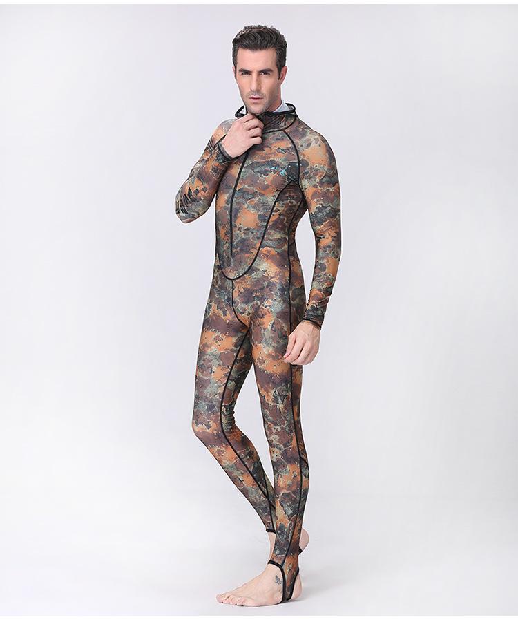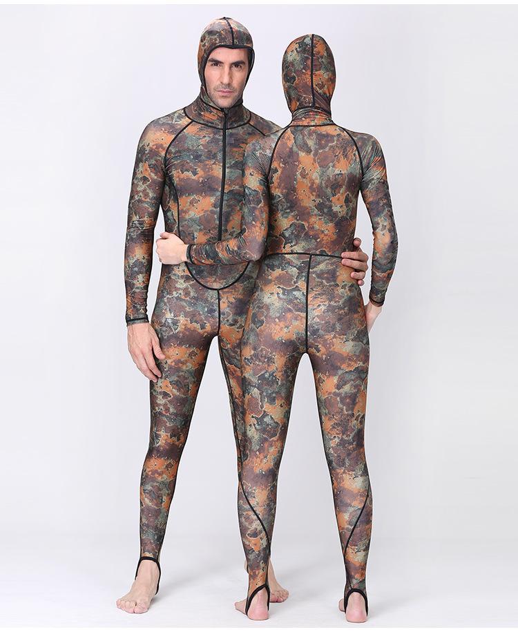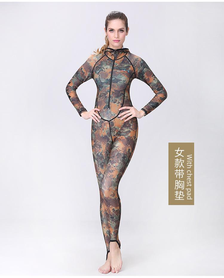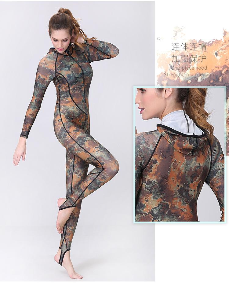 Traje de buceo de camuflaje nuevo al por mayor, traje de baño de una pieza para hombre, para hacer snorkel y surf, con protección solar, traje de baño con capucha y almohadilla para el pecho para mujer.