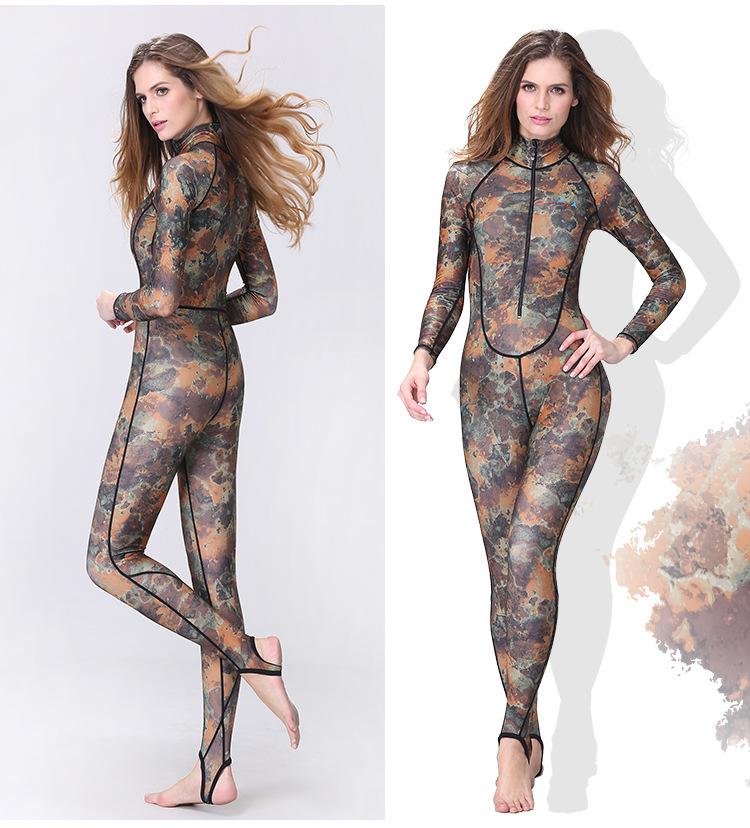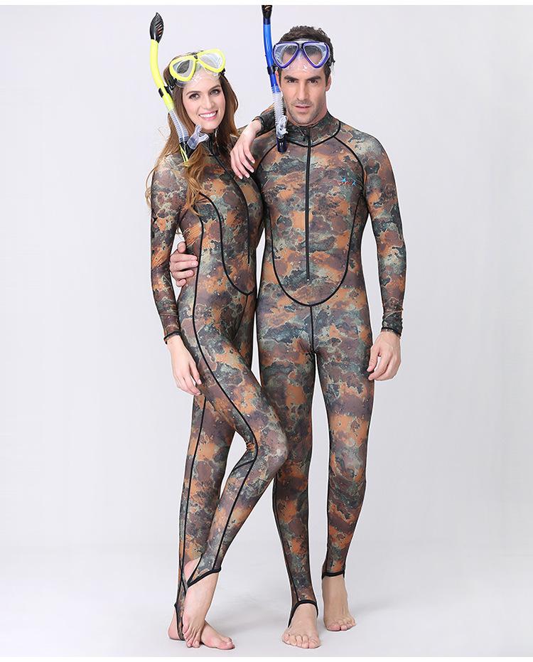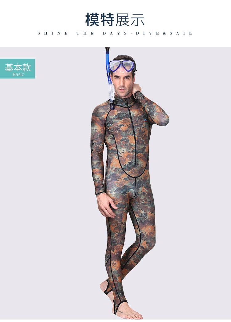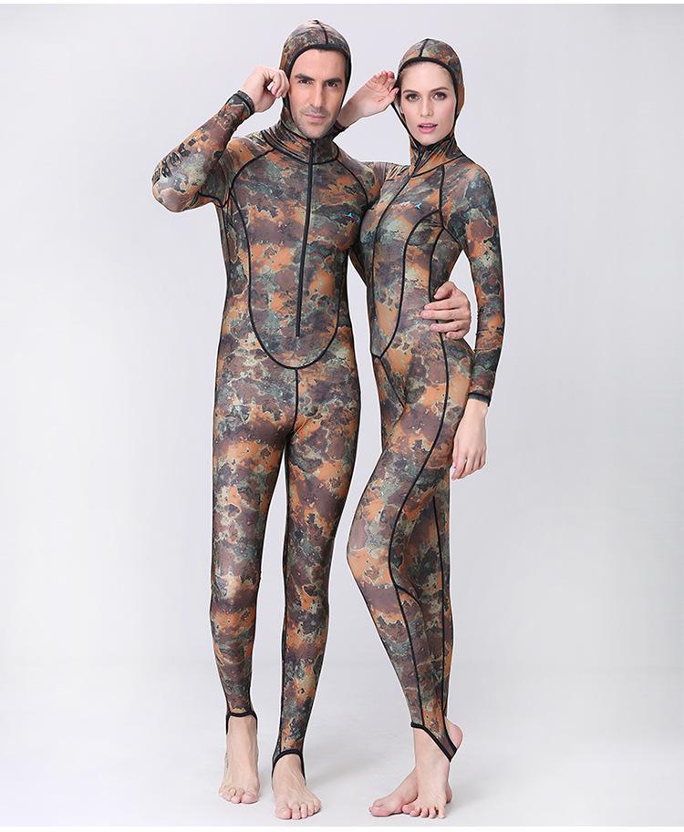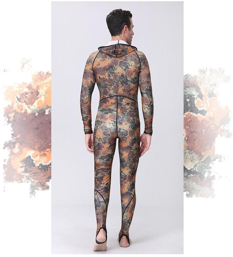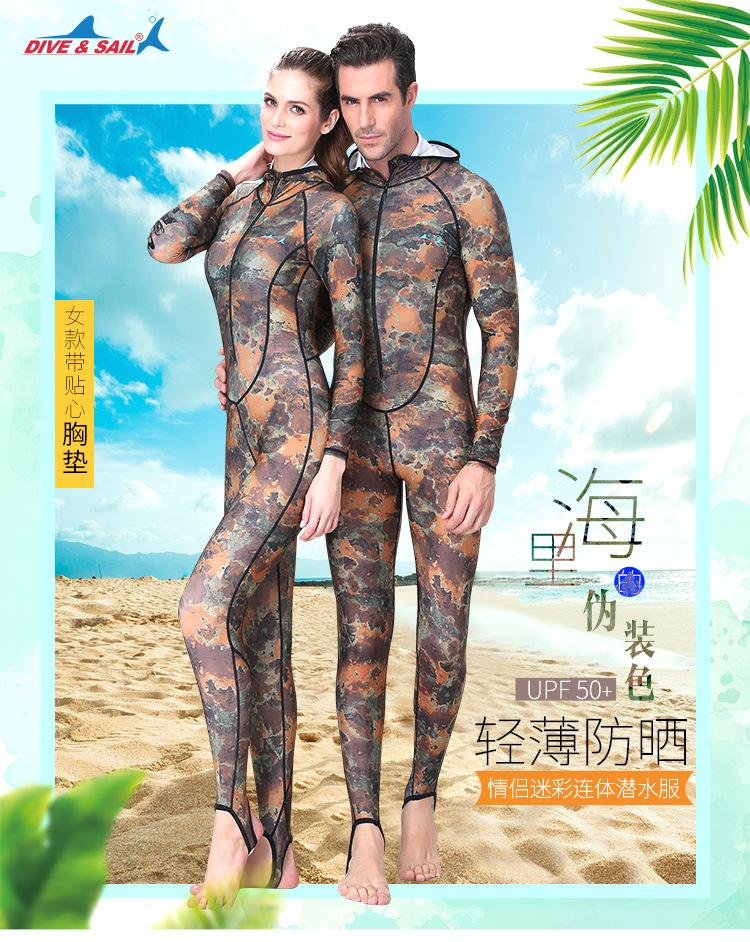 Traje de buceo de camuflaje nuevo al por mayor, traje de baño de una pieza para hombre, para hacer snorkel y surf, con protección solar, traje de baño con capucha y almohadilla para el pecho para mujer.