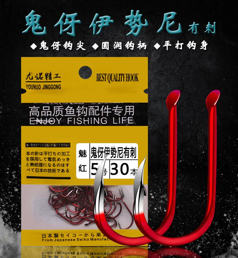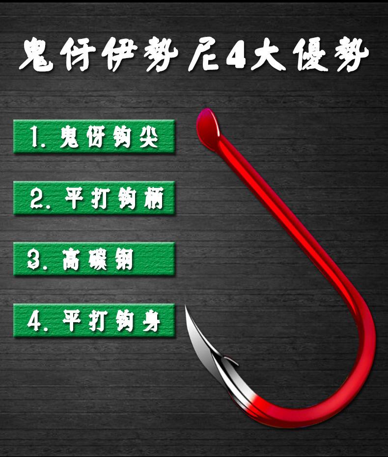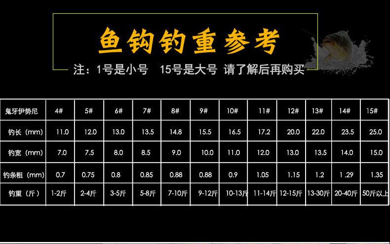 Los anzuelos vienen en diferentes tamaños, formas y grosores. El grosor del anzuelo está relacionado con su tamaño. Normalmente, el tamaño del anzuelo es proporcional a su grosor; es decir, cuanto mayor sea el tamaño, más grueso será y mayor será su resistencia a la tracción. Por el contrario, cuanto menor sea el tamaño del anzuelo, más delgado será y menor será su resistencia a la tracción. Sin embargo, no todos los anzuelos pequeños son delgados y tienen poca resistencia. Sabemos que la fuerza de tracción depende principalmente del material del anzuelo. Cuanto mejor sea la calidad del alambre de acero, mayor será la resistencia a la tracción. Además, un ángulo razonable y científico del anzuelo también puede mejorar su resistencia a la tracción. Tomemos como ejemplo el anzuelo Ise-ni. El grosor de la punta del anzuelo es diferente, lo que hace que el anzuelo grueso y el delgado tengan funciones diferentes. Los anzuelos gruesos se utilizan principalmente para capturar peces más grandes. Por ejemplo, los peces carnívoros feroces como la carpa negra, la carpa herbívora, la carpa común, la carpa plateada y la carpa cabezona en agua dulce, o el besugo negro y el besugo rojo en agua salada, tienden a ser agresivos y poderosos. Si se pescan con anzuelos delgados, es fácil que se enderecen, se rompan y el pez escape. El carpín y el pargo son cautelosos al alimentarse, son pequeños, se resisten poco y tienen bocas pequeñas. El uso de anzuelos delgados puede ser eficaz. Las ventajas de los anzuelos delgados son su buena ocultación, su gran capacidad de perforación y su pequeño tamaño. Pueden usarse para capturar peces astutos en estanques con resultados ideales. Las ventajas de los anzuelos gruesos son su alta resistencia a la tracción y su dificultad para soltarlos después de capturar el pez. La desventaja es su baja capacidad de perforación, lo que puede provocar que los peces se vuelvan cautelosos y afectar la tasa de picadura. No son adecuados para pescar peces más pequeños.