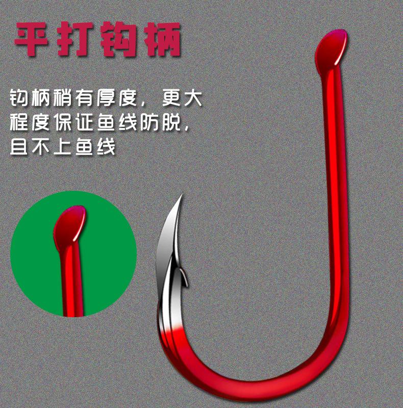 Manga: Este tipo de anzuelo no tiene púas. La punta es afilada, el mango es largo, el anzuelo es delgado y el cuerpo es ligero. Es adecuado para peces pequeños que se alimentan por succión. Es rápido de atrapar y de morder. Se utiliza principalmente para capturar carpas blancas, pequeños peces blancos, etc.