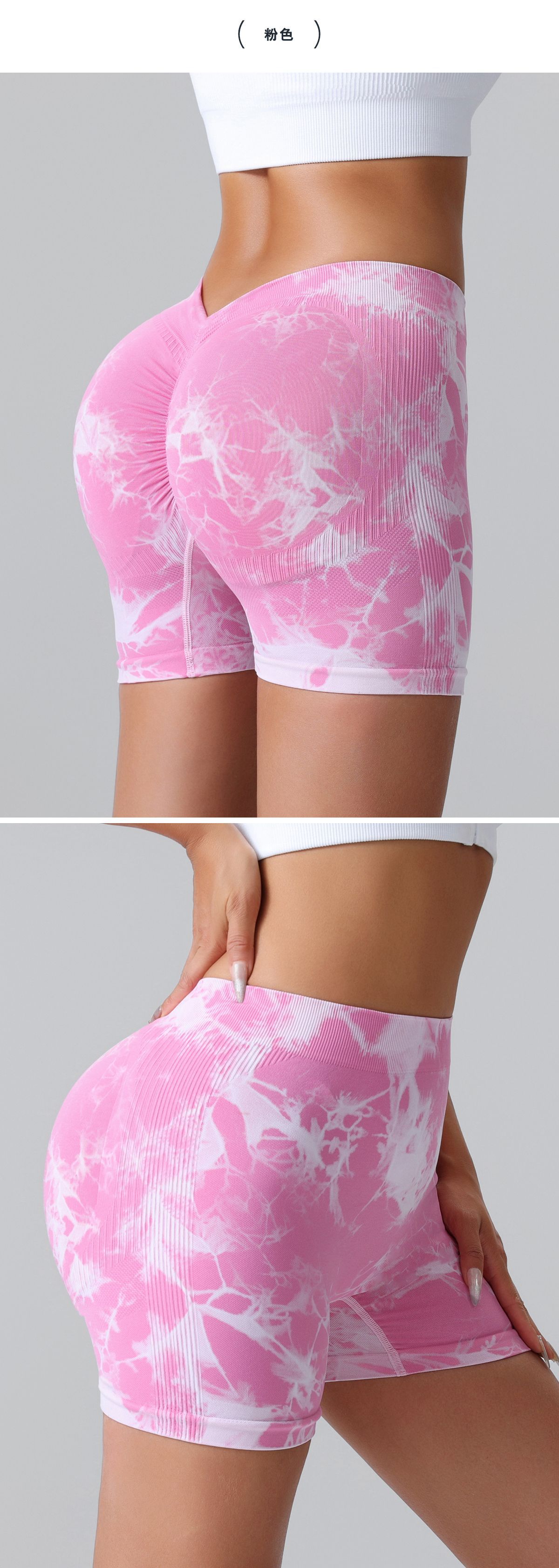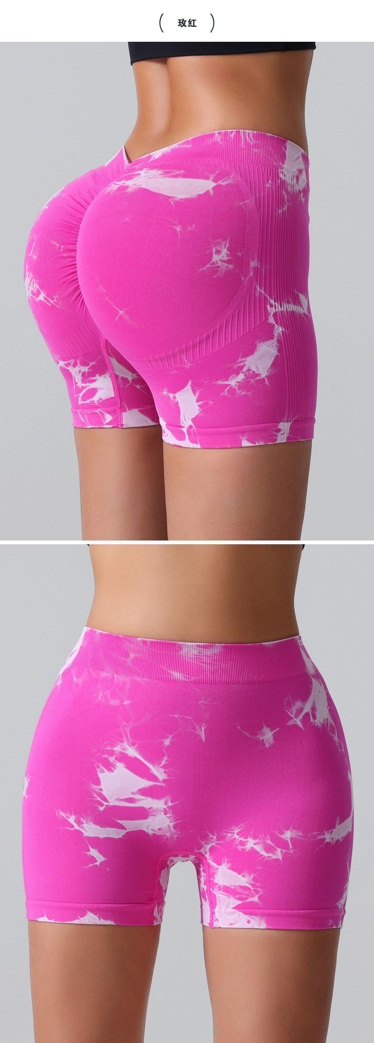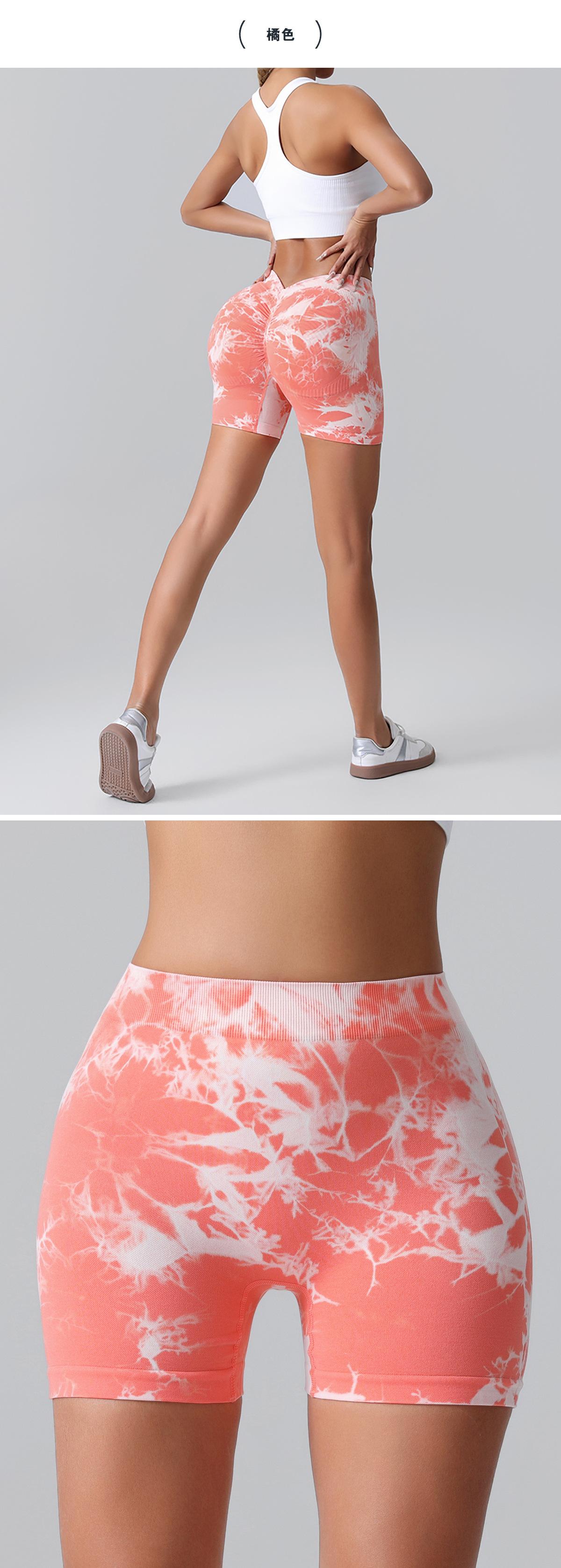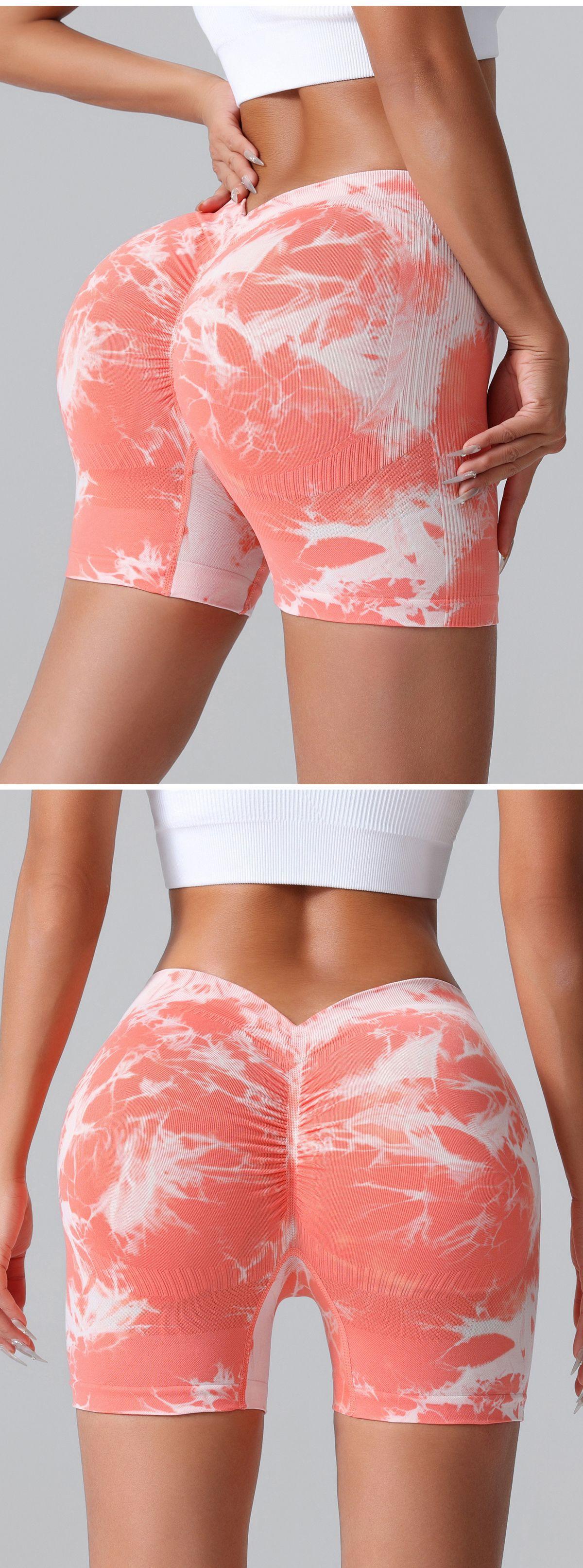 Pantalones deportivos ajustados de cintura alta con efecto tie-dye, pantalones de yoga de color melocotón, pantalones cortos secos para mujer