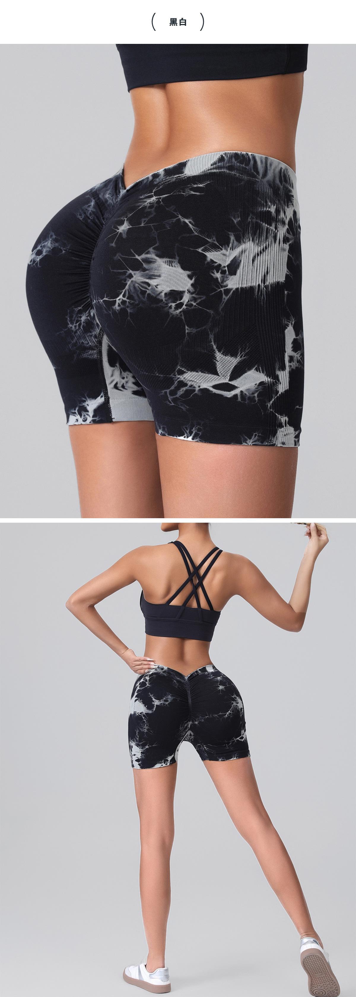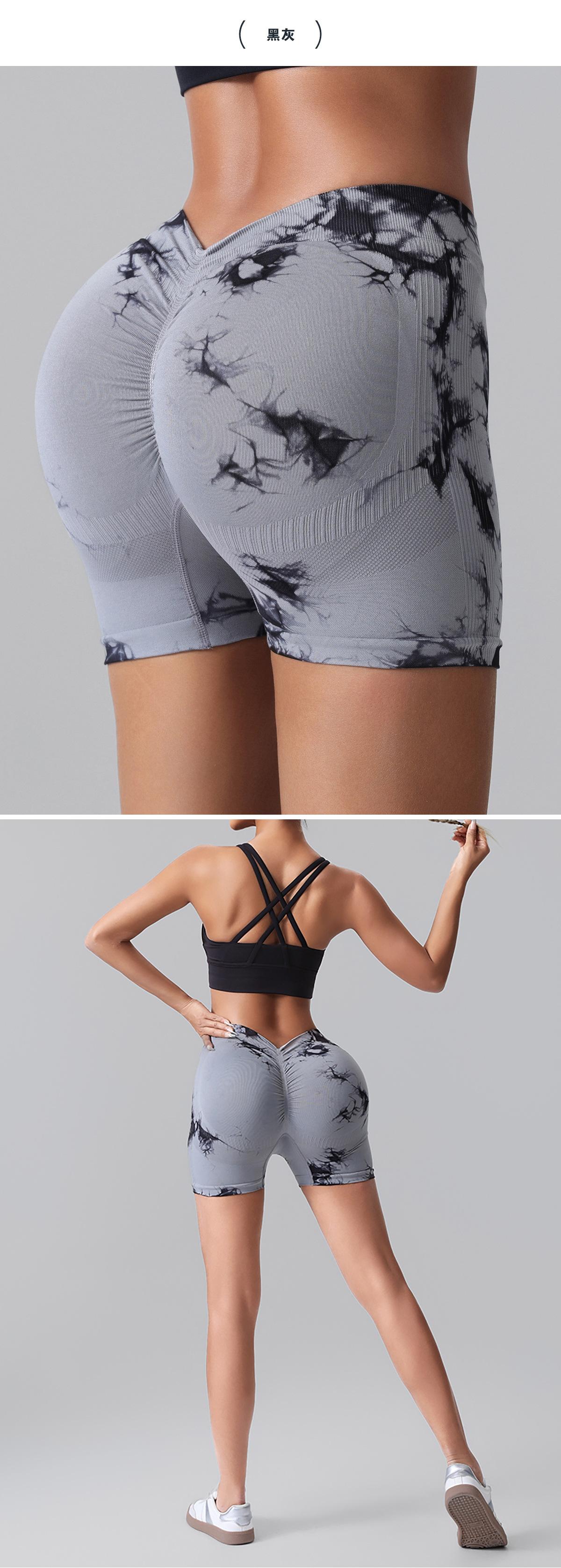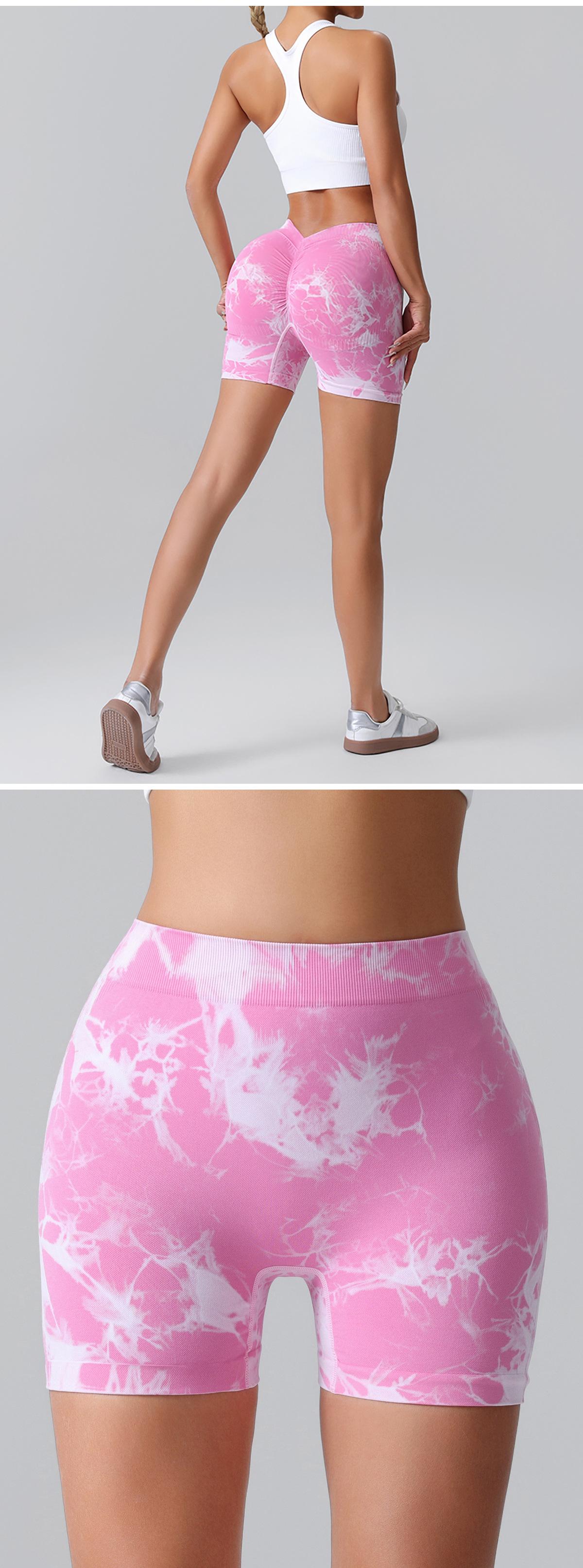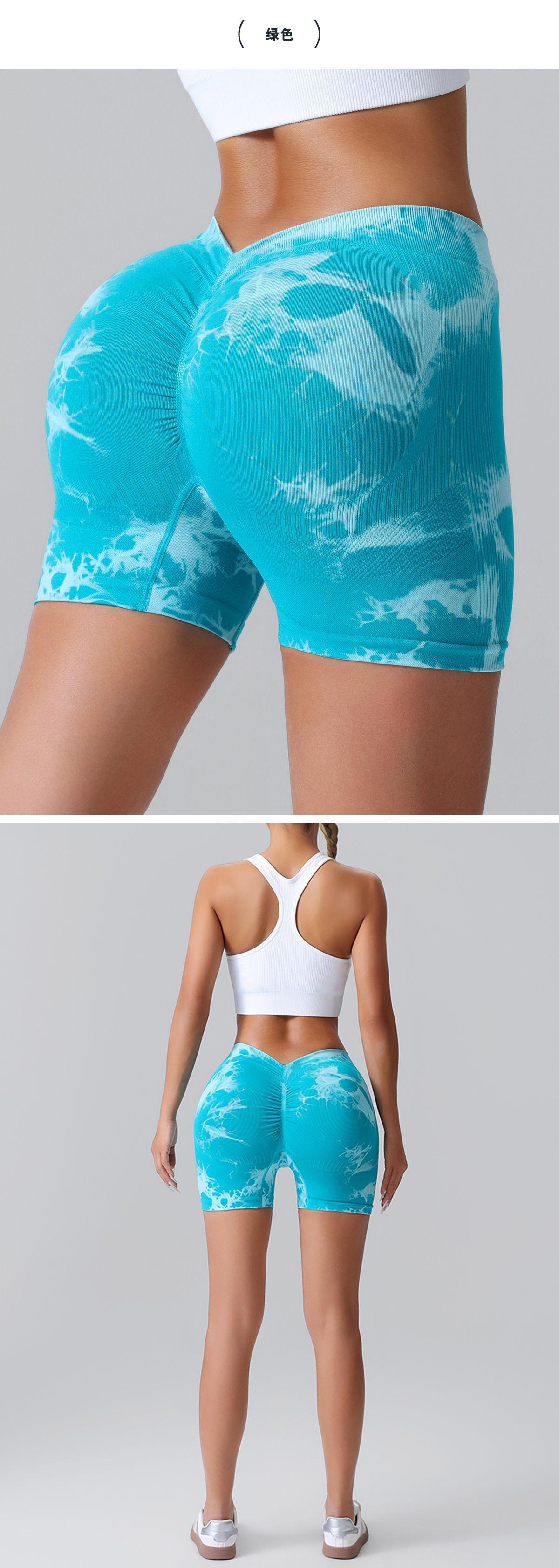 Pantalones deportivos ajustados de cintura alta con efecto tie-dye, pantalones de yoga de color melocotón, pantalones cortos secos para mujer