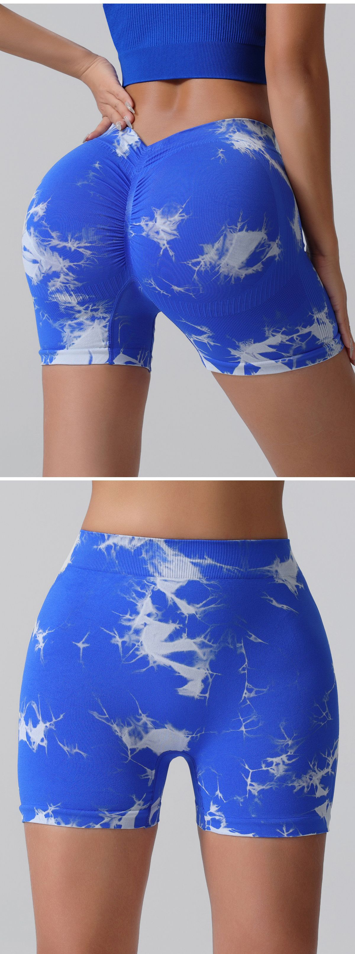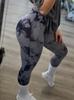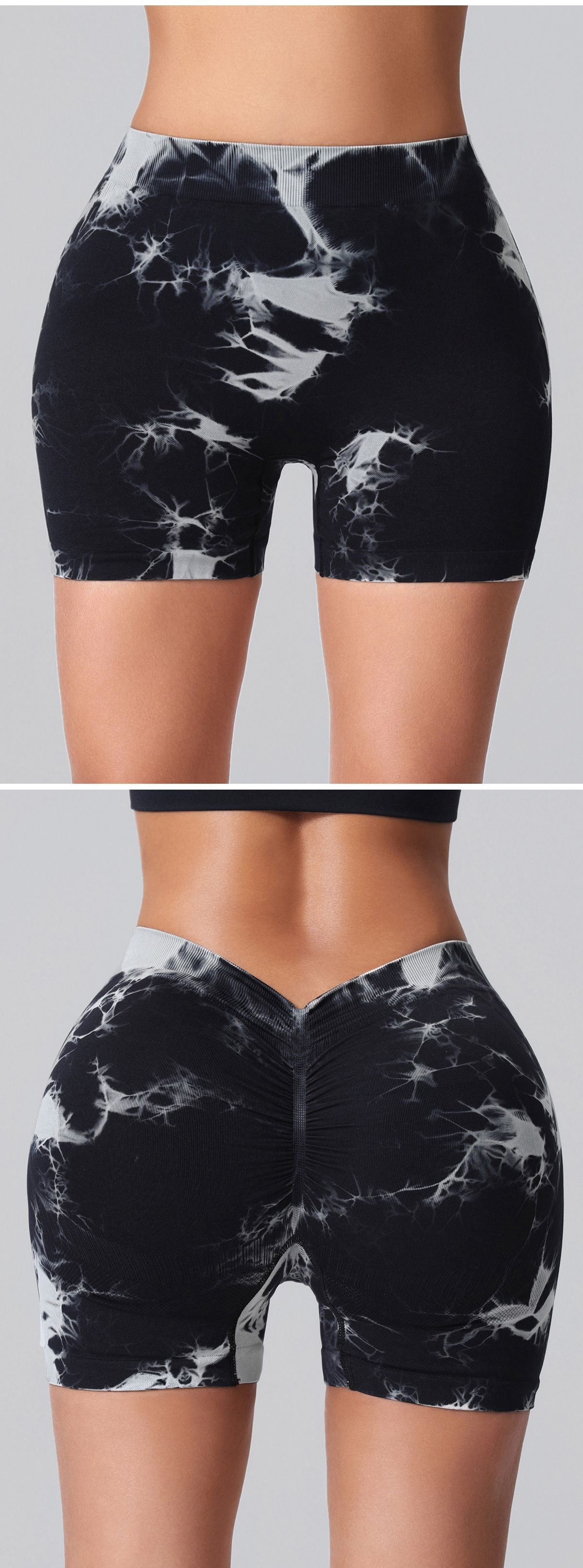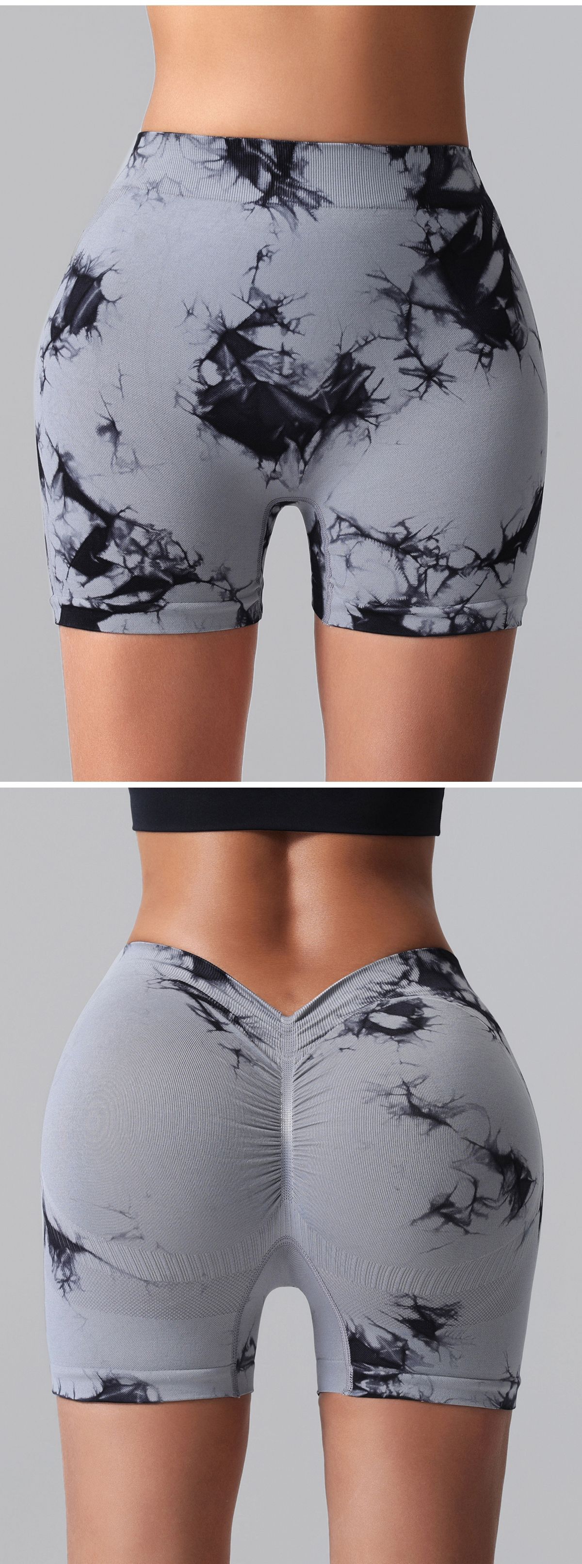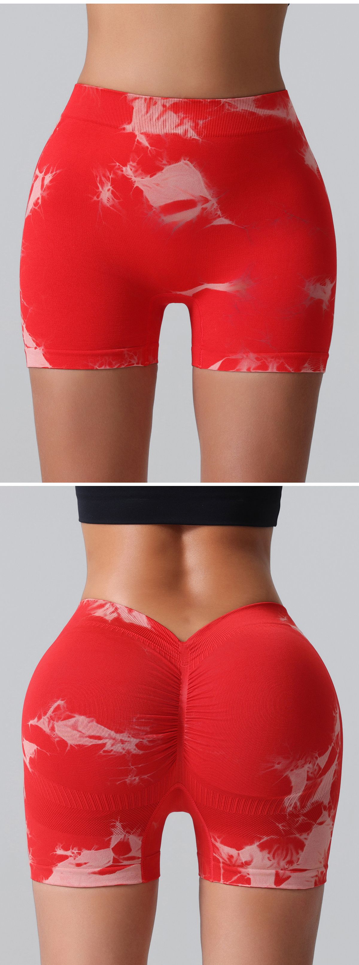 Pantalones deportivos ajustados de cintura alta con efecto tie-dye, pantalones de yoga de color melocotón, pantalones cortos secos para mujer