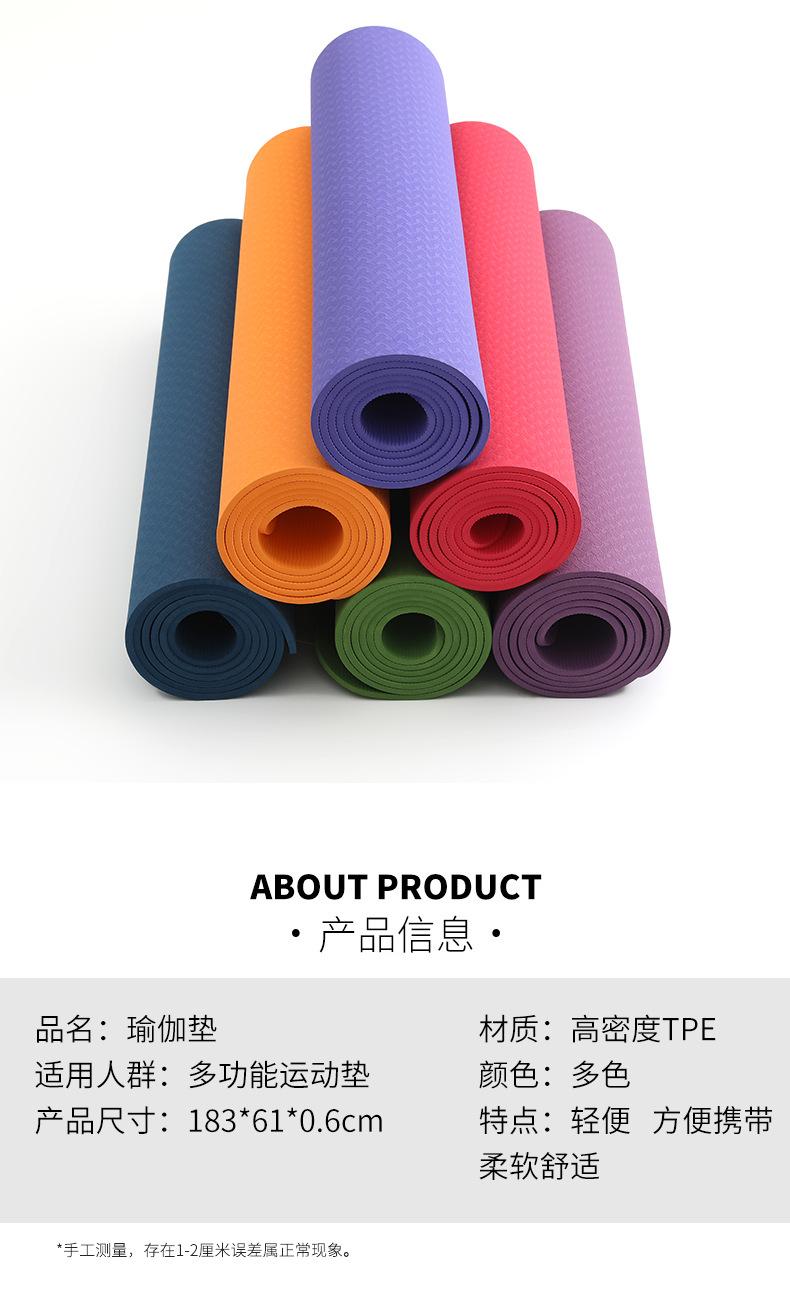 Esterilla de yoga TPE monocromática para principiantes, 6 mm, soporte plano, venta al por mayor, Dasheng