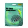 El centro de la cuerda está hecho de material multifilamento elástico fino comprimido, la capa exterior está tejida cruzada con múltiples fibras especiales de monofilamento plano, y la capa más externa está cubierta con resina de alta elasticidad tratada con nano, lo que tiene una durabilidad y elasticidad súper altas, y produce un sonido nítido al golpear la bola.