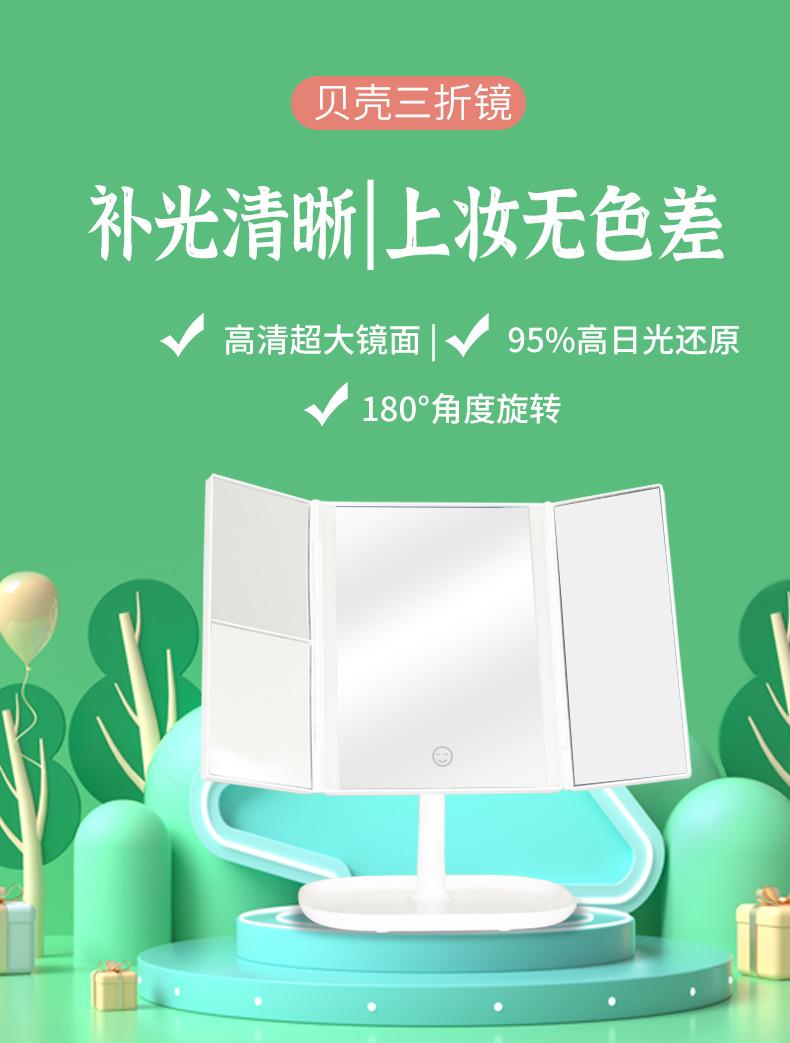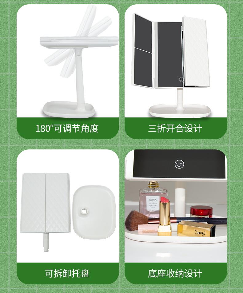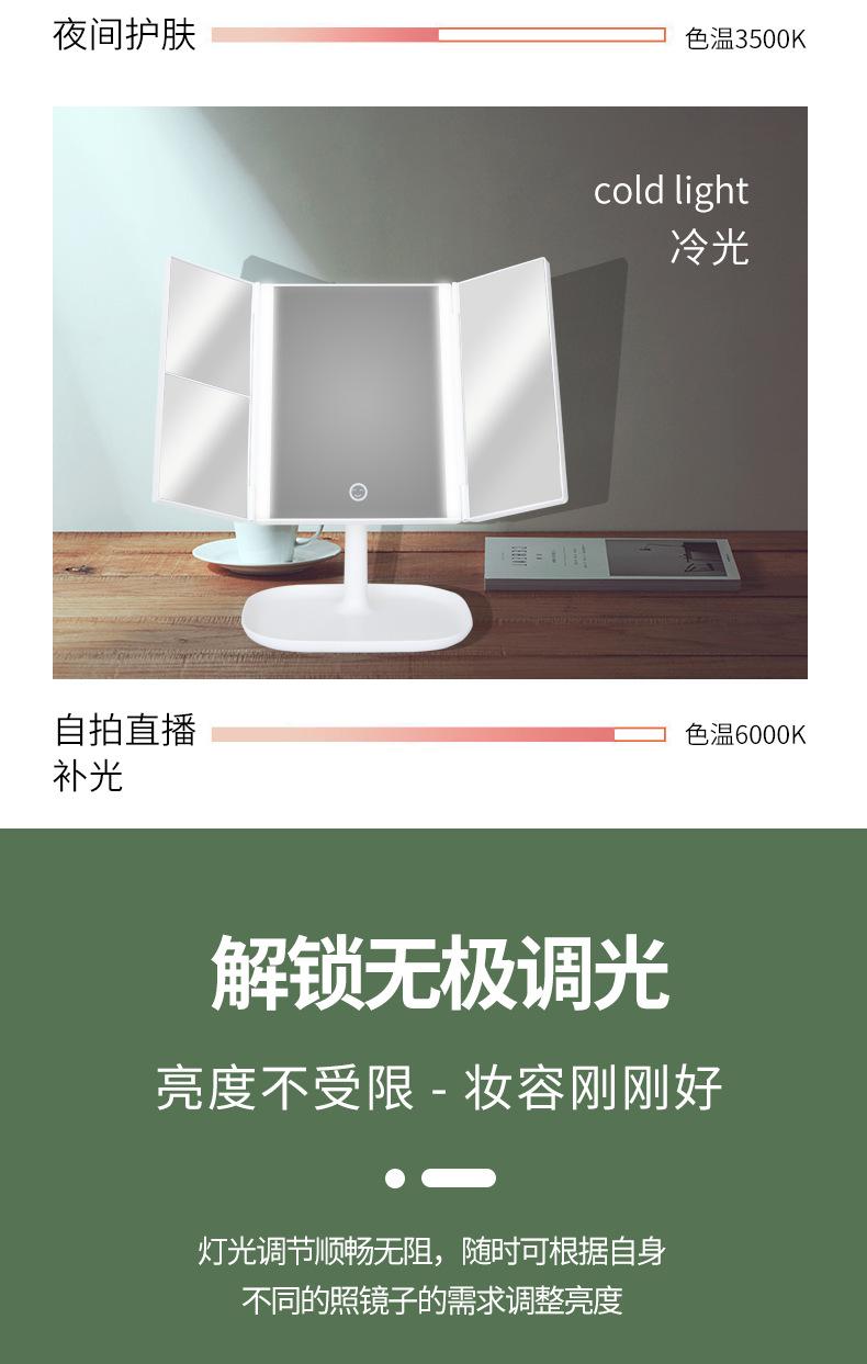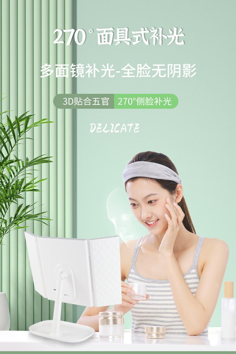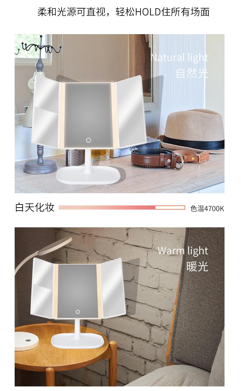 Espejo de Maquillaje LED con Luz, Recargable, Espejo de Tocador de Escritorio, Luz de Relleno para Dormitorio, Espejo de Belleza Plegable, Atenuable para Estudiantes