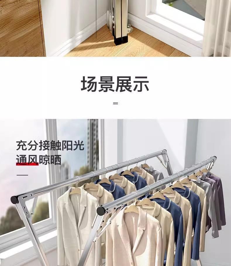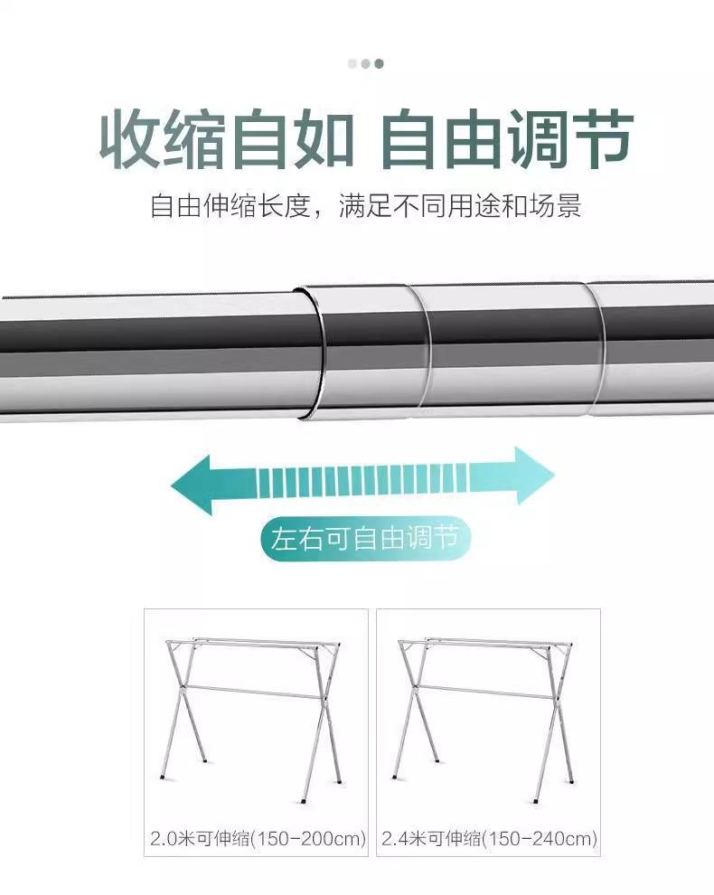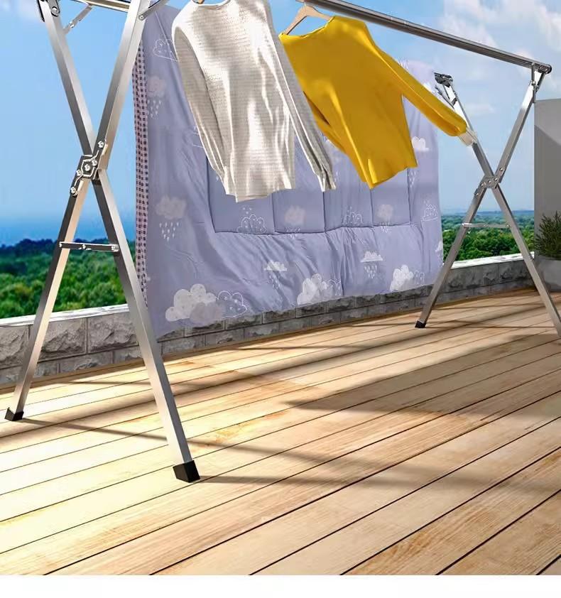 Tendedero de suelo de acero inoxidable, sencillo, plegable, telescópico, para interiores, balcones y exteriores.