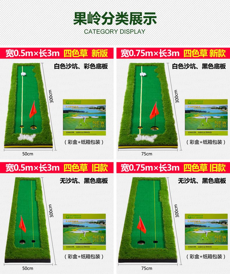 Two-color green 0.5*3 m + putter, Two-color green 0.75*3 m + putter, Four-color green 0.5*3 m + putter, Four-c...