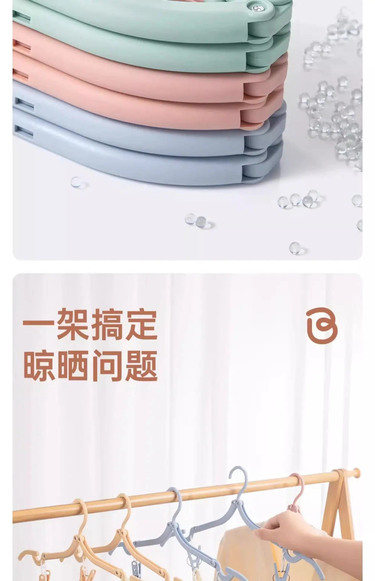 Nordic blue-folding clothes hanger without clip [5 pieces], Nordic blue-folding clothes hanger with clip [5 pi...