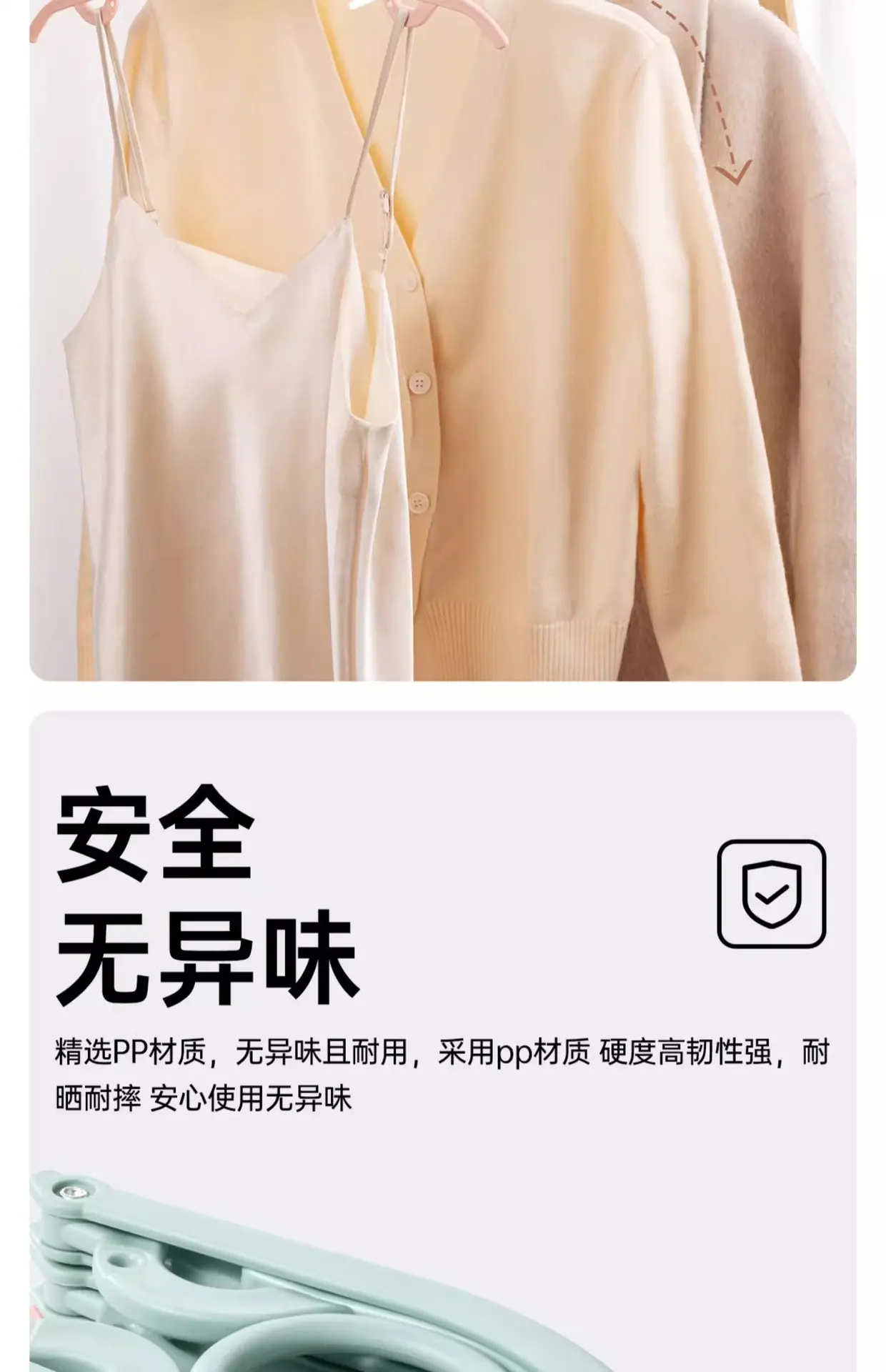 Matcha green-folding clothes hanger with clip [5 pieces]