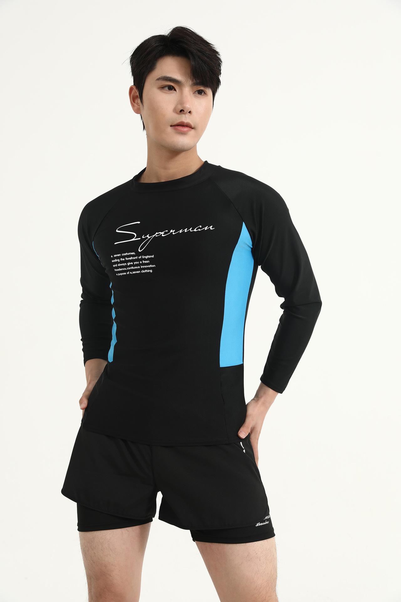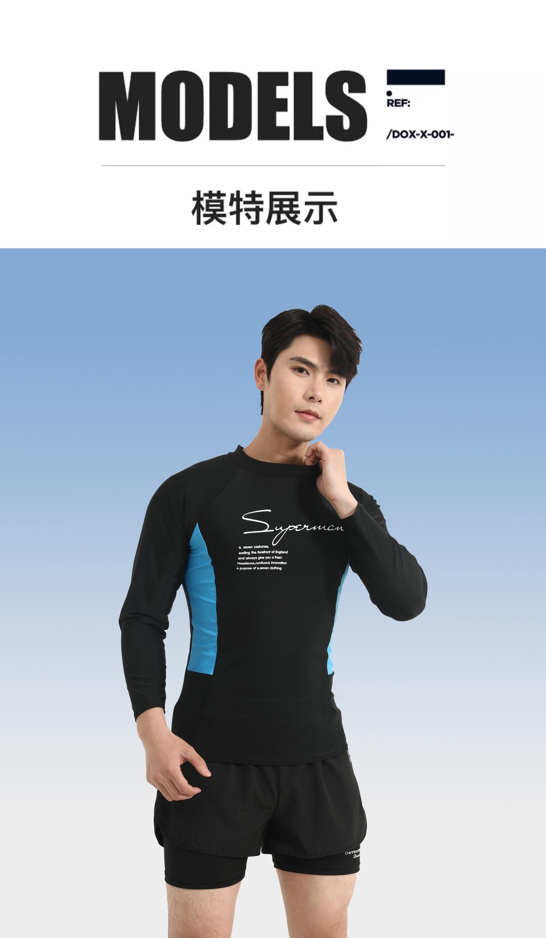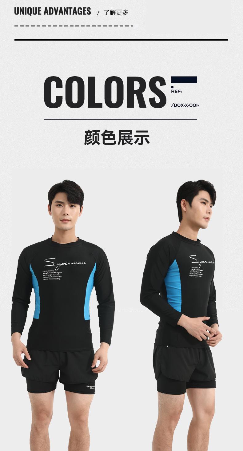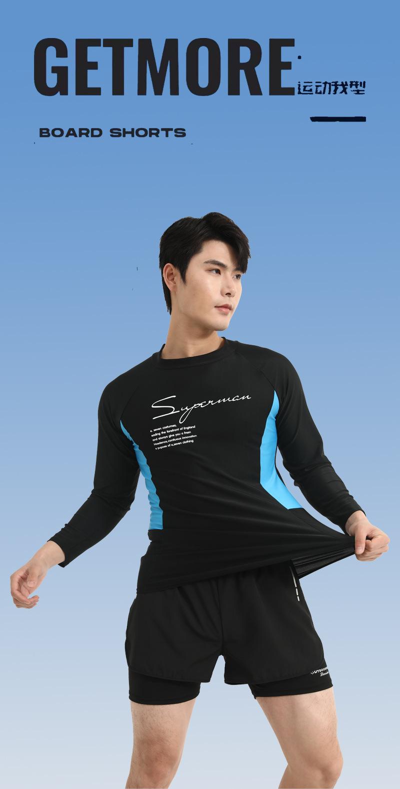 Traje de Baño para Hombre con Bloques de Color Traje Dividido de Manga Larga Protección Solar Talla Grande para Adulto Traje de Baño Pantalones Cortos de Doble Capa Antiembarazo