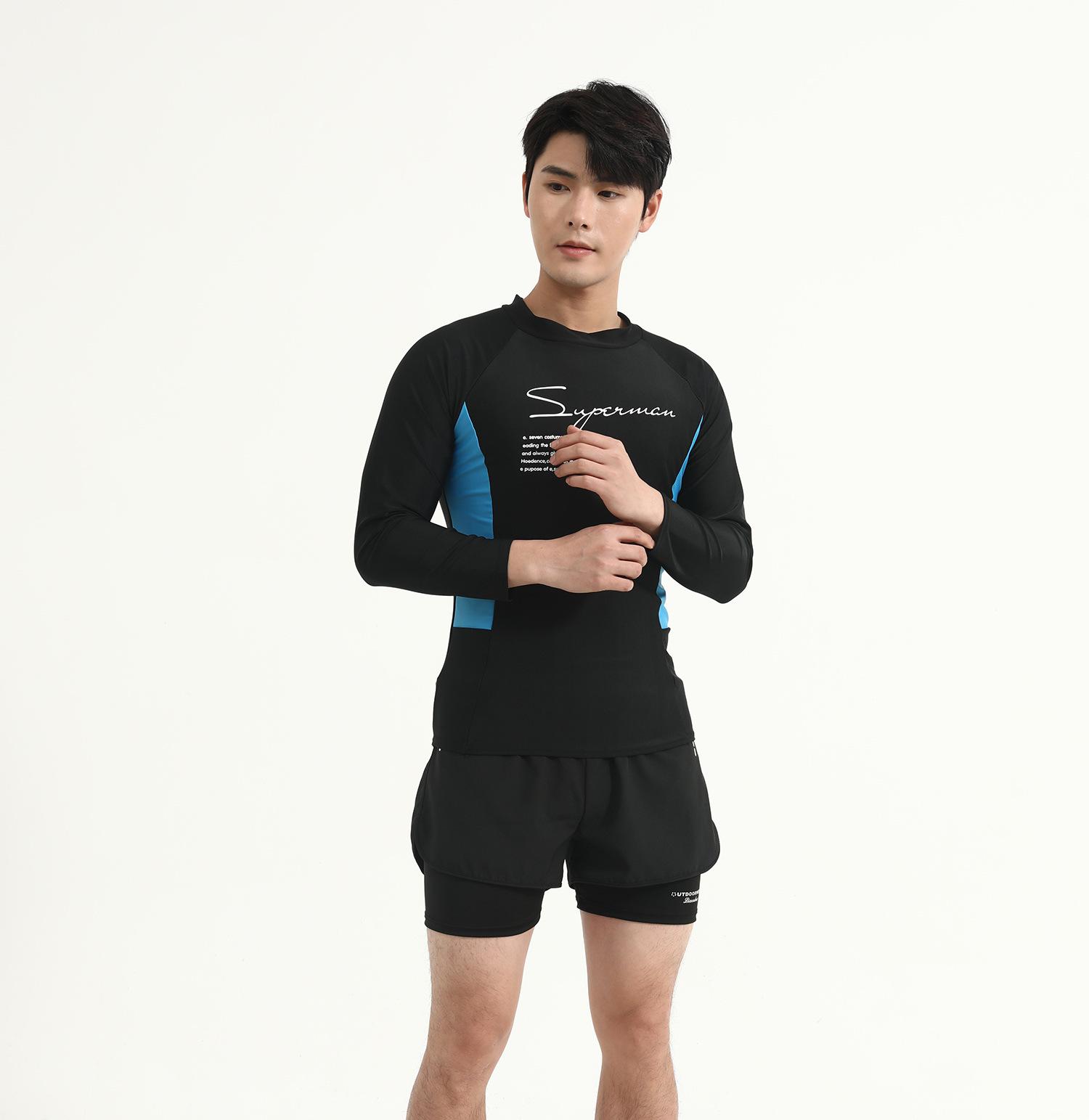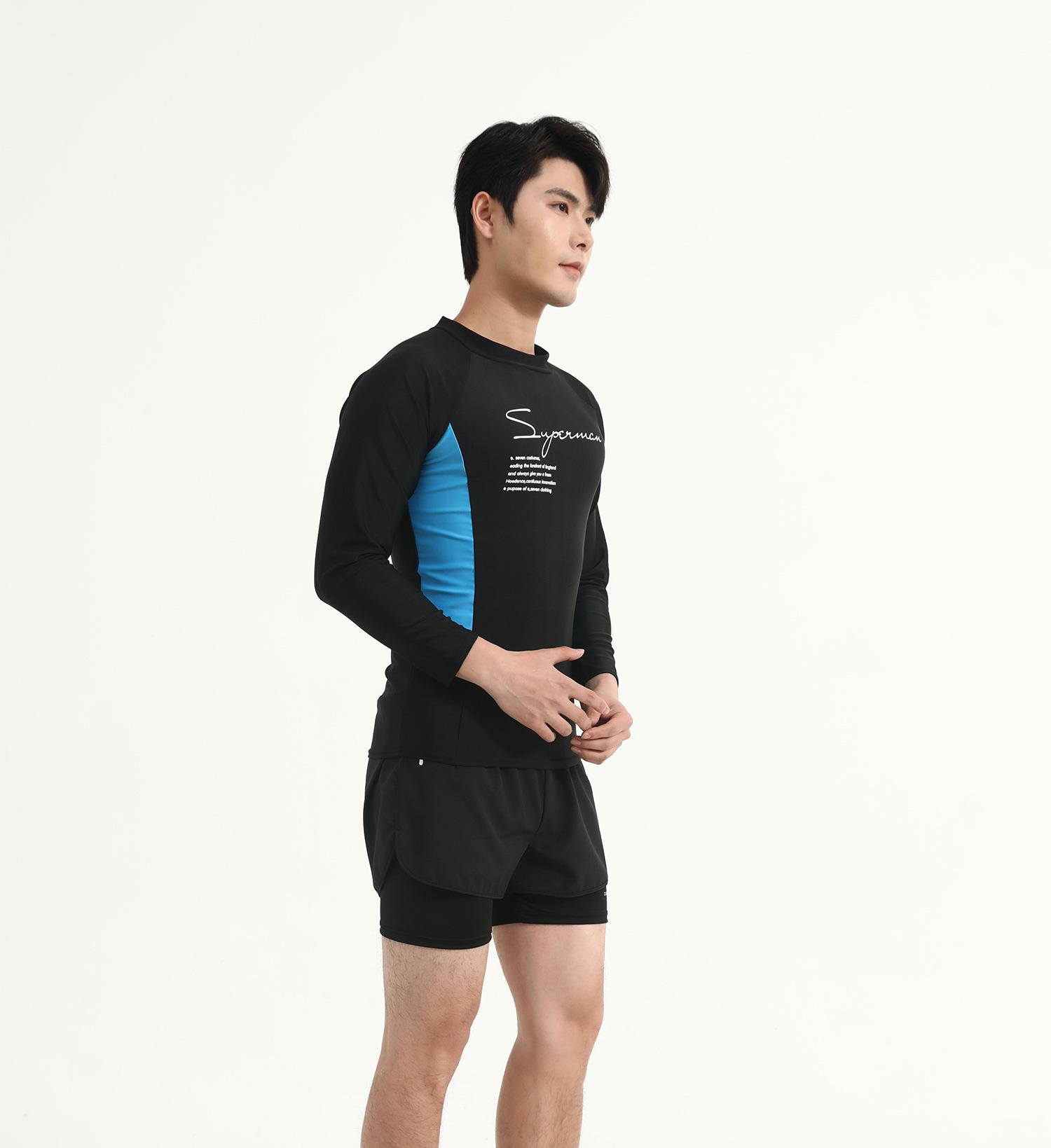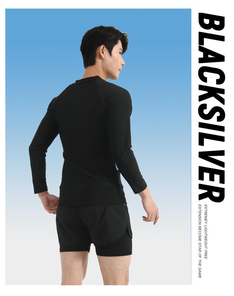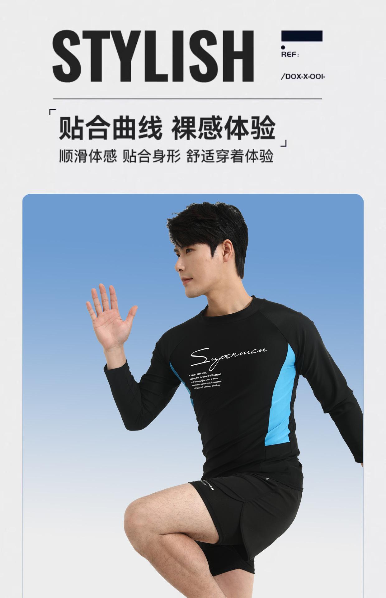 Traje de Baño para Hombre con Bloques de Color Traje Dividido de Manga Larga Protección Solar Talla Grande para Adulto Traje de Baño Pantalones Cortos de Doble Capa Antiembarazo